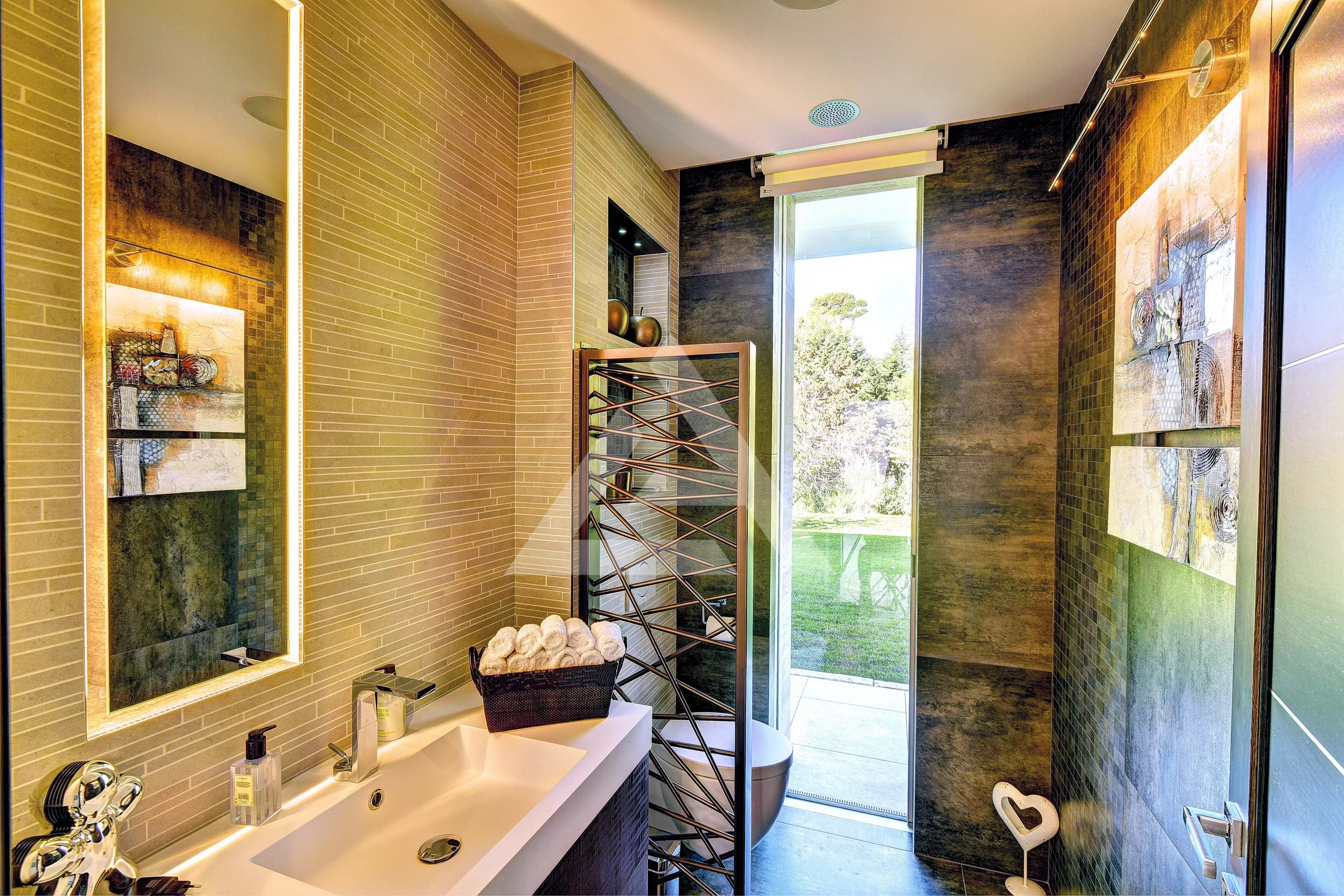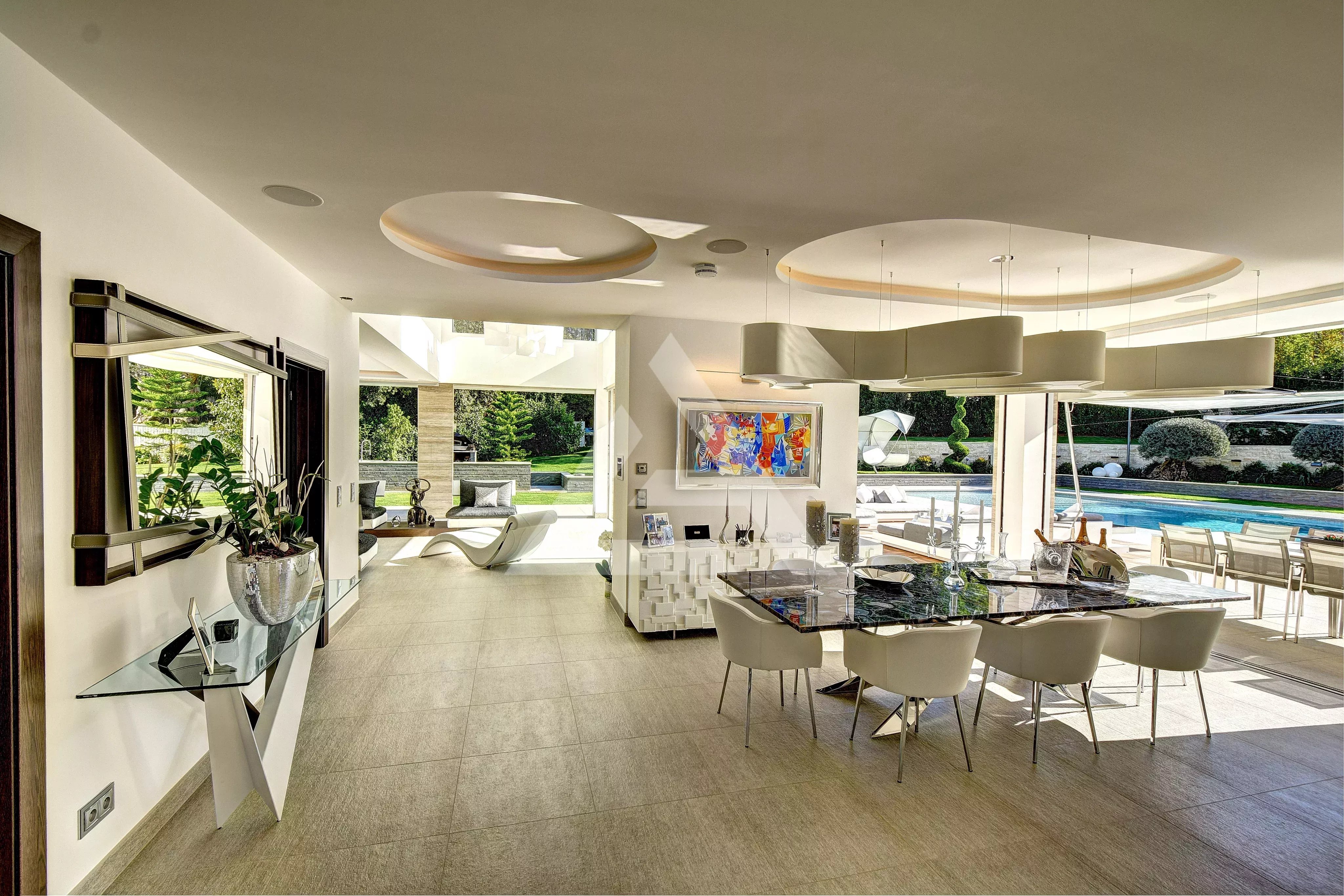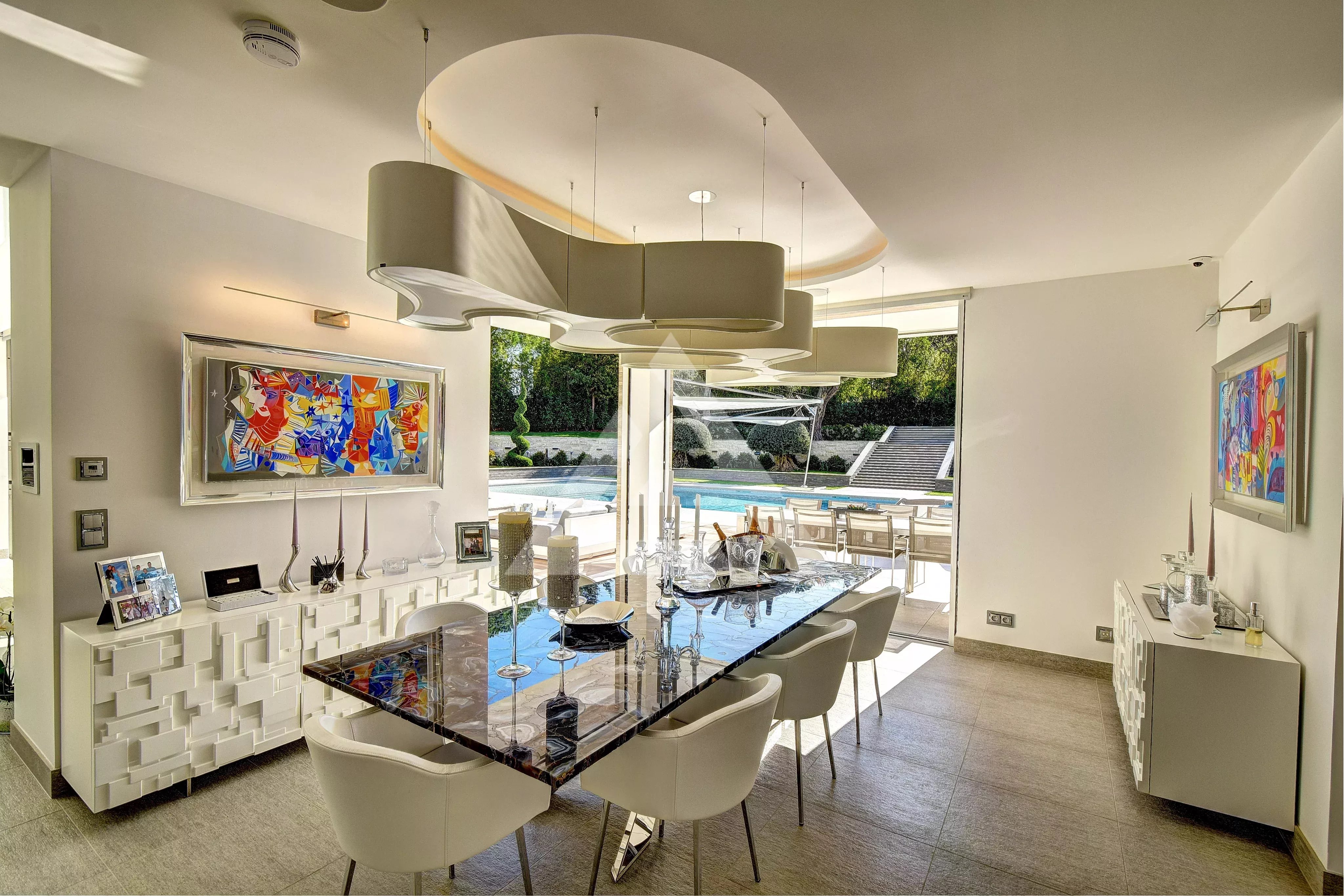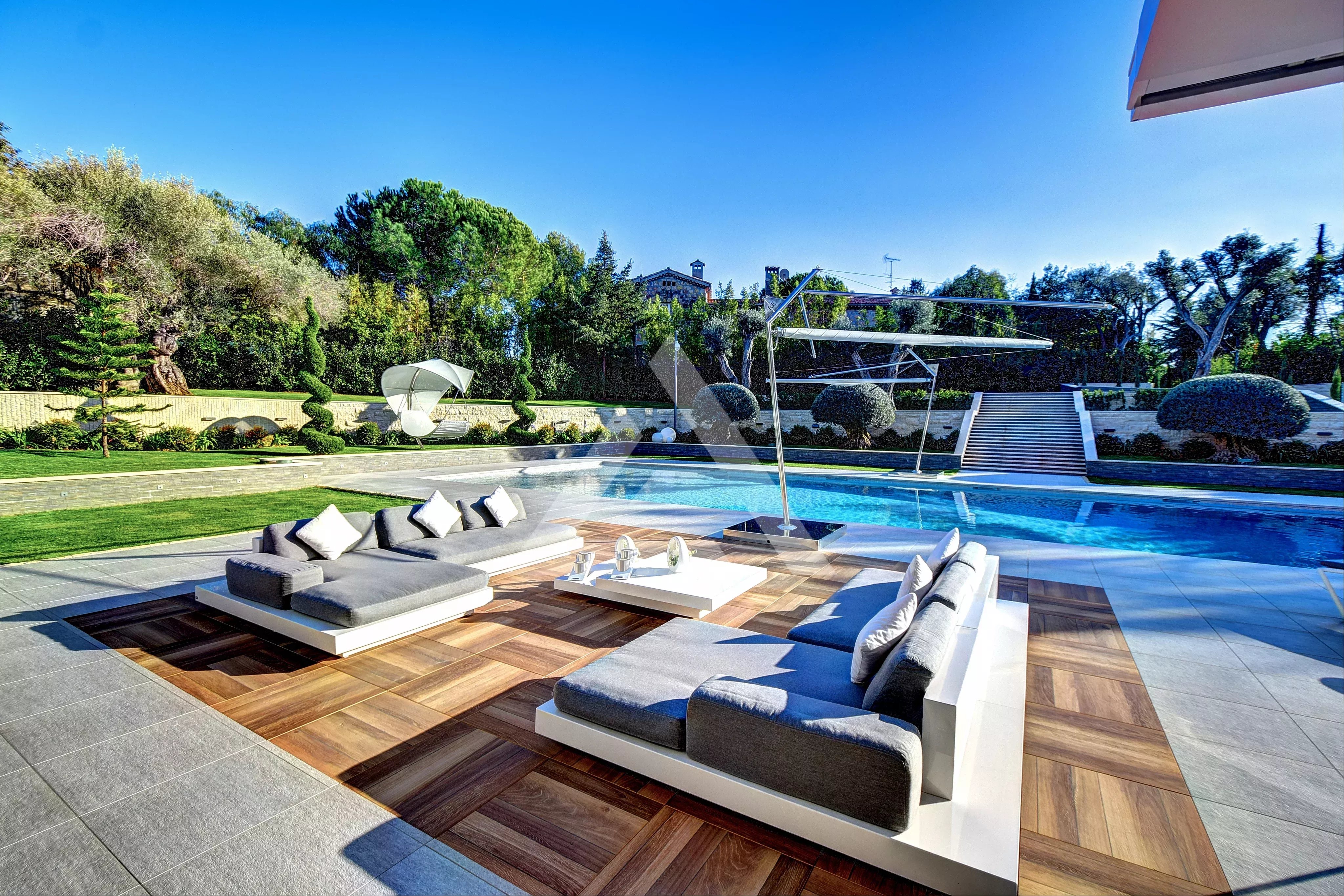 Situata sul Cap d'Antibes, a pochi passi dalla spiaggia della Garoupe, questa sontuosa villa di 796 m² gode di un ampio giardino pianeggiante con piscina e pool house. Immersa in un terreno alberato di circa 3.308 m², offre un ambiente di vita tranquillo e sicuro. La villa è così composta: Al piano terra: ampio soggiorno, sala da pranzo, cucina completamente attrezzata, ufficio e WC separato. Al piano superiore: suite padronale con bagno e spogliatoi, tre camere da letto aggiuntive, ciascuna con bagno privato. Al piano interrato: due camere da letto con bagno, home cinema, palestra, cantina, lavanderia e garage per otto veicoli con ascensore. Le spese sono a carico del venditore, salvo diversamente specificato nel mandato. Importo stimato delle spese energetiche annuali per un uso standard: tra 1.939 € e 2.623 €. Prezzi medi delle energie indicizzati nel 2021. L'immobile non è soggetto al regime di condominio. Immobile soggetto a una valutazione dei rischi naturali e di inquinamento consultabile sul sito Géorisques: https://georisques.gouv.fr/