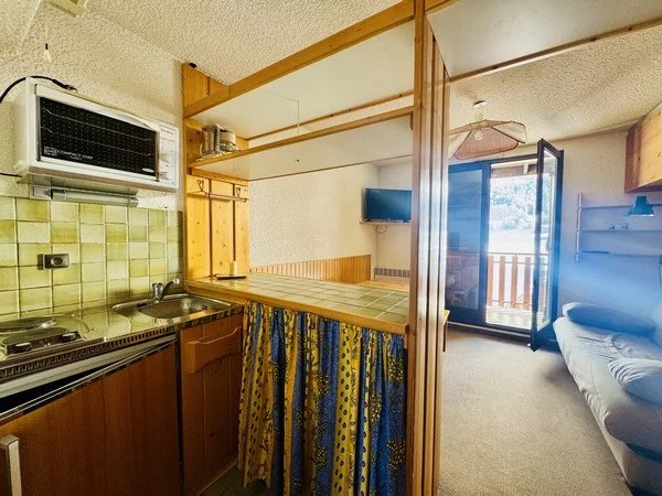 A découvrir au Sherpa 1 au 3éme étage. Studio de 22.50m² avec un balcon offrant une vue dégagée sur les montagnes. Il dispose d'une cuisine ouverte sur le séjour et la pièce de nuit, salle d'eau avec toilettes. Possibilité de 6 couchages. Chauffage base tension au sol (collectif). Charges trimestrielles de 287.14€. Taxe foncière de 602€. Mme Fiorani : o6 37 39 57 56 ou jf.espaceimmo38@gmail.com. La présente annonce immobilière a été rédigée par Mme Fiorani, agent commercial en immobilier immatriculé au RSC du Tribunal de Commerce de Grenoble sous le numéro RCS 80377631900011. - UBI_1615331498