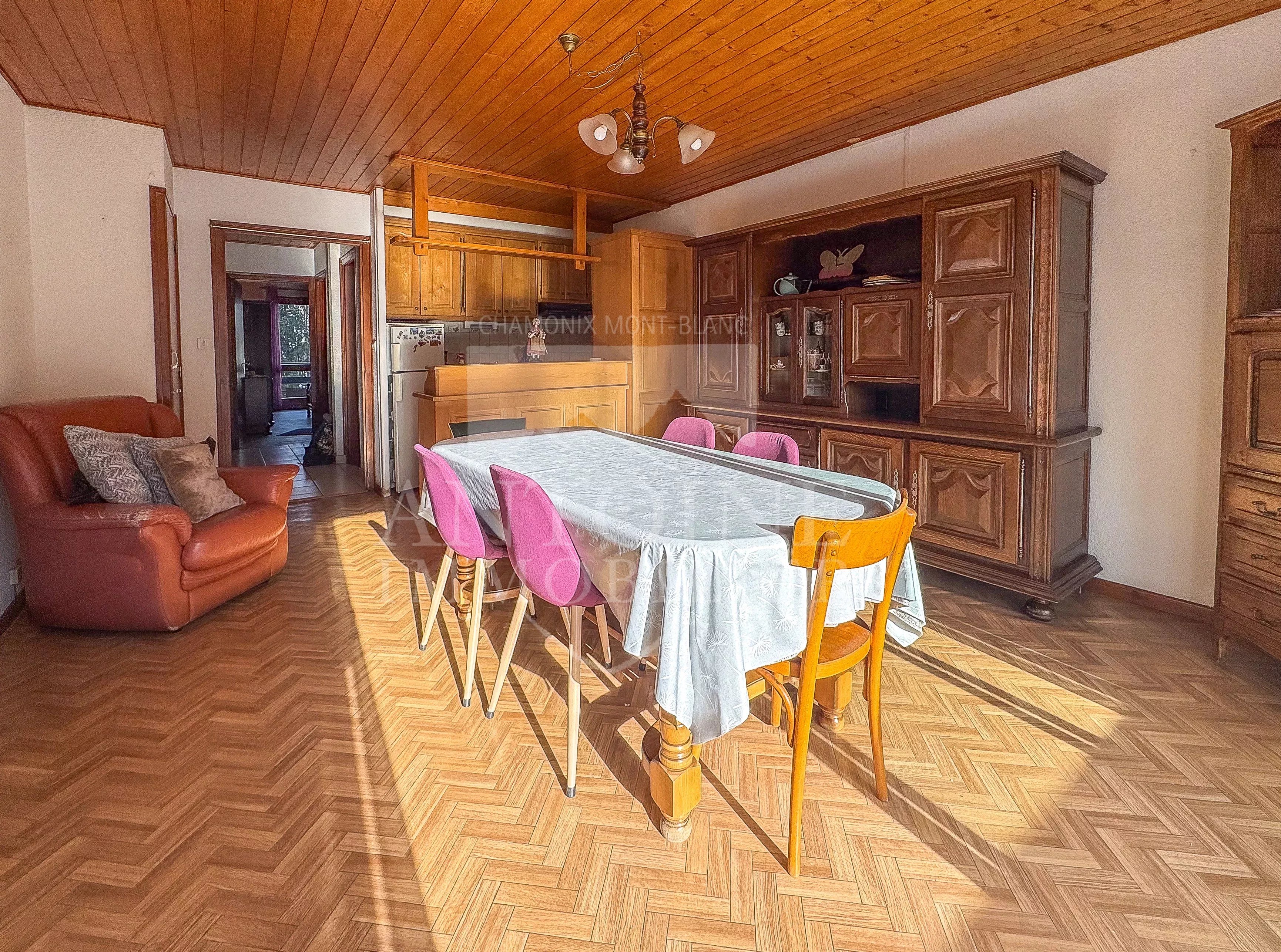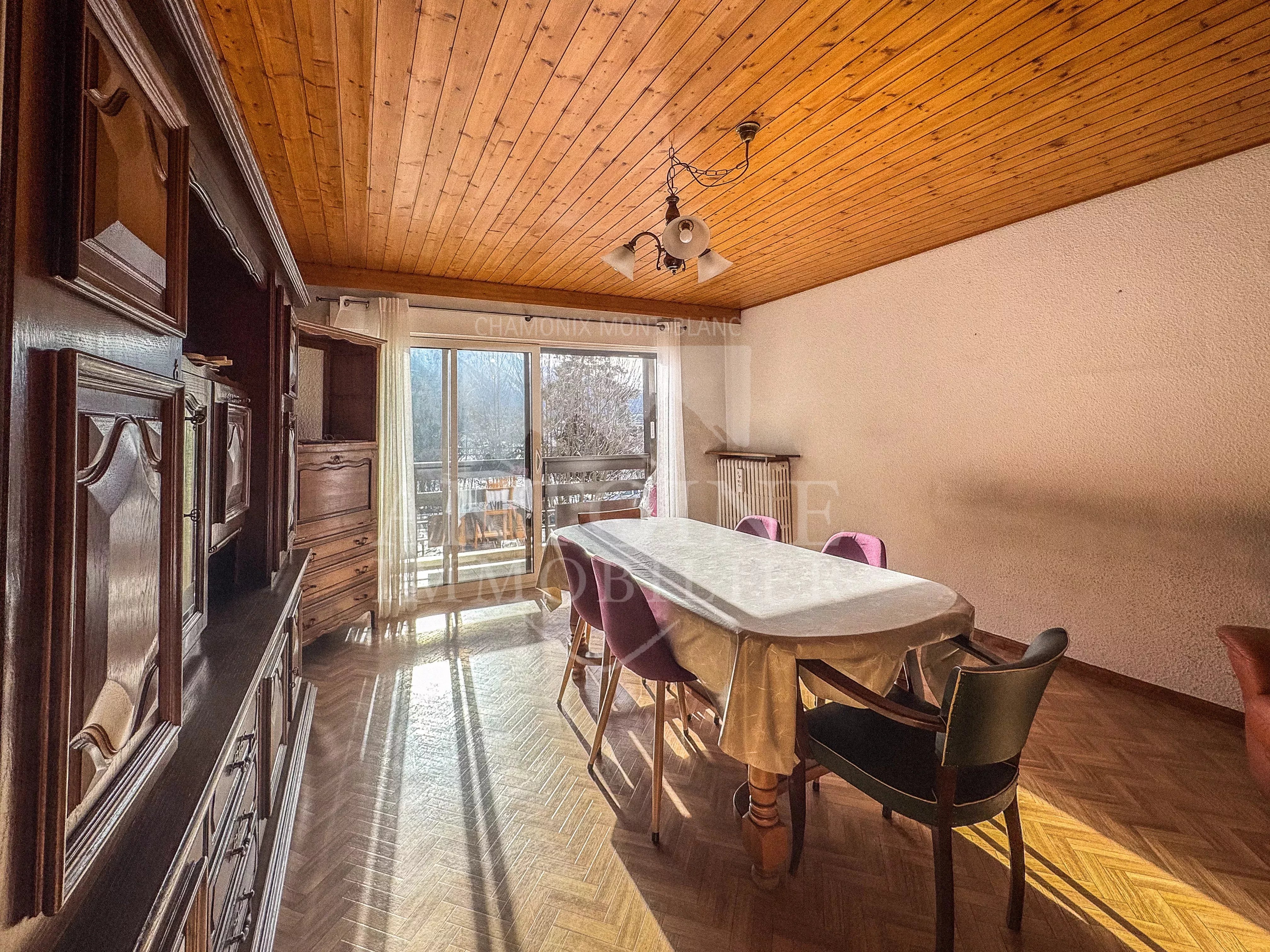 A breve distanza dal centro di Chamonix, nella ricercata zona di Planards, questo appartamento senza ascensore si trova in un edificio che è stato recentemente ristrutturato, in particolare con la sostituzione della caldaia comune a gas. Con una superficie di 51 m², completata da due balconi per un totale di 10 m², l'appartamento ha un doppio aspetto est/ovest, che offre molta luce e una vista senza ostacoli sulle montagne circostanti. È composto da un ingresso con armadio a muro, che conduce a un soggiorno con cucina a vista, aperto su un balcone esposto a ovest con vista panoramica sul Monte Bianco e sul Brévent.La zona notte comprende una camera da letto con accesso a un secondo balcone esposto a est con vista sul Col de Balme e Les Drus, oltre a un bagno e a una toilette separata. L'appartamento è spazioso e necessita di una ristrutturazione per adeguarlo alle esigenze e ai progetti dell'acquirente.Una cantina completa la proprietà.La prestazione energetica è classificata come D, offrendo un interessante equilibrio tra comfort ed efficienza energetica. Una proprietà con un grande potenziale, ideale per una residenza primaria o secondaria, a due passi dal centro di Chamonix, in un ambiente tranquillo con vista sulle montagne.