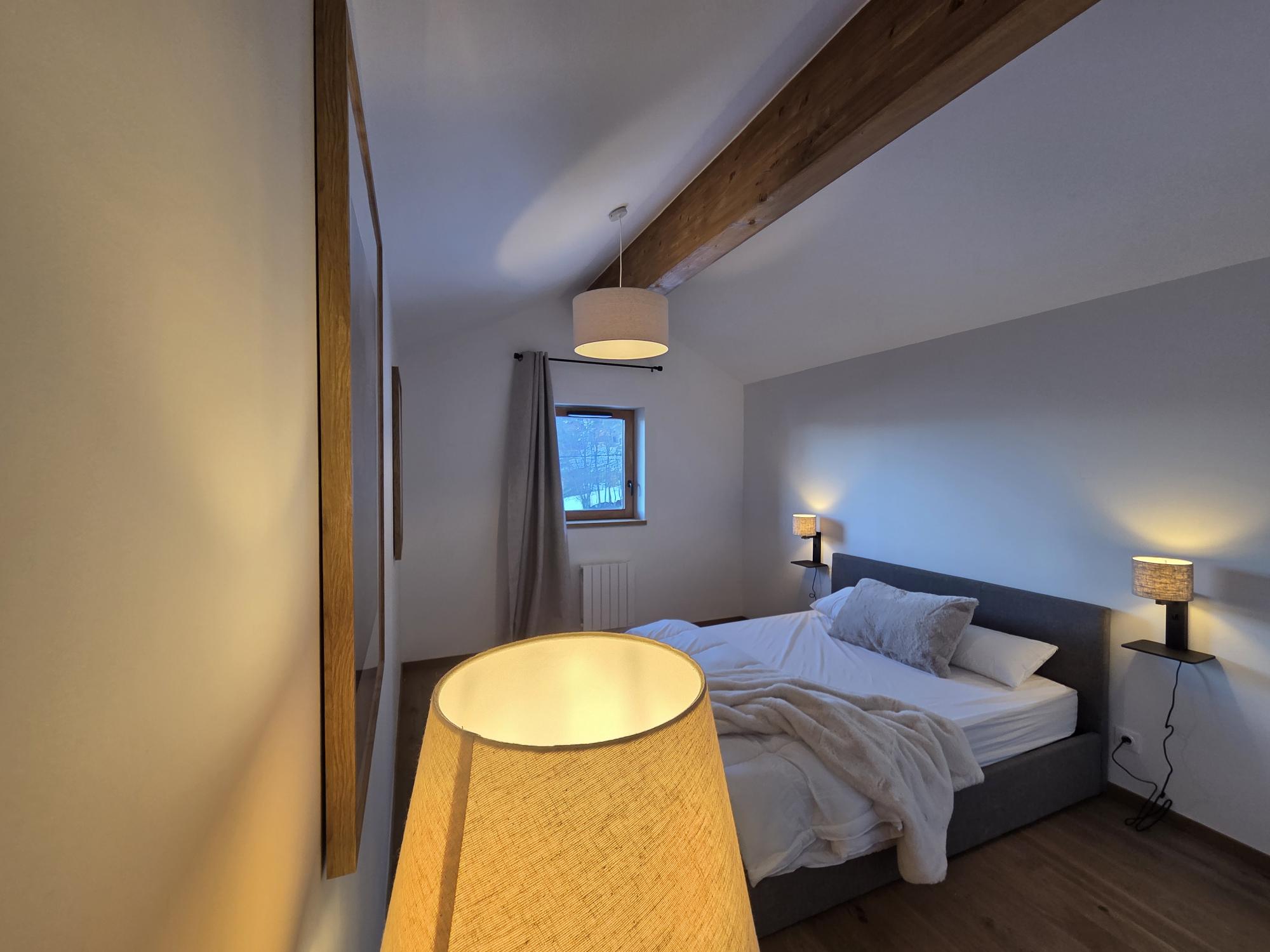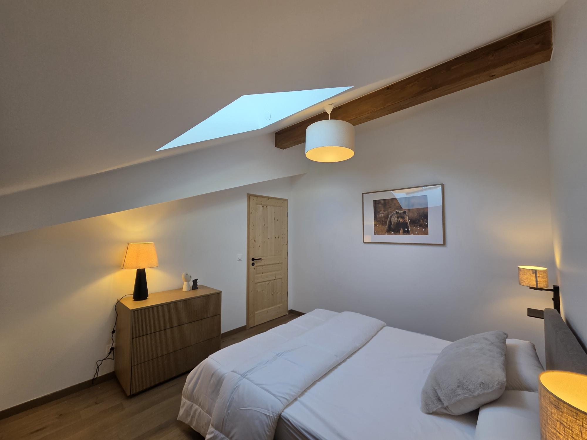 Volume, vue imprenable, 3 chambres, un salon avec une hauteur sous-plafond importante. vous vous sentirez comme dans un chalet à 2 pas des pistes et du GRAND DOMAINE.