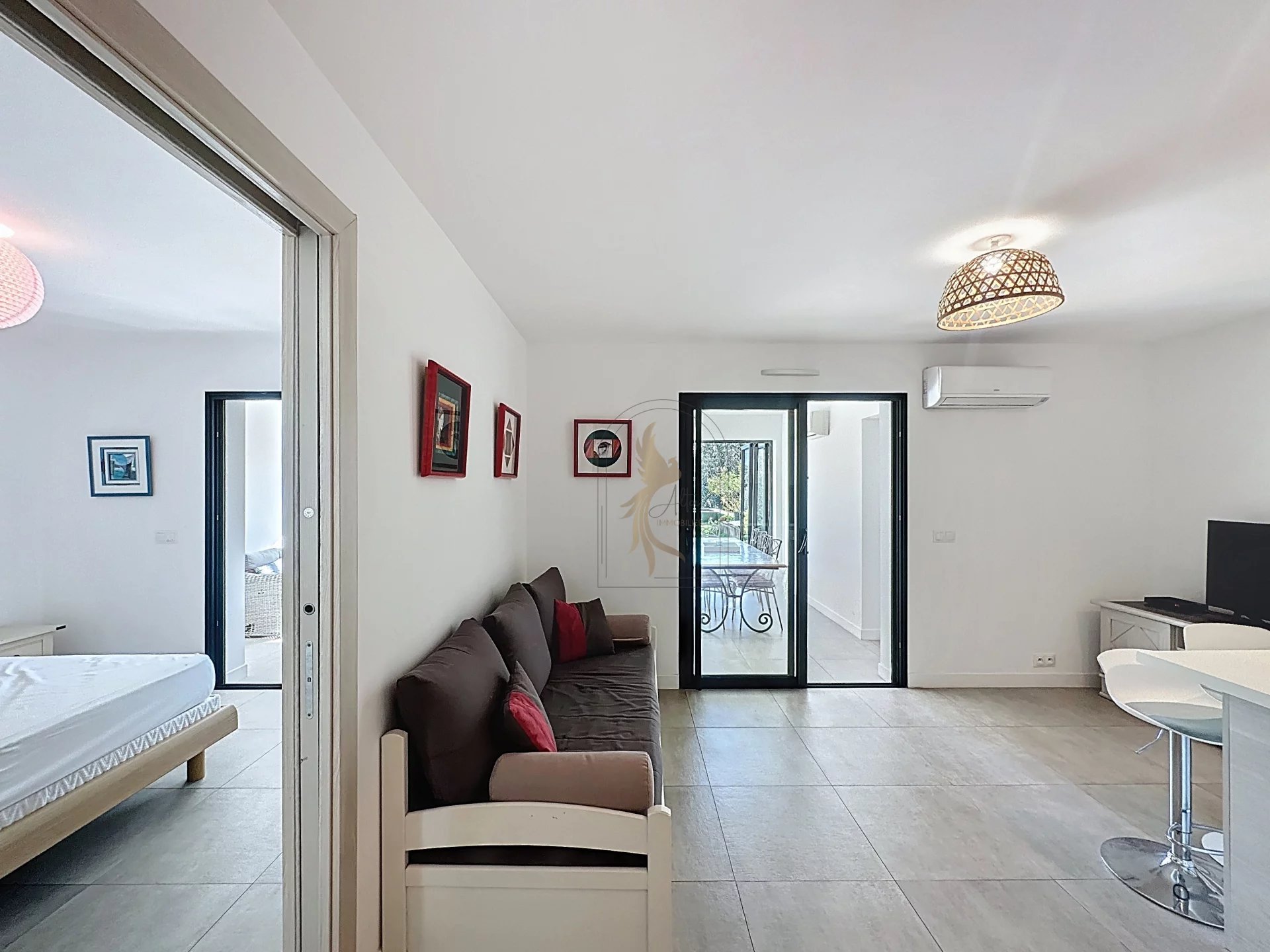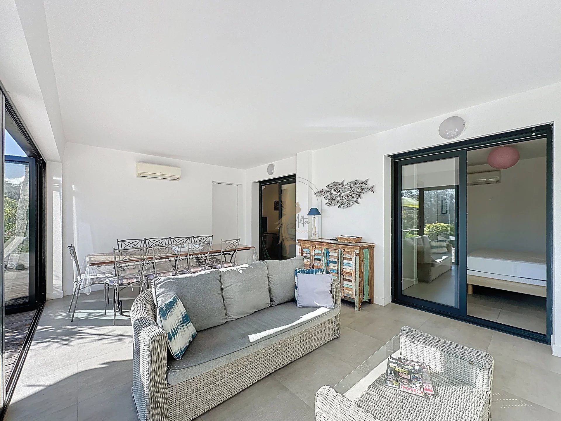 Situé dans une résidence privée et sécurisée, cet appartement bénéficie d’un emplacement idéal, à quelques minutes à pied du centre-ville et du port de Porto-Vecchio. La résidence propose de belles prestations, avec une grande piscine et une salle de sport, pour profiter pleinement de votre quotidien. D’une surface de 75 m², l’appartement se compose d’une entrée, d’une cuisine équipée et aménagée, et d’un salon / salle à manger lumineux ouvrant directement sur la terrasse. L’espace nuit comprend deux chambres confortables ainsi que deux salles d’eau modernes, pratiques et fonctionnelles. À l’extérieur, une terrasse ensoleillée s’ouvre sur un jardin privatif, parfait pour les repas en plein air et les instants de détente sous le soleil corse. Un garage fermé et une cave complètent ce bien. Un appartement agréable et facile à vivre, aussi bien en résidence principale qu’en résidence secondaire, dans l’un des secteurs les plus recherchés de Porto-Vecchio.