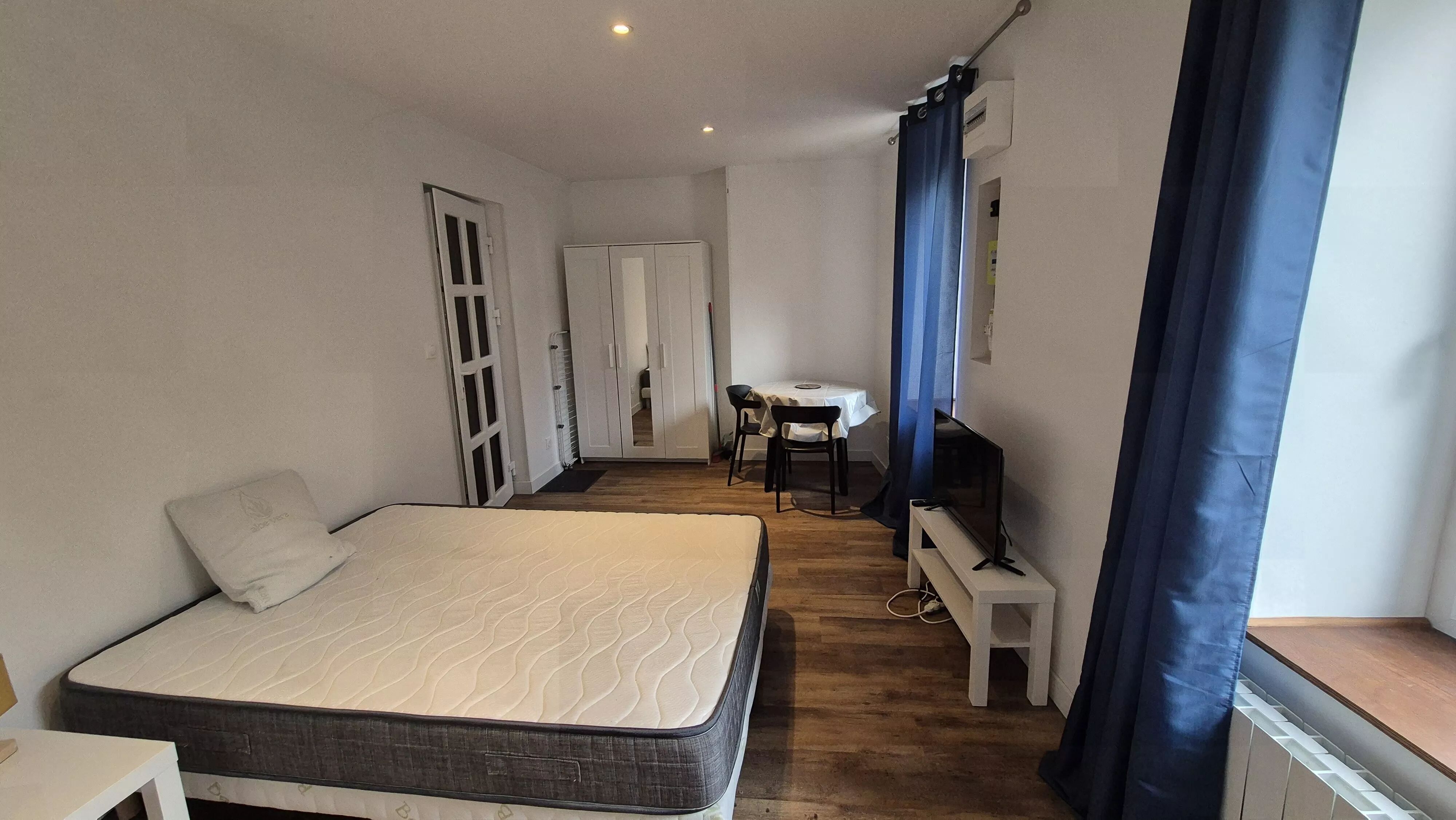 entièrement meublé au RDC indépendant d'environs 21 m² meublé cuisine équipée (télé, micro onde plaque, hotte, frigo) Lit clic clac, une salle d'eau et WC, internet
