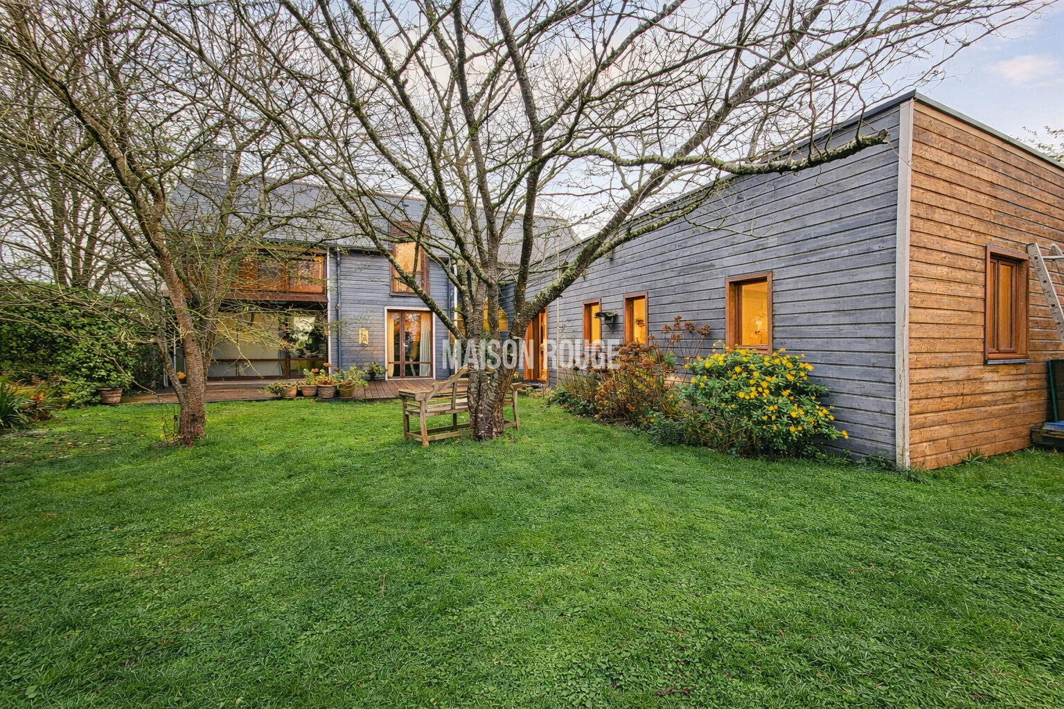 Maison contemporaine en ossature bois - Architecture signée Bachmann A 1 km de la grande plage et des commerces (accessible à pied) L'Agence Maison Rouge vous propose cette maison en ossature bois, réalisée par l'architecte Bachmann, alliant architecture contemporaine, volumes généreux et matériaux de qualité. La chaleur naturelle du bois crée une atmosphère à la fois moderne, élégante et accueillante, parfaitement intégrée dans un environnement verdoyant et recherché. Idéalement située, la maison se trouve à seulement 1 km de la grande plage et des commerces, accessibles à pied, offrant un cadre de vie privilégié entre nature et littoral. - Rez-de-chaussée Entrée fonctionnelle Cellier Spacieuse pièce de vie baignée de lumière, équipée d'un poêle à bois Aäsgard, avec accès direct à la terrasse Cuisine aménagée et équipée, sublimée par une verrière apportant caractère et convivialité - Étage Mezzanine offrant un espace polyvalent Trois chambres Un bureau Salle d'eau WC indépendants - Extension récente Une extension a été créée, offrant de nouveaux espaces de plain-pied : Une seconde pièce de vie avec poêle à bois Aäsgard Trois chambres supplémentaires Salle d'eau WC - Annexes Chalet en bois, idéal pour le rangement ou les équipements de jardin Les atouts du bien Situation rare : plage et commerces accessibles à pied Architecture contemporaine et écologique Ossature bois - confort thermique et esthétique Possibilité de vie multi-générationnelle ou activité indépendante Volumes généreux et belle luminosité Prix FAI : 597 000 euros dont 4.74 % honoraires TTC à la charge de l'acquéreur. Caroline GICQUEL (EI) Agent Commercial - Numéro RSAC : 525171054 - SAINT MALO.