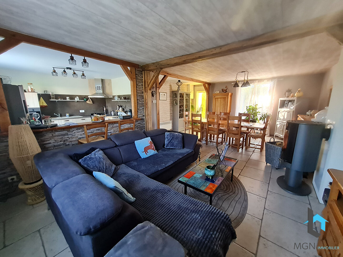 MGN immobilier vous propose dans Bailleau le pin pavillon sur sous-sol comprenant : Entrée sur salon séjour avec poêle à bois, cuisine aménagée et équipée, couloir desservant 3 chambres, salle d'eau, WC séparé. Sous-sol en totalité : garage, atelier, cave, laverie abri et terrasse sur 613 m² de terrain clos et arboré. (5.00 % honoraires TTC à la charge de l'acquéreur.)