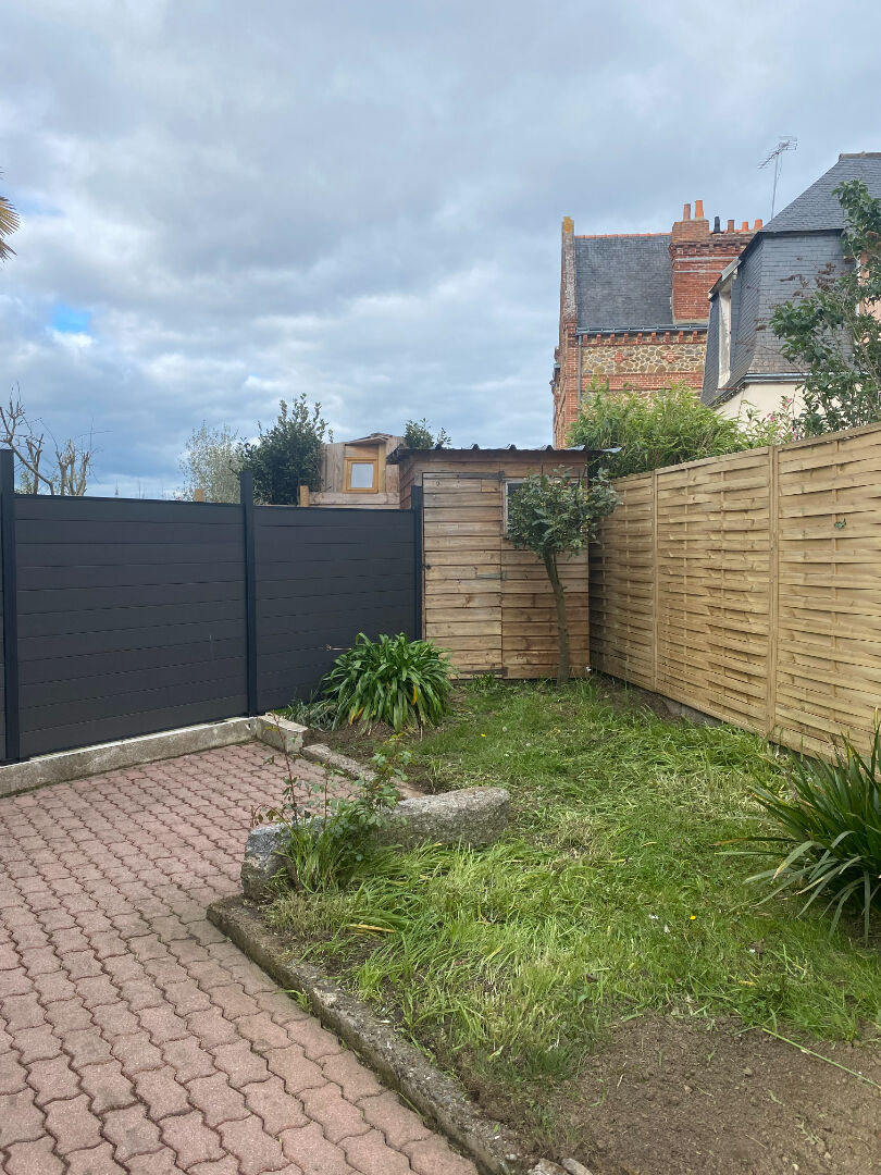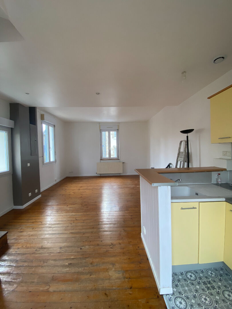 A LOUER ST BRIEUC / ST MICHEL en impasse une maison comprenant une pièce de vie avec cuisine ouvert (four plaque hotte). A l'étage, une chambre avec placard, un bureau, une salle de douche et wc. Au sous-sol une pièce aménagée. Une cave. Jardinet avec cabanon. Disponible de suite ! LUMINEUSE, AU CALME. Chauffage gaz de ville.
