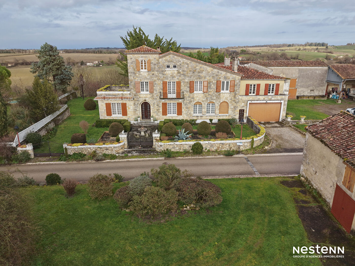 Située dans le village de Castelnau-sur-l'Auvignon, à moins de 10 minutes de Condom, cette maison en pierre développe environ 313 m² habitables sur un terrain de 17 888 m². L'ensemble comprend plusieurs dépendances et peut convenir aussi bien à un projet familial qu'à une activité touristique ou professionnelle. L'entrée de 23 m² distribue un séjour de 38 m² avec cheminée, ainsi qu'une cuisine aménagée de 19 m² complétée par une arrière-cuisine de 15 m². Le rez-de-chaussée comprend également une chambre de 15 m², un bureau de 23 m², une douche et des WC séparés. Un escalier en pierre conduit au premier étage où un palier de 22 m² avec placards dessert cinq chambres de 13 à 18 m², dont certaines disposent d'un point d'eau. L'une d'elles donne accès à une terrasse avec vue sur la campagne. Ce niveau comprend aussi une salle de bain de 9 m² et des WC séparés. Un espace de 39 m² peut y être aménagé en studio indépendant. Le deuxième étage accueille une chambre de 10 m² ainsi que des greniers aménageables représentant 49 m² supplémentaires. Attenante à la maison principale, une ancienne étable en pierre offre 182 m² au sol avec un étage de même surface. Un garage de 32 m² complète ce bâtiment. Sur le reste de la propriété, deux autres constructions en pierre à rénover présentent des surfaces au sol de 116 m² et 119 m². La propriété comprend ainsi 313 m² habitables et environ 650 m² de surfaces bâties complémentaires, dans un cadre de village avec vue dégagée sur la campagne, tout en restant proche de Condom et des services.