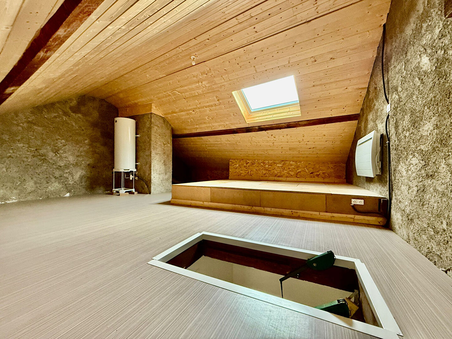 En vente chez IMMODEC ! Idéalement situé en plein coeur de Rumilly, à proximité immédiate de tous les commerces, commodités et à seulement 7 minutes à pied de la gare, cet appartement au troisième et dernier étage d'une petite copropriété séduit par sa luminosité, son charme et son confort. Il est composé d'une entrée , d'une pièce de vie avec cuisine, salle à manger et salon, de deux chambres avec placards, d'une salle d'eau et d'un WC indépendant. Atout rare, le bien dispose de combles aménageables de 24 m² habitables et 58 m² au sol, offrant de belles possibilités d'agrandissement ou de création d'un espace supplémentaire selon vos envies. En annexe, une cave vient compléter ce bien. Très bien entretenu : l'électricité a été refaite, les fenêtres changées, la VMC installée, et le ballon d'eau chaude remplacé en 2021. Cet appartement est une opportunité idéale pour une résidence principale comme pour un investissement locatif. Ce bien vous est proposé par l'agence IMMODEC. Pour tous renseignements complémentaires ou visites n'hésitez pas à contacter votre agence LOCALE et INDÉPENDANTE. Nous nous ferons un plaisir de vous accompagner dans votre projet d'acquisition, vente ou investissement locatif !