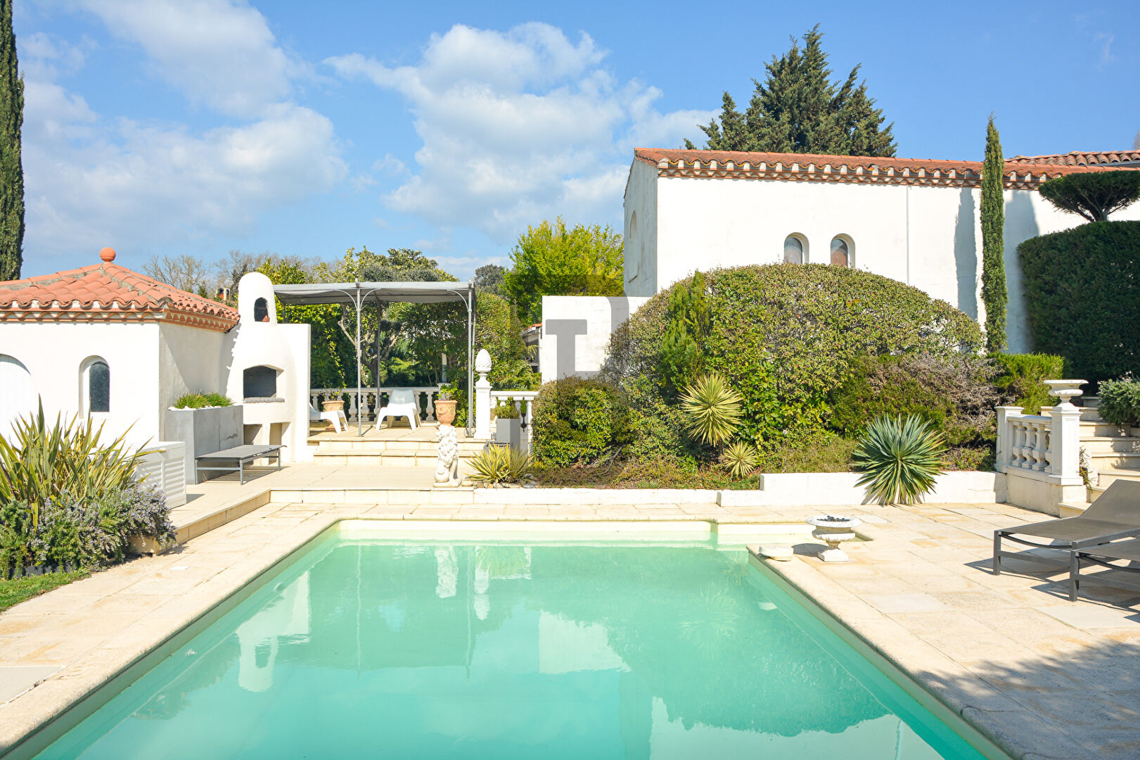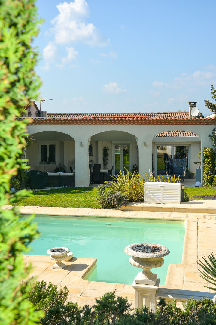 ÉLÉGANTE "Ensemble immobilier vendu meublé" Propriété de charme avec maison principale, piscine et deux studios indépendants Dans un environnement résidentiel particulièrement calme, à proximité du centre-ville de Carcassonne et de sa célèbre cité médiévale, cette propriété soigneusement entretenue offre un cadre de vie rare, alliant confort, intimité et potentiel locatif. La maison principale ? Élégance et lumière D'une surface d'environ 102 m², cette maison individuelle séduit par sa luminosité et son exposition plein Sud, ouverte sur un magnifique jardin arboré d'essences méditerranéennes (oliviers, palmiers, romarins?). Implantée sur une parcelle de 1 040 m² entièrement clôturée, à l'abri des regards, elle développe : Une entrée ouvrant sur un bel espace de vie chaleureux Cuisine équipée avec accès direct à une grande terrasse semi-couverte de 42 m² Seconde terrasse avec cuisine d'été, idéale pour recevoir Jardin paysager structuré autour d'une piscine forme pyramidale (4x9 m), sublimée par des éclairages extérieurs pour des soirées d'exception Côté nuit : Trois chambres avec rangements dont 2 avec armoires intégrées Un bureau Salle de bains + salle d'eau WC séparés Parquet en chêne dans l'ensemble des pièces Annexes de la maison : Garage attenant avec portail électrique Place de stationnement trois devant la maison Buanderie Deux studios indépendants ? Idéal revenus locatifs ou accueil de la famille Les entrées des studios sont indépendantes préservant à chacun son intimité Un véritable atout pour un projet mixte habitation / investissement. Studio 1 - 27 m² (meublé) Coin cuisine Pièce de vie Salle d'eau Chambre en mezzanine Garage Chauffage électrique et climatisation réversible Studio 2 - 24 m² Pièce de vie Coin cuisine Salle d'eau Chambre en mezzanine Chauffage électrique et climatisation réversible Prestations : Double vitrage Caméra de surveillance Volets électriques sur les portes-fenêtres côté jardin Chauffage électrique + climatisations réversibles Cheminée avec insert Système d'alarme Interphone Fibre Le bien est vendu meublé, permettant la continuité du système locatif actuel. Un bien rare sur le secteur Résidence principale confortable, maison de famille, ou projet avec rendement locatif immédiat : cette propriété réunit cadre de vie, prestations et polyvalence. Elle est à vendre pour la somme de 526 315,00 TTC (commission agence comprise et a la charge du vendeur) Les informations sur les risques auxquels ce bien est exposé sont disponibles sur le site Géorisques : www.georisques.gouv.fr. Contacter l'AGENCE BERNARD IMMOBILIER avec Carla au 06.37.69.29.20 ou Sandrine au 06.81.34.80.80