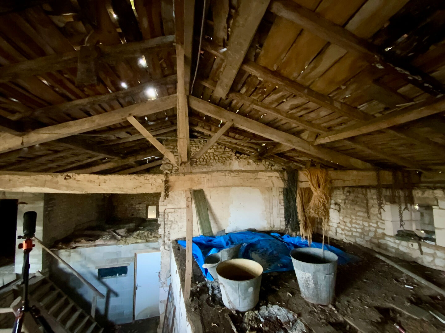 Maison à fort potentiel avec grange, garages et grenier aménageable Située entre Jonzac et Mirambeau, cette maison à rénover entièrement offre de très beaux volumes et de nombreuses possibilités d'aménagement. La maison se compose d'une cuisine, d'un séjour / salle à manger, de trois chambres dont une en enfilade, ainsi que d'une salle d'eau et de WC indépendants. Un grenier aménageable vient compléter l'habitation et permet la création de surfaces habitables supplémentaires selon vos besoins. La propriété comprend également une très grande grange, offrant un potentiel remarquable (atelier, stockage, projet d'aménagement?), ainsi que plusieurs garages. La toiture est à refaire (voir photos). Seule une partie de la toiture avait été refaite au niveau de l'habitation. L'ensemble constitue un beau projet de rénovation, idéal pour résidence principale, projet familial ou investissement, avec de nombreuses dépendances et possibilités d'évolution. Gros travaux à prévoir. Fort potentiel après rénovation. (7.61 % honoraires TTC à la charge de l'acquéreur.) Anaïs RAUD (EI) Agent Commercial - Numéro RSAC : 988690624 - SAINTES.