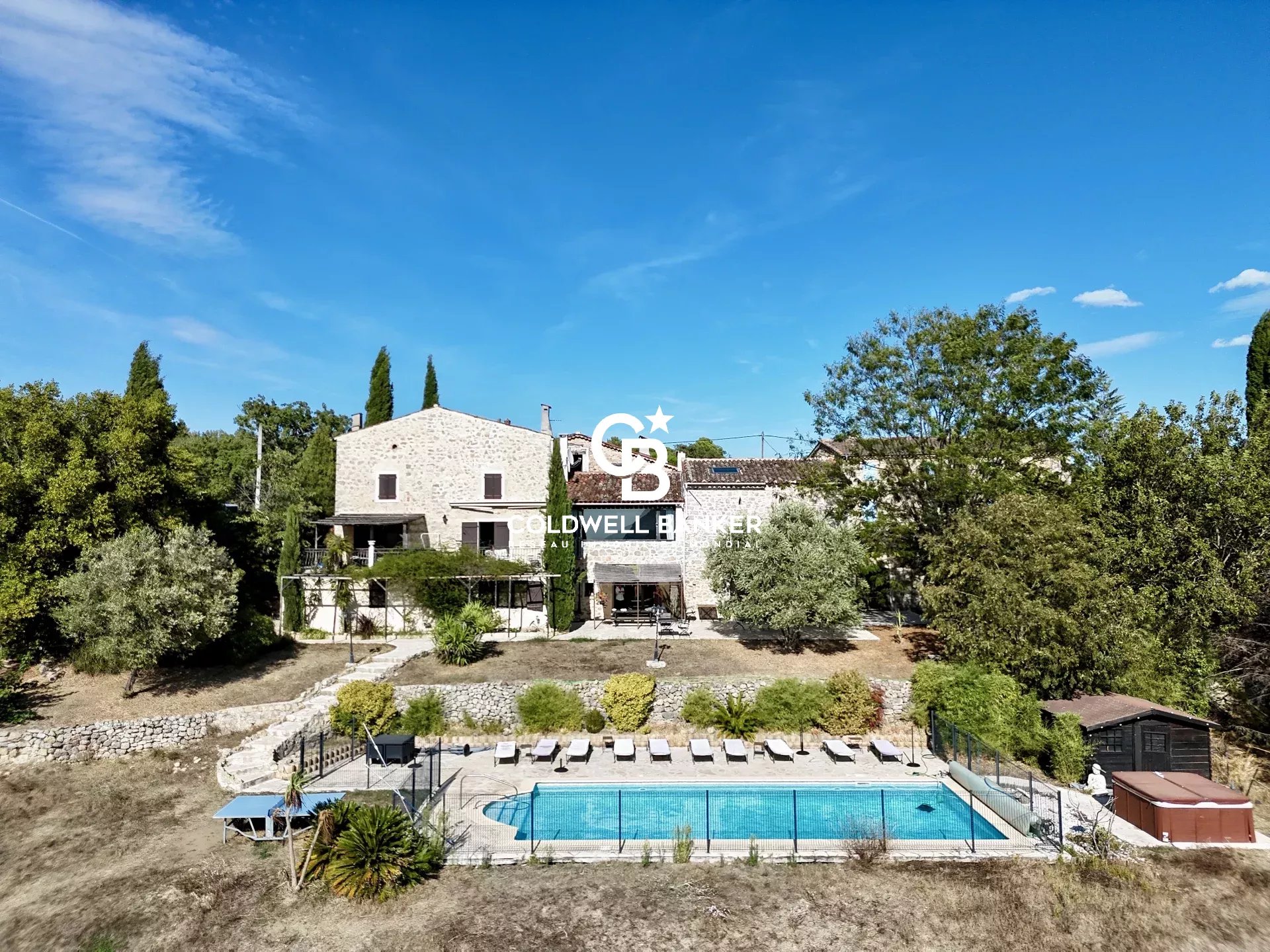 Mas provençal du 14ᵉ siècle de 552 m² habitables, à Fayence, proche golf de Terre Blanche sur un terrain de 1,6 hectare. Au pied du massif de l’Estérel, à seulement 35 minutes de Cannes et Saint-Raphaël et 50 minutes de l’aéroport international de Nice. Édifié au XIVᵉ siècle rénové avec soin en 1993, puis en 2007 et 2021, le mas développe plus de 700 m² (dont 552 m² habitables). La propriété se compose de trois parties distinctes : 1. L’habitation principale • Salon de réception avec cheminée à insert (chauffage global) • 3 chambres, dont une avec salle d’eau privative • Suite parentale de 60 m² avec deux dressings, salle de bain (baignoire + douche) et terrasse tropézienne • Salon cathédrale avec grande baie vitrée et cheminée à insert, offrant une vue imprenable sur le massif de l’Estérel • Salle à manger avec cheminée • Grande cuisine indépendante • Terrasse panoramique accessible depuis la cuisine, le salon et la salle à manger • Garage et four à pain 2. Un appartement indépendant (70 m² env.) • Salon • Cuisine • Chambre • Salle de bain 3. La partie chambres d’hôtes • Grand salon avec cheminée • 4 suites • 1 suite pour 4 personnes avec mezzanine, salle de bain, aménagée dans l’ancienne chapelle du hameau • Cuisine, buanderie, chaufferie, atelier • Cave à vin • Local (sellerie), pouvant être transformé en salle de sport Extérieurs & équipements • Terrasse de plus de 200 m² • Piscine chauffée de 12 x 5 m avec plage aménagée et pool house • Jacuzzi 6 places • Ancien poulailler en pierre • Terrain de 1,6 ha actuellement exploité en parcs à chevaux (abris, boxes, râteliers) Un lieu unique aux multiples possibilités Ce mas provençal peut être destiné à un usage familial, à la poursuite de l’activité de chambres d’hôtes, à une maison de vacances ou encore à un projet viticole.