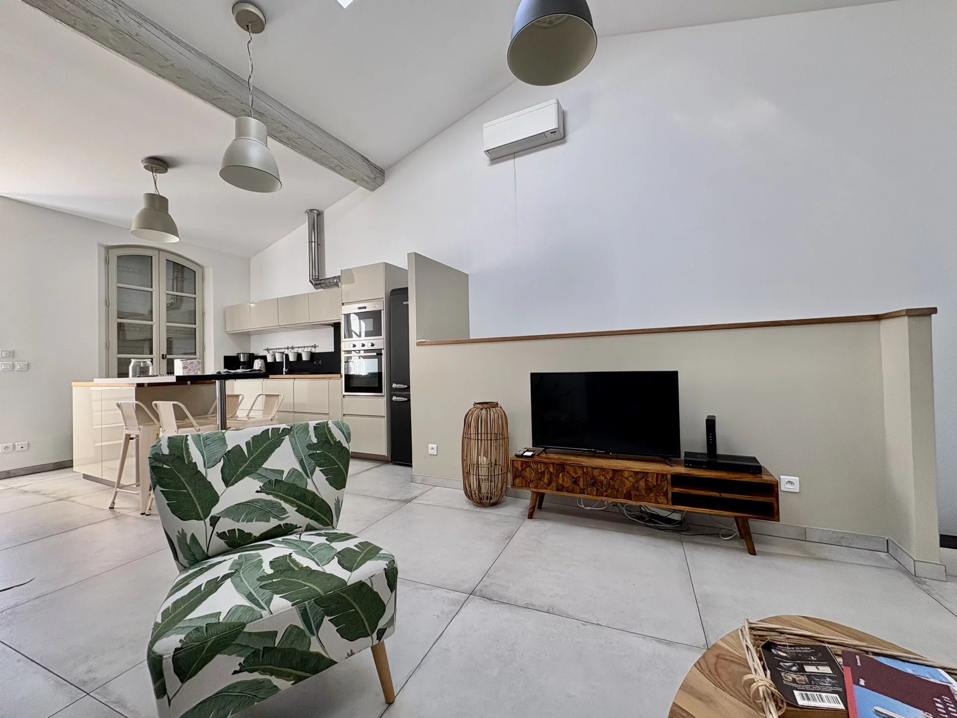 Découvrez ce superbe appartement en duplex de 75 m², situé au premier étage d’un immeuble au cœur de la ville d’Arles. Entièrement rénové avec goût et décoré avec soin, ce logement allie charme, confort et modernité. Dès l’entrée, vous serez séduit par la luminosité naturelle qui traverse chaque pièce, mettant en valeur les matériaux et la décoration soignée. La cuisine, entièrement aménagée et équipée, invite à préparer des repas dans un espace à la fois pratique et élégant. Le duplex comprend deux chambres spacieuses, idéales pour profiter de moments de détente en toute tranquillité. Le véritable atout de ce logement reste sa terrasse avec vue panoramique sur Arles, un véritable balcon sur la ville, parfait pour savourer un café le matin ou admirer le coucher du soleil. Climatisé pour garantir un confort optimal en toute saison, cet appartement offre une expérience de vie unique, mêlant la douceur de l’ancien à la modernité des prestations. Son emplacement central permet de profiter pleinement du charme et de l’animation de la ville, tout en bénéficiant d’un cadre de vie paisible et lumineux. Un coup de cœur assuré pour ceux qui recherchent un logement élégant, confortable et chargé de charme.