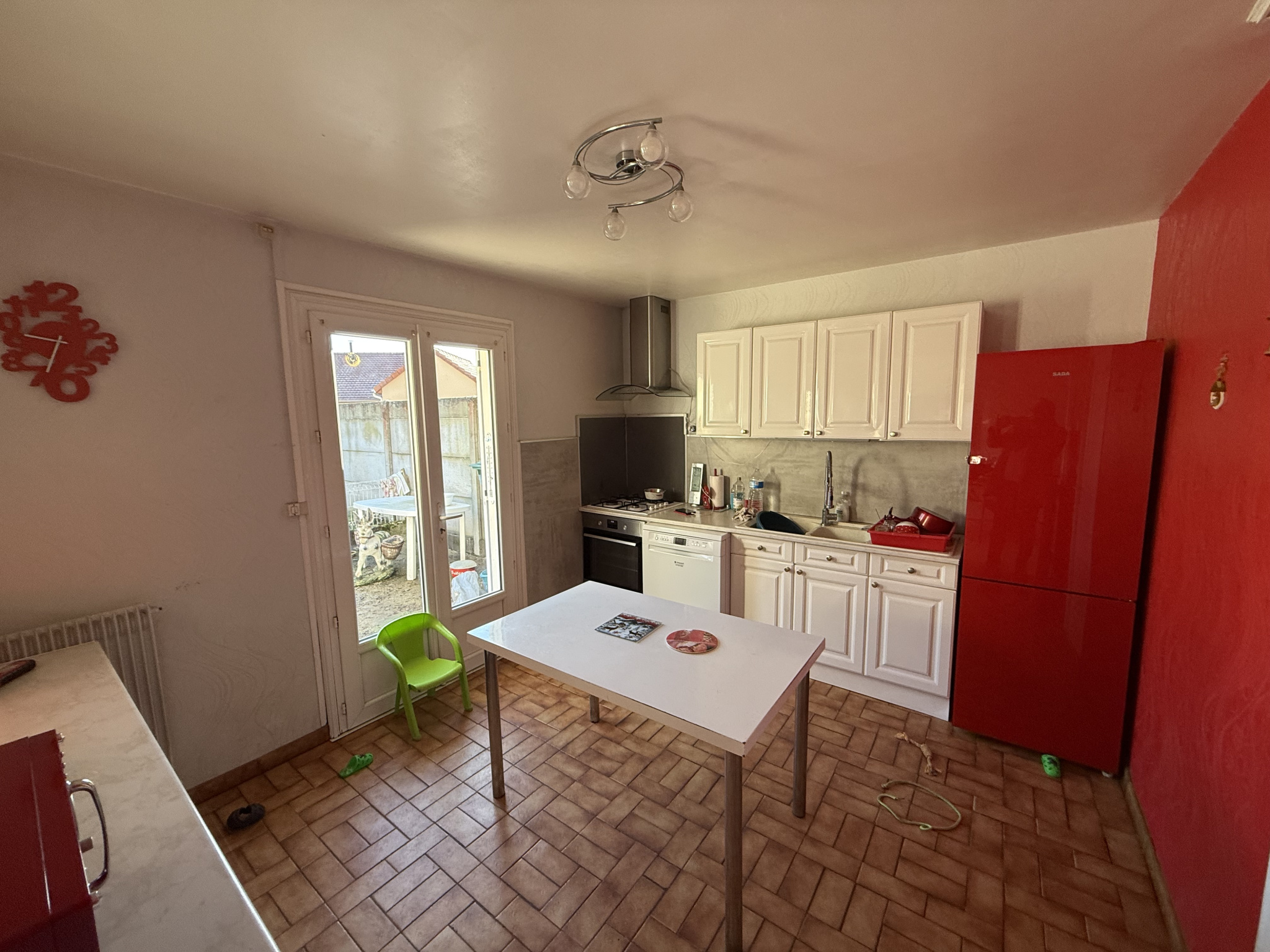 Elle se compose au Rez-de-chausée d'une entrée de 2 m2, d'une cuisine de 12 m2, d'un séjour de 28.93 m2 avec cheminée-insert et d'un WC.
