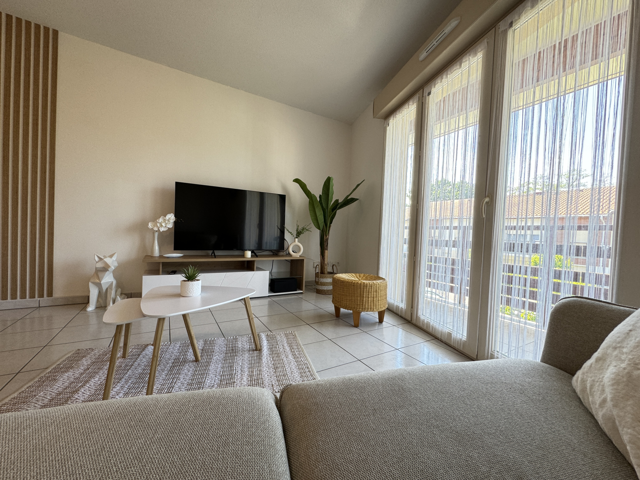 Au coeur du village de Lit et Mixe dans un ensemble résidentiel de 145 lots, construction de 2009 au 1er étage type de T3 d'une surface d'environ 60 m2, rénové avec goût au coeur du village de Lit et Mixe, au pied de tous commerces. Il est composé d'une entrée, dégagement avec placard, séjour avec cuisine ouverte et équipée, salle de bains et WC, 2 chambres avec placard, dont une chambre donnant sur une terrasse à l'Est. Une pièce de vie lumineuse avec balcon donnant sur l'arrière de la résidence. WC séparés.
