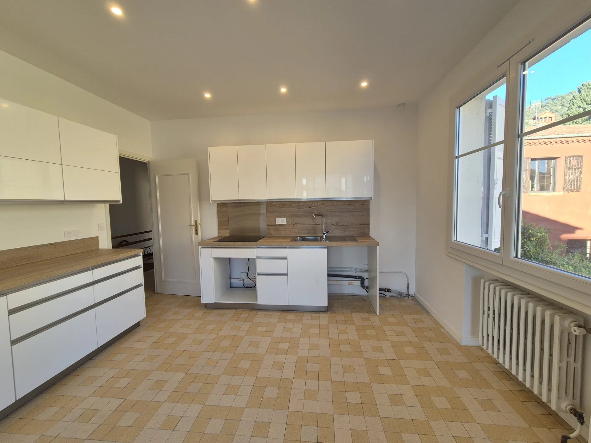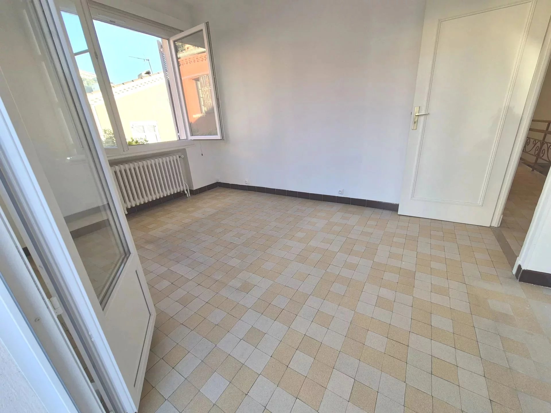 Venez découvrir cette belle villa jumelle de type 5 pièces de 109.51m² sur deux niveaux : rez-de-jardin : une entrée avec un placard, un WC indépendant, une salle de douche, deux chambres, un grand garage et le jardin exposé sud. A l'étage : un dégagement avec un placard, une salle de douche avec WC, deux chambres dont une avec une terrasse, une cuisine aménagée semi équipée ouverte sur le séjour et une terrasse avec vue échappée mer. Calme. Proche commerces et transports.