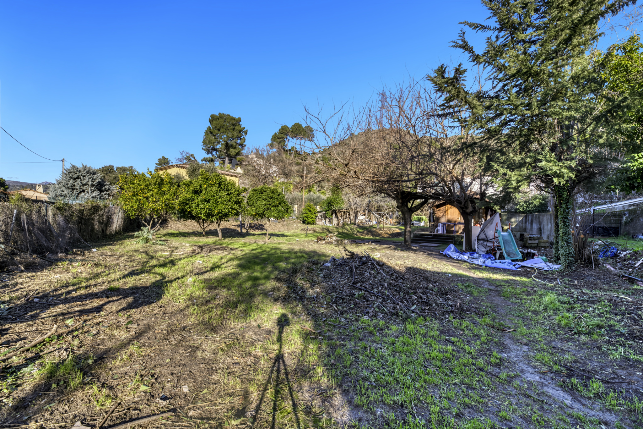 Présence d'un cabanon cadastré, pratique pour du stockage pendant le chantier ou un futur espace de rangement.