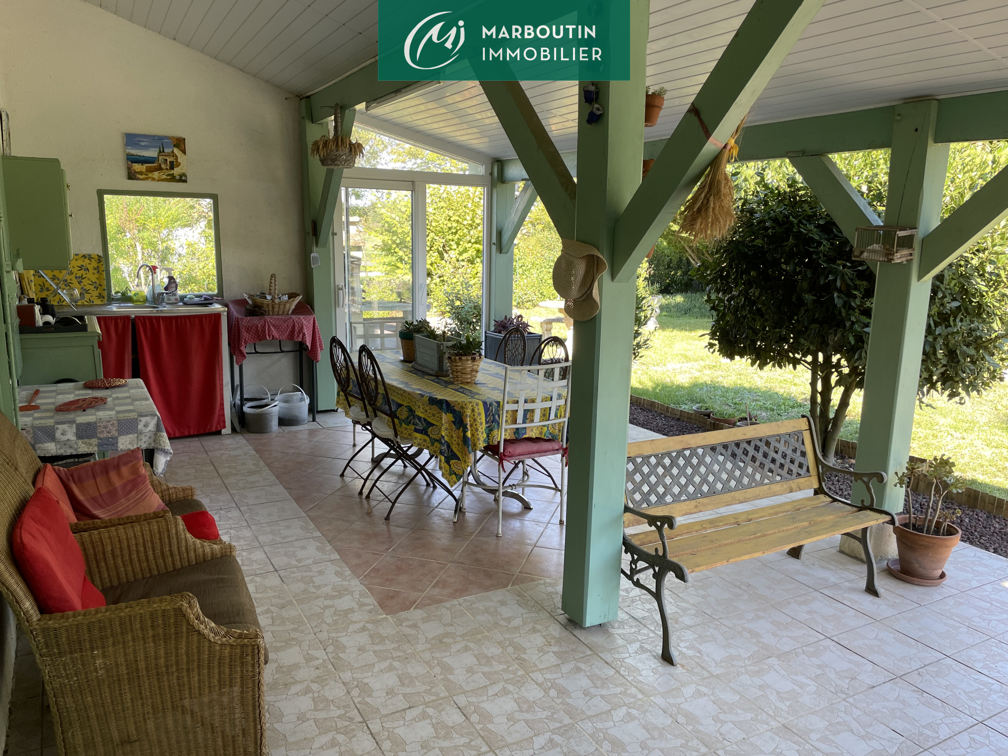 Maison de plain pied de 116 m2 habitables comprenant une cuisine équipée, un salon de 35 m2 avec poele à bois, 2 chambres, une salle d'eau, un wc, une terrasse couverte, une véranda, grenier de 61 m2 (aménageable), un puit, une petite piscine, un garage indépendant et un abris voiture, le tout sur un terrain clos de 1834 m2 avec portail électriques.