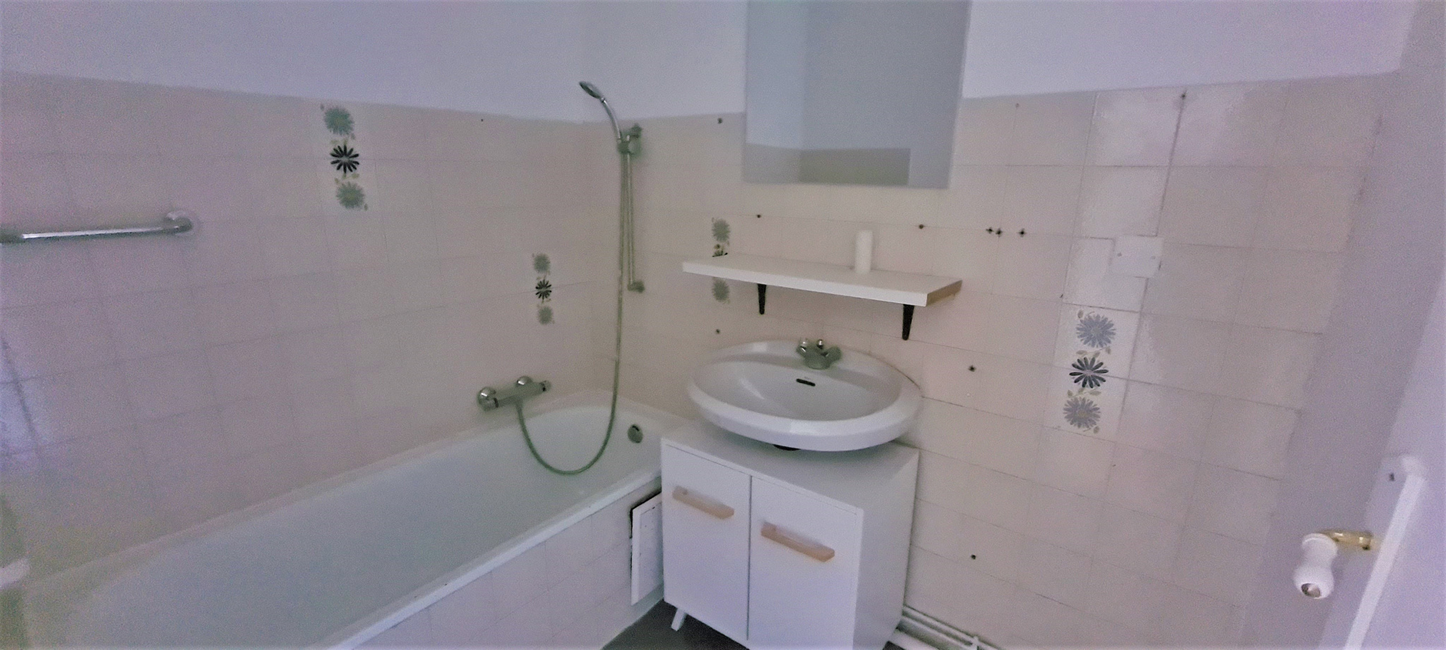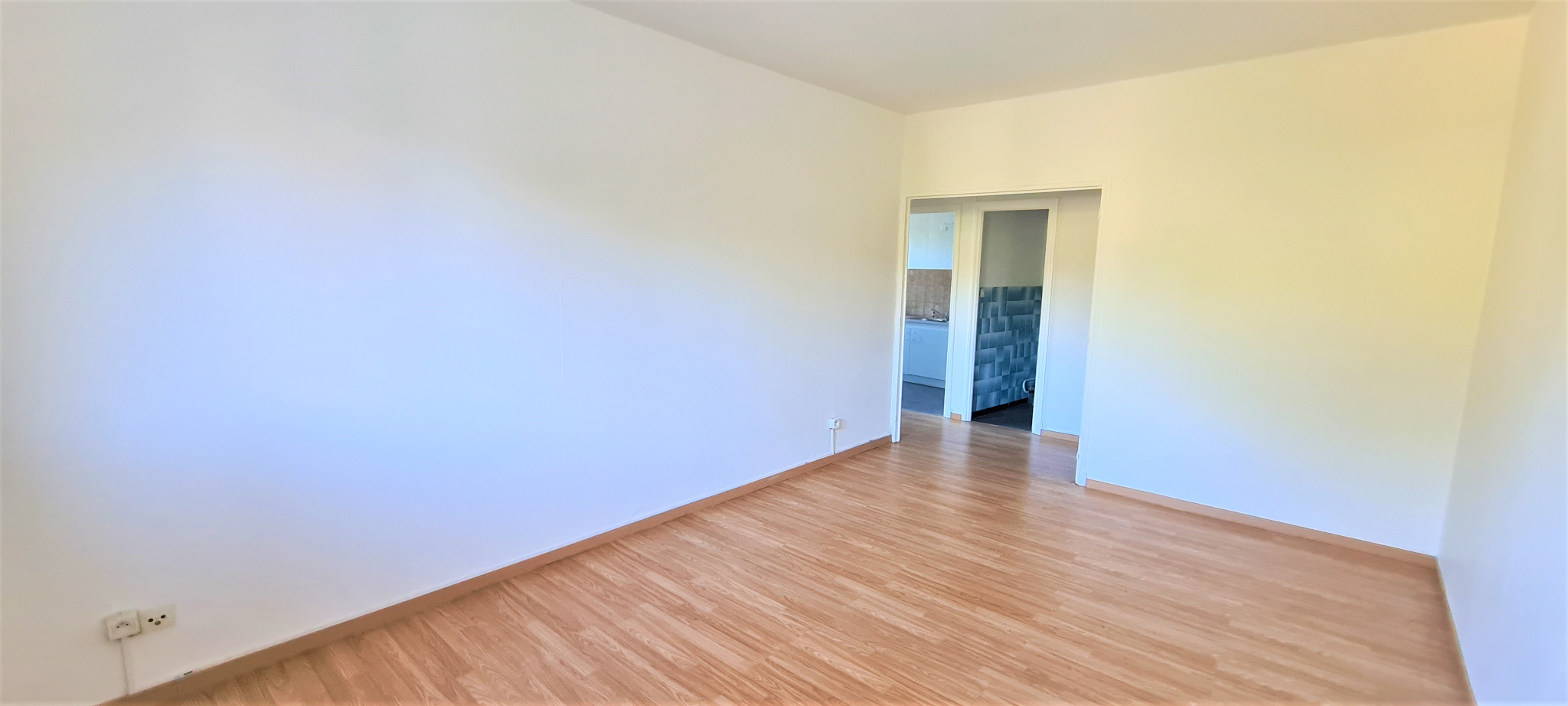 À louer, appartement comprenant deux chambres, une salle de bain, une cuisine et un coin séjour. L'appartement dispose également d'une cave et d'un garage.