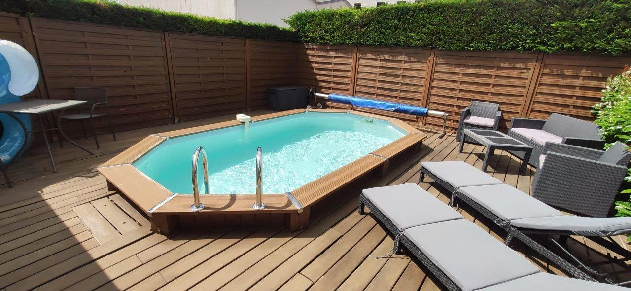 L'appartement dispose également d'une terrasse donnant sur un magnifique jardin de 500 m2, orienté sud-ouest, avec piscine privative chauffée