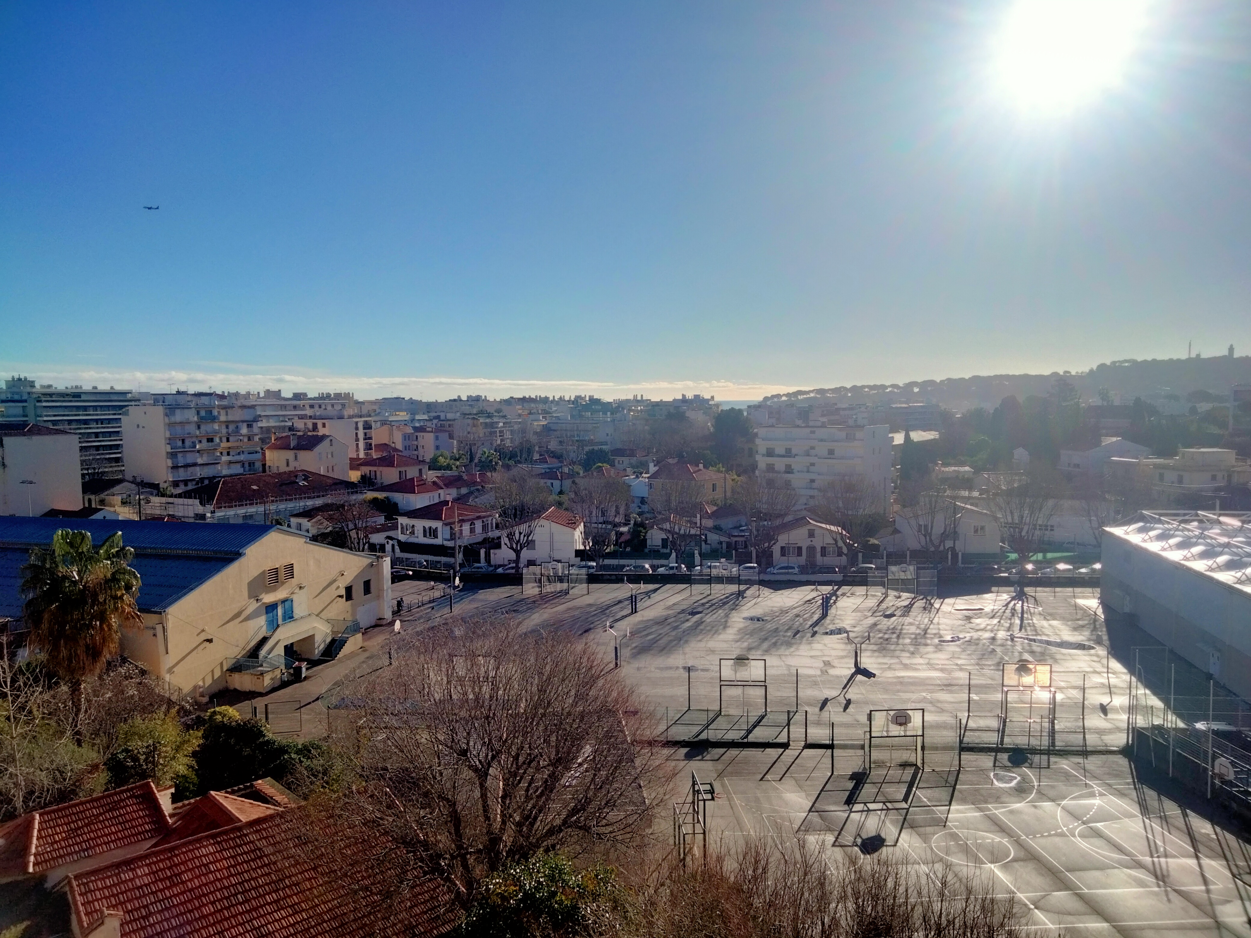 Antibes Centre – Grand 3 pièces + Garage Au 6ème étage sur 7 d'une résidence de standing, lumineux 3 pièces 74 m2 traversant, il est composé d'une entrée 7 m2, cuisine équipée 9 m2 sur terrasse Ouest, séjour 23 m2 sur terrasse Ouest, une chambre 13 m2 avec salle de bains et WC sur terrasse Est avec une vue dégagée sur le Cap d'Antibes, aperçu mer, une chambre 11 m2 avec salle d'eau et WC sur terrasse Est. L'appartement ne nécessite pas de travaux, double vitrage, entièrement climatisé ( 3 pompes à chaleur ) avec chauffage et eau chaude collectif gaz. Garage avec cave intégrée en sous-sol. Ravalement de façade en cours, payé par le vendeur. Le bien est soumis au statut de la copropriété , la copropriété comporte 85 lots , la quote-part budget prévisionnel (dépenses courantes) est de 4 099,00 euros/an. Honoraires à la charge du vendeur. Montant estimé des dépenses annuelles d'énergie pour un usage standard : entre 890 et 1 270 euros. Prix moyens des énergies indexés en 2021.