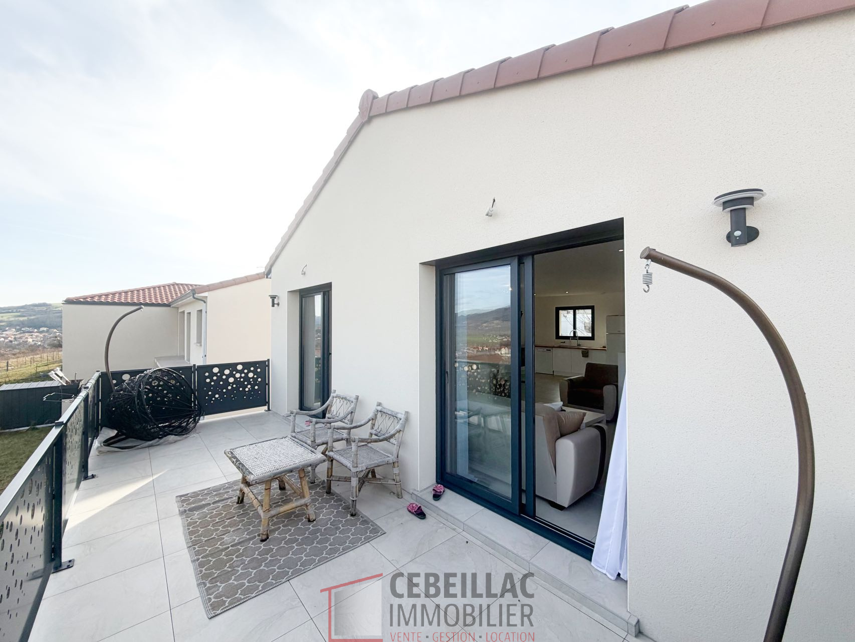 L'Agence Cebeillac Immobilier vous propose à la vente cette jolie maison neuve de style inversé de 115 m2, avec jardin clos et arboré, idéalement située sur la commune des Martres-de-Veyre.