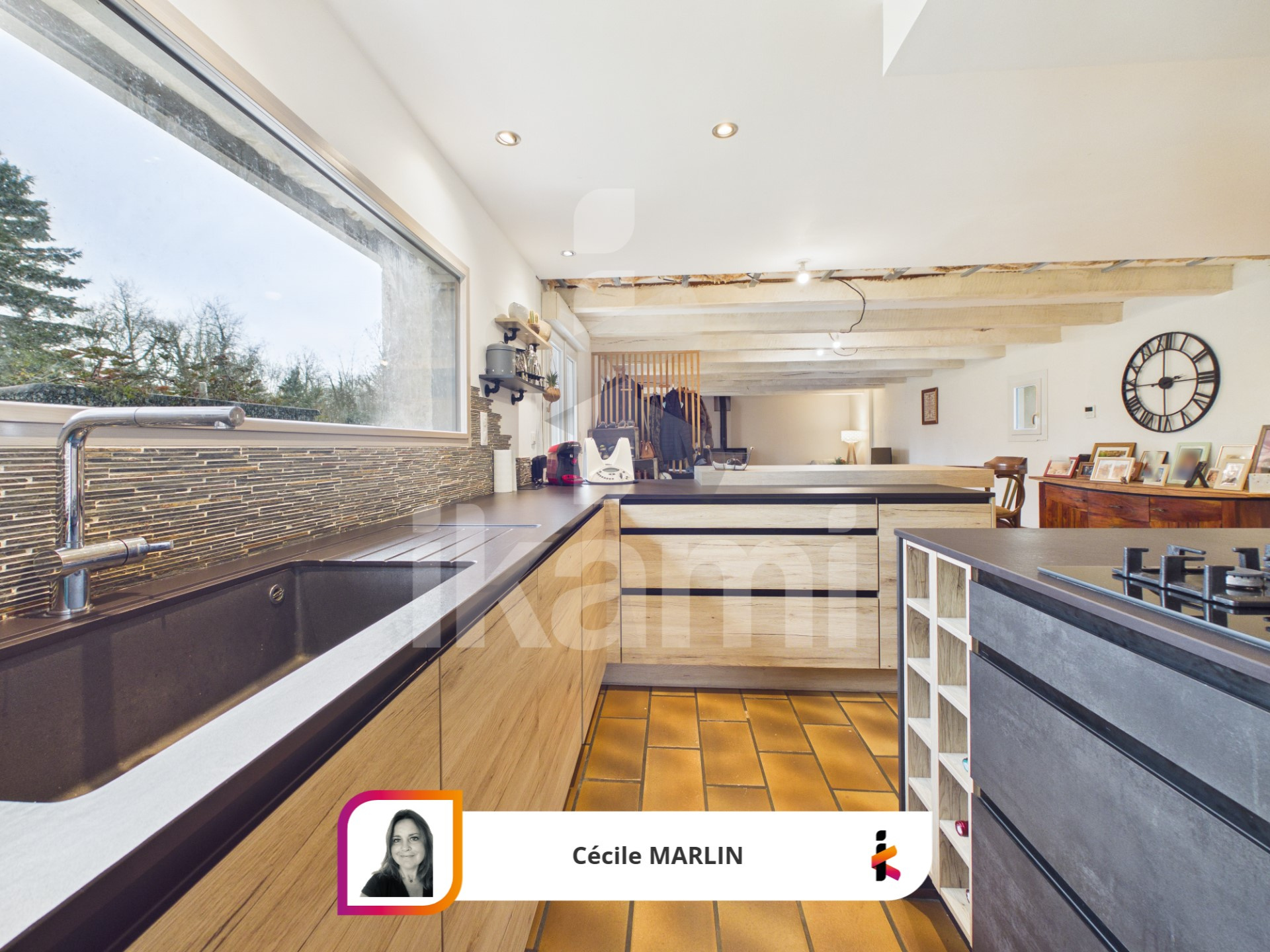 Le rez-de-chaussée accueille une pièce de vie de 70 m2, baignée de lumière grâce à son exposition plein sud, agrémentée d'un insert et ouverte sur une cuisine contemporaine aux lignes épurées, idéale pour les moments de convivialité.