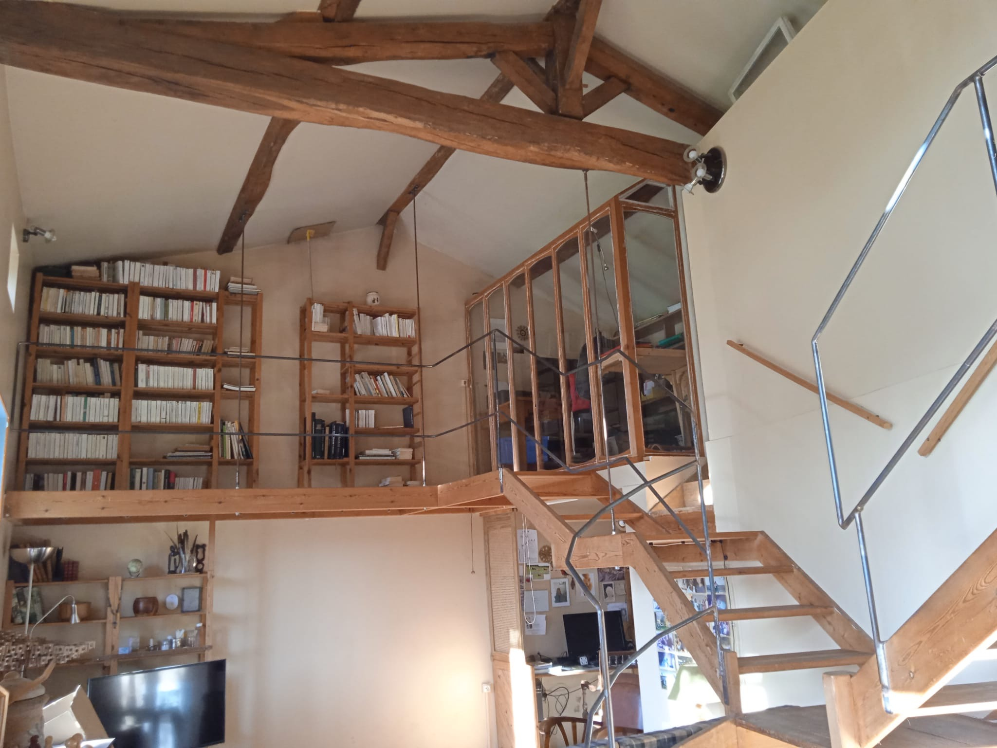 Au rez-de-chaussée, vous découvrirez un séjour convivial ouvert sur une cuisine équipée, un grand cellier, un coin bureau ainsi que des WC. À l'étage (partiel), la maison offre une chambre, un dressing, une salle d'eau avec WC et un second coin bureau.
