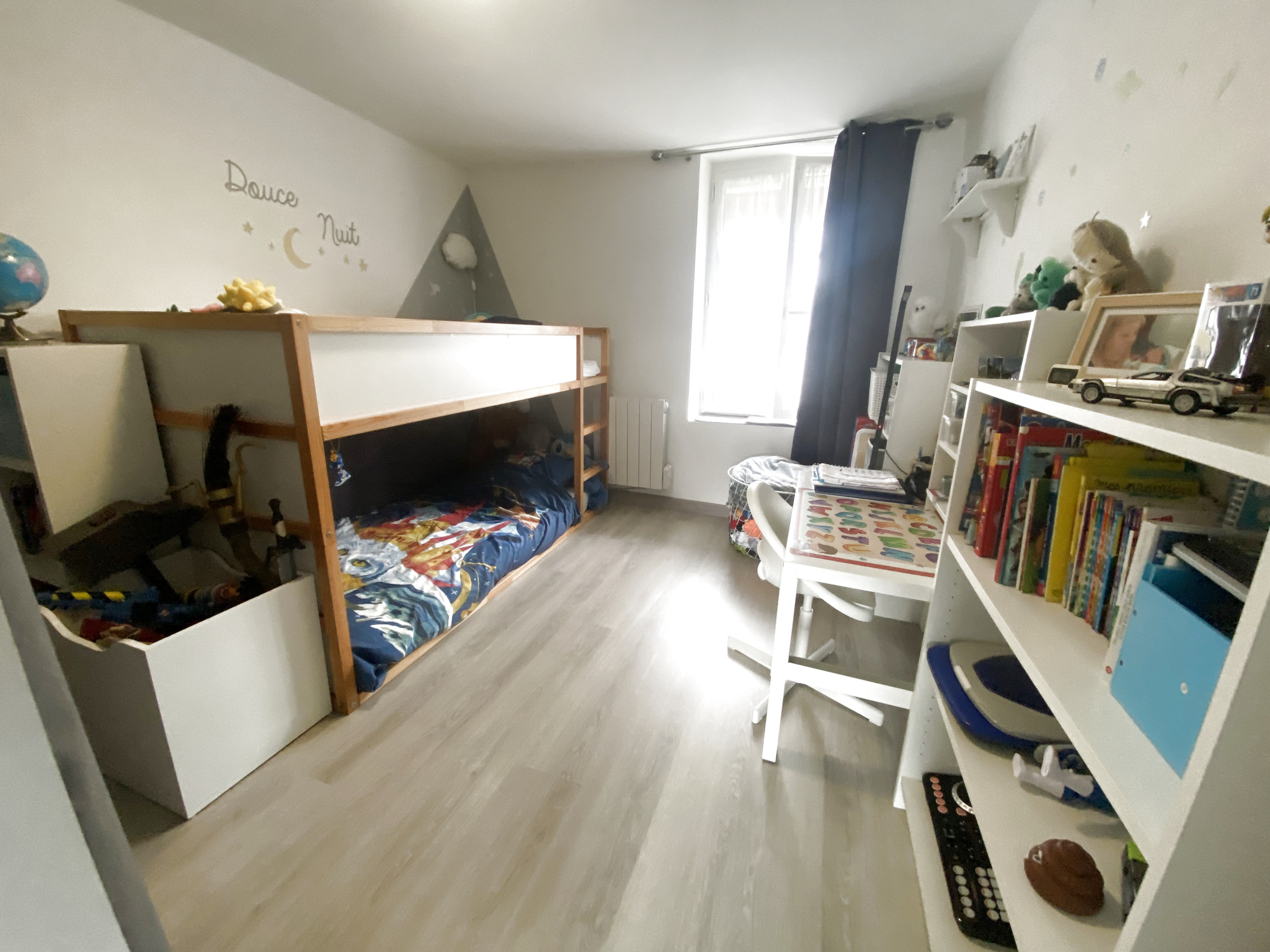 Entrée sur séjour avec accès à une terrasse, une gande cuisine séparée et équipée, WC indépendant et une grande chambre.