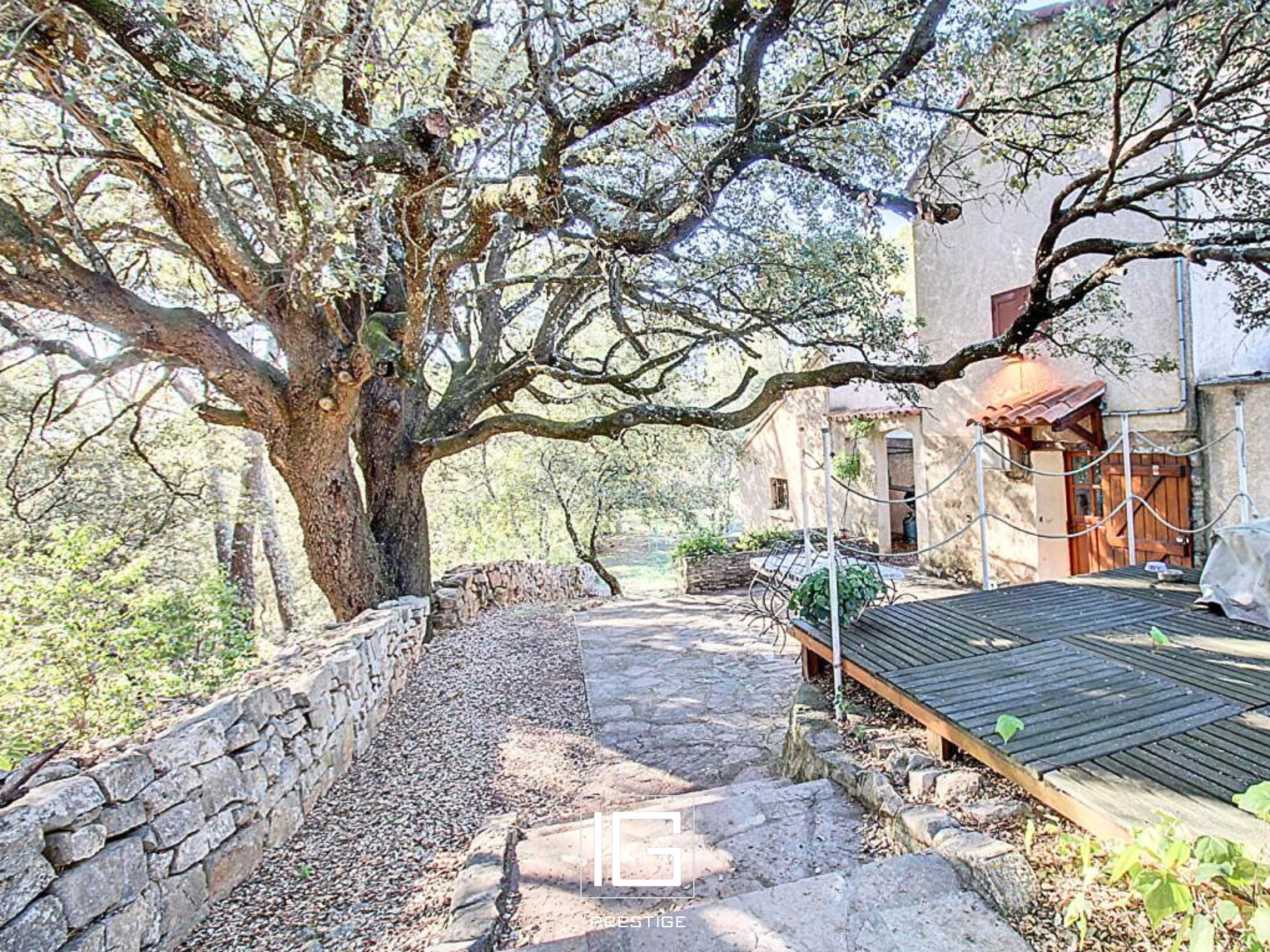 Nichée dans un environnement de calme absolu, au coeur d'un écrin de verdure, cette élégante maison traditionnelle de 1988 conjugue authenticité provençale et confort moderne sur environ 102 m2 habitables. Dès l'entrée, vous découvrirez un vaste salon de 50 m2 baigné de lumière, agrémenté d'une grande baie vitrée avec rideau électrique, idéal pour recevoir famille et amis dans une atmosphère conviviale. La cuisine indépendante de 9,40 m2 à remettre à son gout,fonctionnelle et pleine de charme, saura séduire les amateurs de convivialité.Le côté nuit se trouve à l'étage la maison offre deux chambres confortables dont une de 18 m2, un bureau lumineux de 12 m2, deux WC, ainsi qu'une salle d'eau.Équipée de la climatisation réversible, la maison garantit un confort optimal tout au long de l'année. La véranda de 14 m2, carrelée en travertin comme le séjour, apporte une véritable pièce supplémentaire. Déjà raccordée à l'électricité, elle peut aisément être transformée en une quatrième chambre, ou devenir un bel espace de lecture donnant sur le jardin. À noter également : l'installation électrique complète (EDF) a été refaite à neuf, gage de sécurité et de tranquillité. À l'extérieur, le terrain de 4 600 m2 est un véritable havre de paix. Vous y trouverez une magnifique oliveraie, de majestueux chênes, dont un spécimen remarquable âgé de plus de 300 ans, ainsi que de larges espaces permettant de stationner facilement une dizaine de véhicules. Cet écrin de verdure offre un cadre rare et préservé, où règnent nature et sérénité. Pour vos instants de détente, une piscine au chlore de 8x4 m en coque, équipée d'un moteur et d'une filtration neufs (pompe + filtre à sable), vous permettra de profiter pleinement des beaux jours sous le soleil provençal. Un garage attenant de 40 m2 vient compléter l'ensemble, avec la possibilité de le transformer en studio indépendant, atelier ou autre projet. De plus, il est possible d'agrandir la maison de 40 m2 supplémentaires : par exemple, pour étendre la cuisine ou créer de nouveaux espaces de vie selon vos besoins. Enfin, une maisonnette en annexe (hors d'eau, hors d'air, déjà raccordée à l'électricité) constitue un atout supplémentaire. Cet espace brut peut être aménagé selon vos envies : chambre d'amis, atelier d'artiste, bureau indépendant ou logement complémentaire. Cette propriété séduit par son cadre naturel exceptionnel, son charme intemporel, et surtout par ses multiples perspectives d'évolution et de valorisation. Elle s'adresse à ceux qui recherchent à la fois le charme provençal, le calme absolu et la liberté d'aménager un bien rare selon leurs projets.