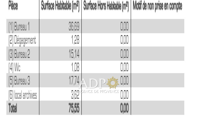 Superficie de 75 m² composée d'un bureau d'accueil de 36 m², d'un bureau de direction de 17 m²,