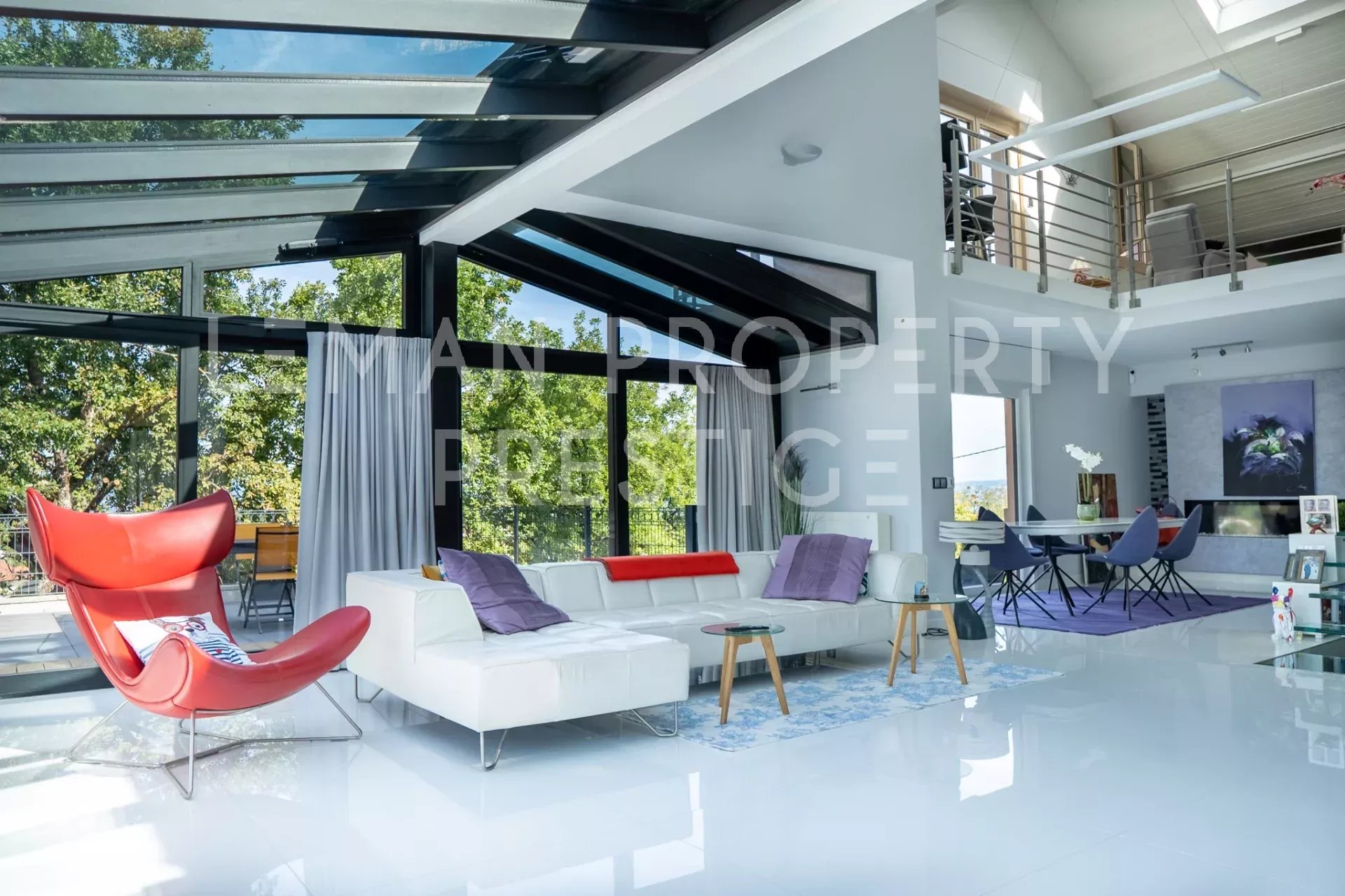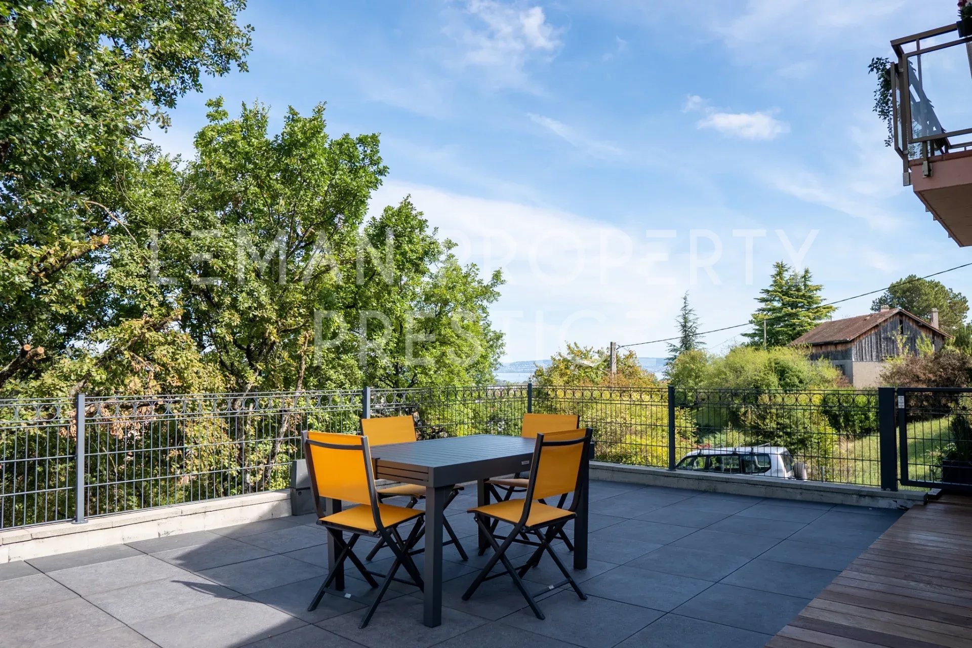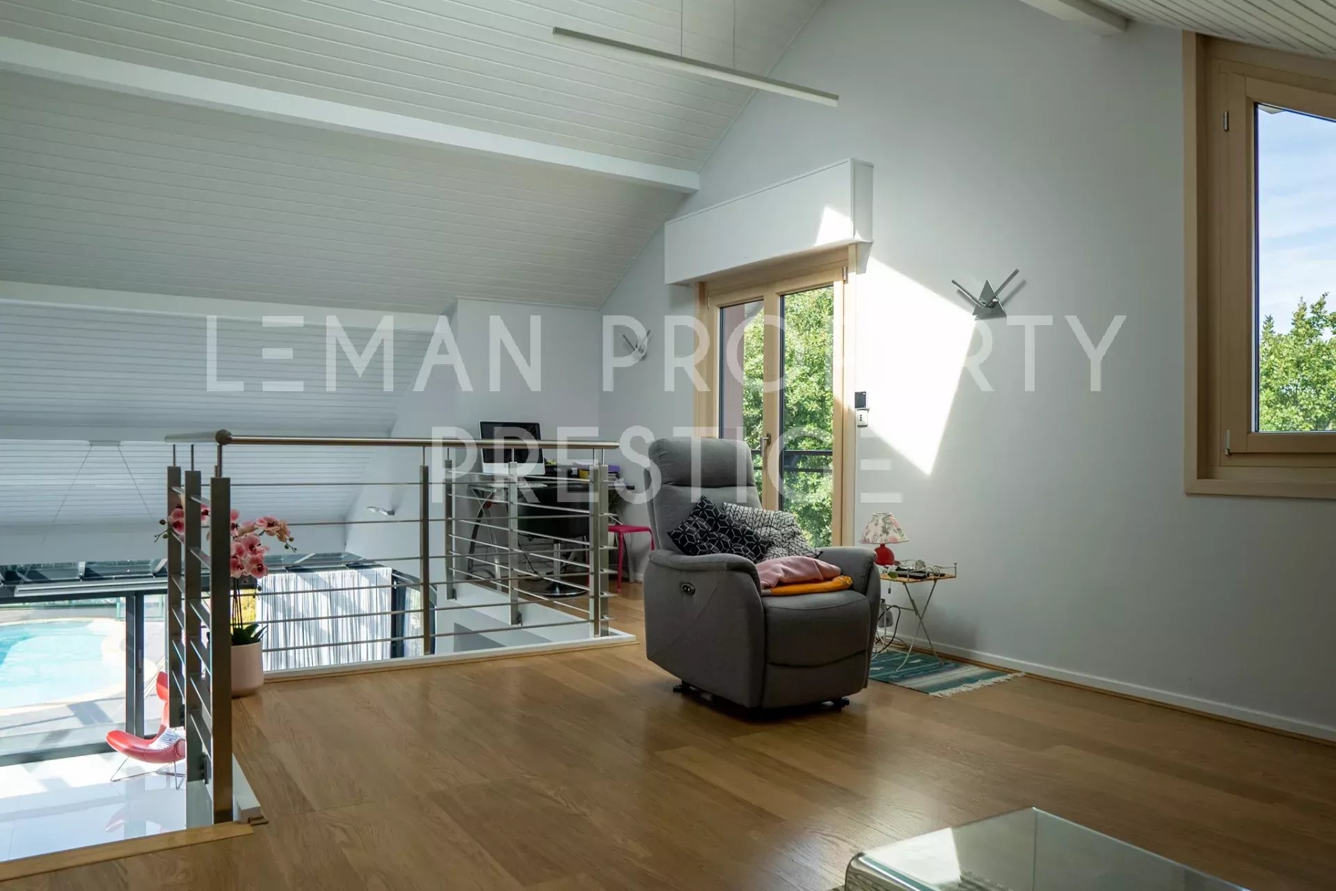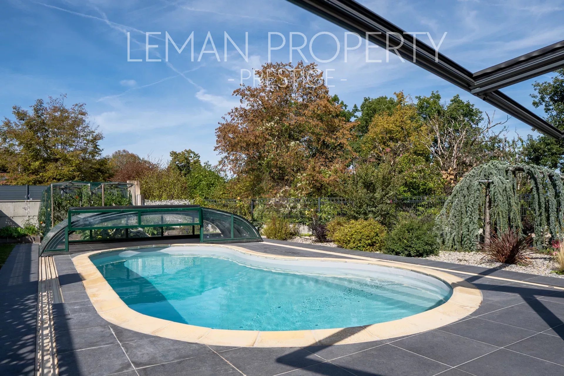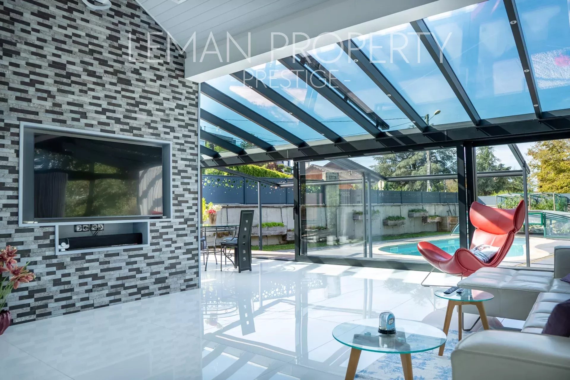 Découvrez cette magnifique propriété entièrement rénovée avec goût et belles prestations. Nichée dans un quartier pavillonnaire paisible avec une vue sur le Lac. Cette villa offre de beaux volumes et est très lumineuse. Le vaste séjour cathédrale baigné de lumière grâce à ses larges baies vitrées ouvre sur un extérieur agréable, idéal pour se détendre au bord de la piscine avec abri. La cuisine moderne équipée et son arrière-cuisine fonctionnelle complètent parfaitement cet espace de vie convivial. Trois chambres confortables dont deux au rez-de-chaussée avec salle de douches, rangements et WC. A l'étage mezzanine / bureau avec extérieur, une belle suite parentale avec salle de bains, dressing, balcon. Un sous-sol total complète le bien avec sauna. Cette demeure allie parfaitement confort, luminosité et cadre privilégié pour une qualité de vie exceptionnelle. DPE C GES B Honoraires à la charge du vendeur. Les informations sur les risques auxquels ce bien est exposé sont disponibles sur le site Géorisques : georisques.gouv.fr