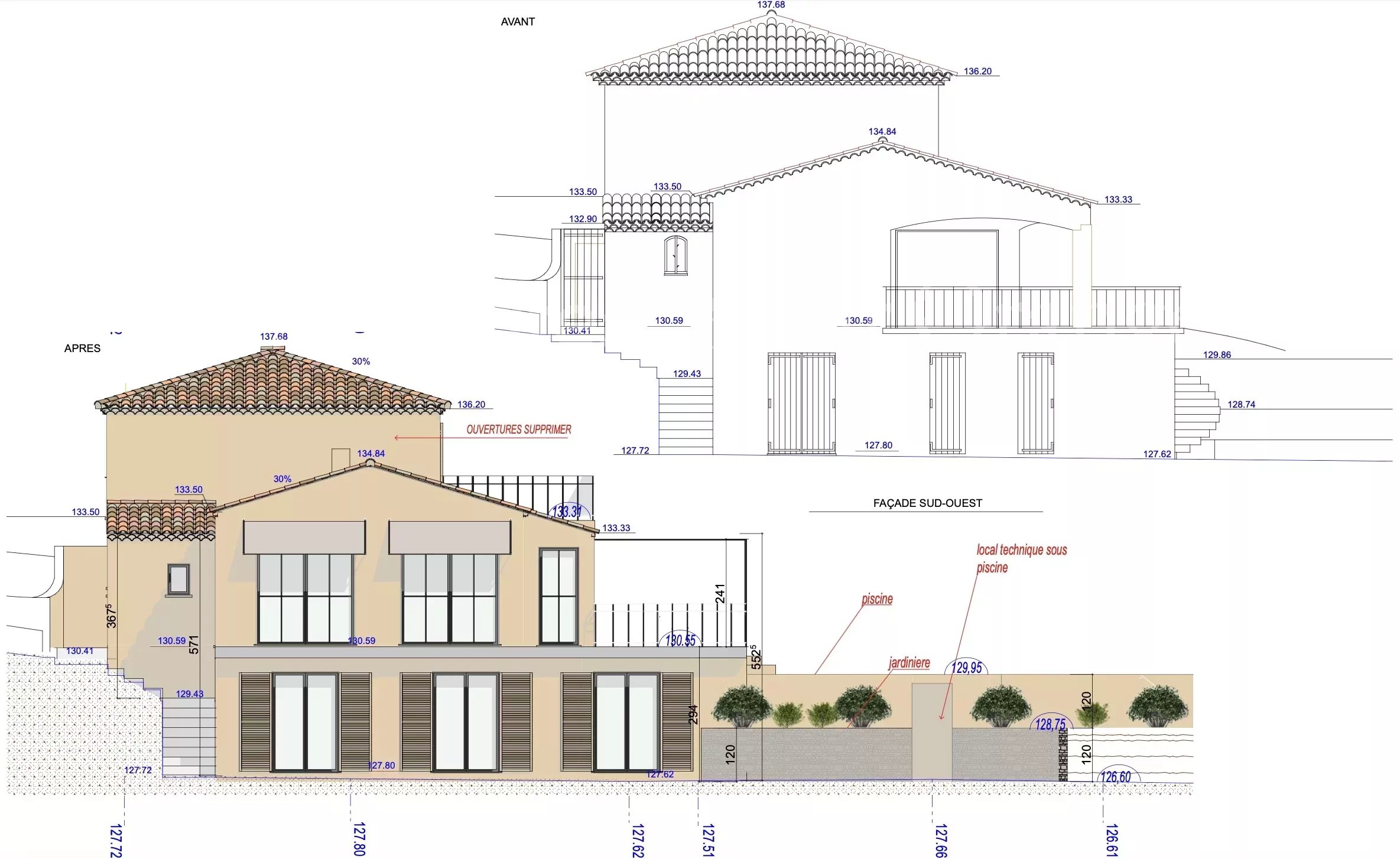 Cette somptueuse villa contemporaine offre environ 289 m² de surface habitable sur un terrain de 1 140 m², avec une vue imprenable sur la baie de Saint-Tropez. Conçue pour allier élégance et confort, la propriété dispose de cinq grandes chambres en suite, d’un salon raffiné, d’une salle à manger et d’une cuisine moderne ouvrant sur une terrasse couverte, idéale pour une vie intérieure-extérieure face à la piscine et à la mer. Son exposition plein sud garantit une luminosité naturelle optimale tout au long de la journée. Les plans architecturaux, réalisés par des architectes de renom, proposent une transformation contemporaine alliant lignes épurées et élégance méditerranéenne. La villa bénéficie également , de vastes terrasses incluant la piscine, et un parking pour quatre véhicules. Une opportunité rare de personnaliser une villa contemporaine à fort potentiel de valorisation, livrée clé en main, avec cuisine entièrement équipée et dressings sur mesure dans chaque chambre,