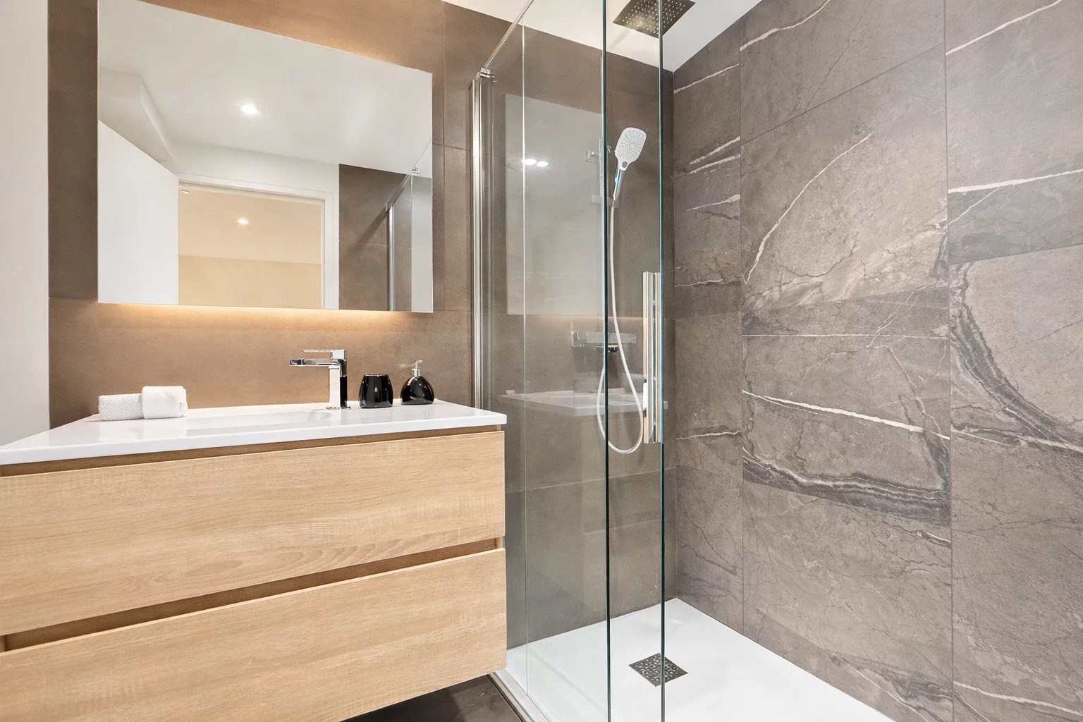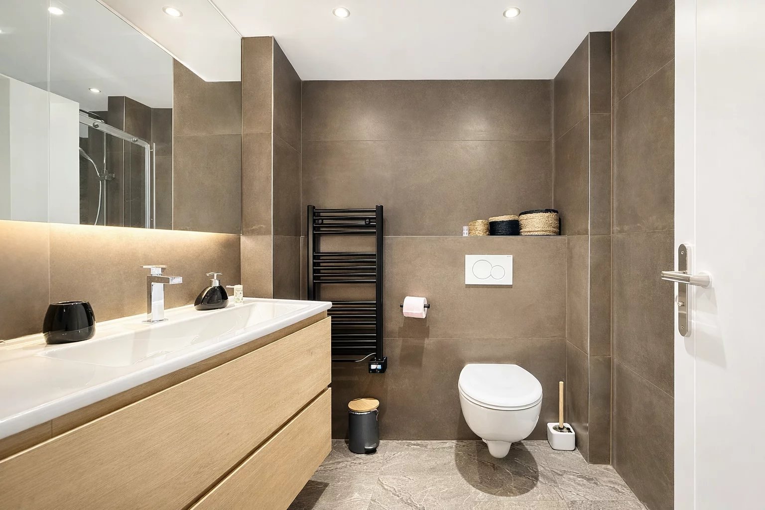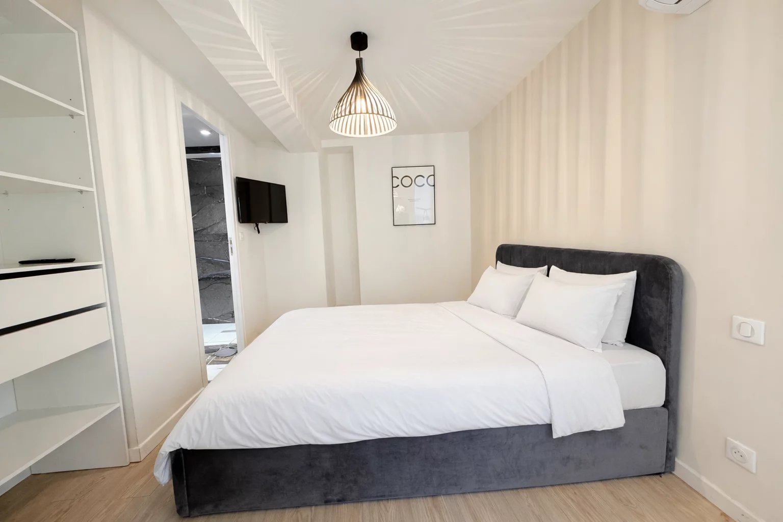 Située dans le quartier recherché du Petit Juas, à proximité des commerces, des transports, des écoles et à quelques minutes de la Croisette, cette élégante maison de ville séduit par son style contemporain et son agencement optimisé sur trois niveaux. D’une surface Loi Carrez de 90,07 m² et d’une surface habitable totale de 103,40 m², elle offre des prestations modernes et un confort de vie idéal, que ce soit pour une résidence principale, un pied-à-terre ou un investissement locatif à fort rendement. Dès l’entrée, vous découvrez une belle pièce de vie avec cuisine entièrement équipée, ouverte sur un espace salon-salle à manger lumineux. Cet espace convivial s’ouvre directement sur un petit jardin, apportant une touche de verdure et un agréable prolongement extérieur. Le rez-de-chaussée accueille deux chambres en suite, chacune avec salle de bain, dressing et WC, offrant confort et indépendance. À l’étage, la suite principale dispose de sa propre salle de douche, d’un dressing et d’un WC indépendant. L’accès à la maison se fait par un passage commun au sein d’un petit immeuble de ville, menant à la maison qui est entièrement individuelle. Charges d’environ 550 € par an correspondant au droit de passage pour l’accès à la maison. Un bien rare à Cannes, alliant élégance, confort et fort potentiel locatif.