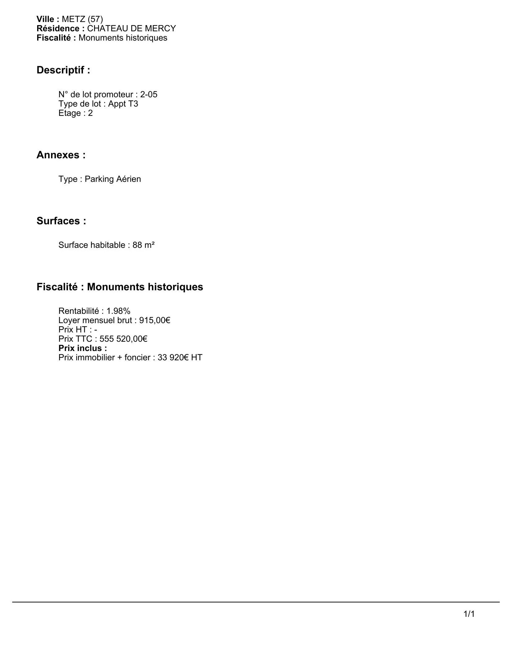 Découvrez ce magnifique appartement de 88 m² situé dans un cadre d'exception à Ars-Laquenexy. Doté de deux chambres spacieuses, il offre un espace de vie lumineux et accueillant. Ce bien rare se trouve dans un bâtiment historique, alliant le charme de l'ancien aux commodités modernes. Le salon, au cœur de l'appartement, se prête parfaitement à la détente et aux réceptions. La cuisine, entièrement équipée, saura séduire les amateurs de gastronomie. Chaque chambre est conçue pour offrir un maximum de confort et de tranquillité, avec des finitions soignées. Ce logement est idéalement situé, offrant un accès facile aux commerces de proximité et aux transports en commun. Profitez d'une qualité de vie exceptionnelle dans un environnement historique, tout en bénéficiant des avantages fiscaux liés aux monuments historiques. Ne manquez pas cette opportunité unique d'investir dans un patrimoine remarquable.