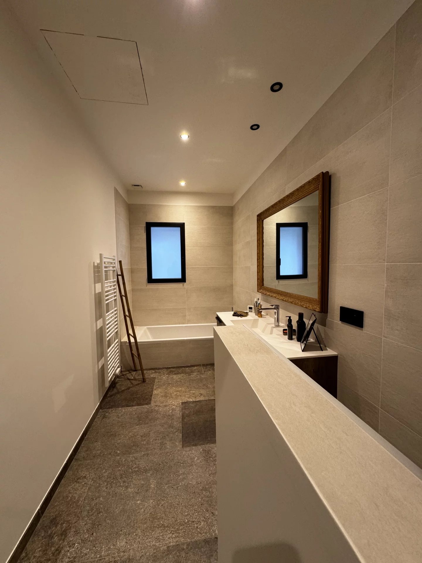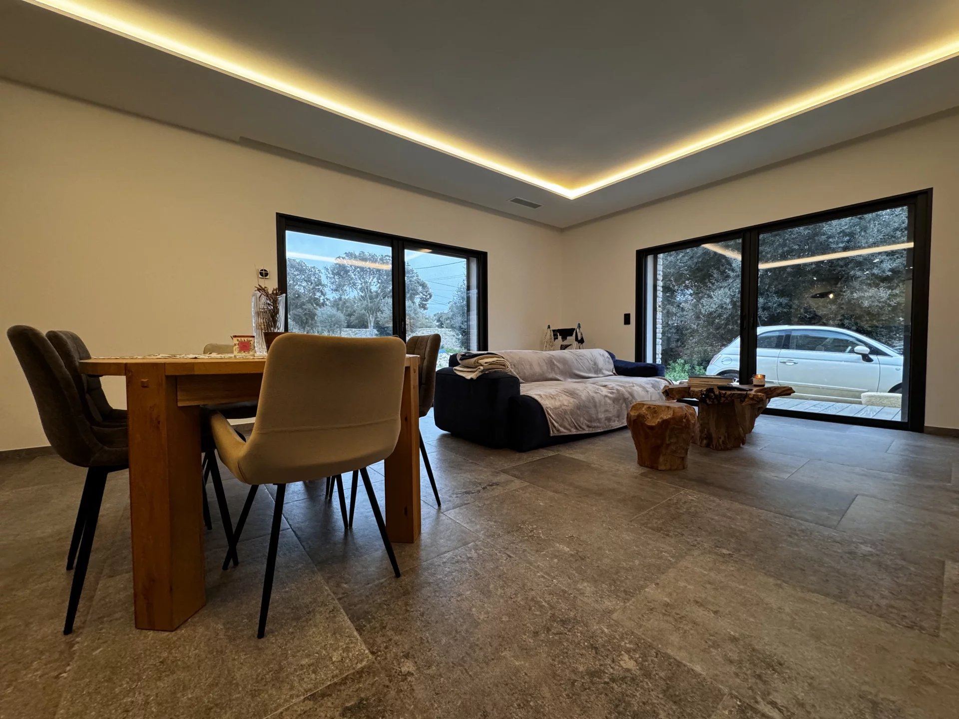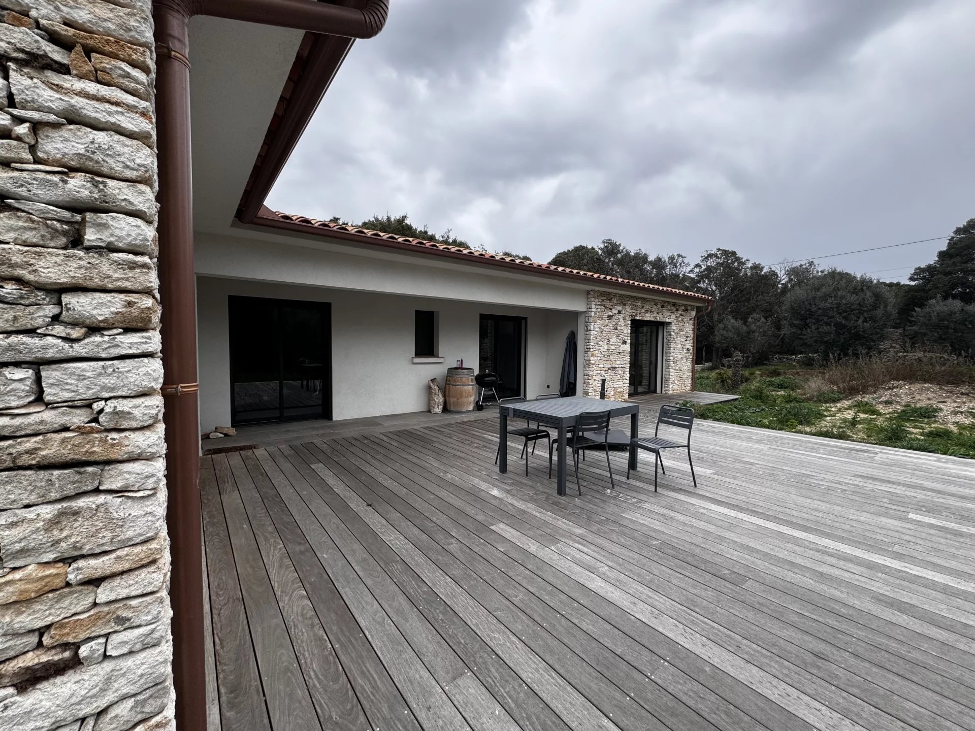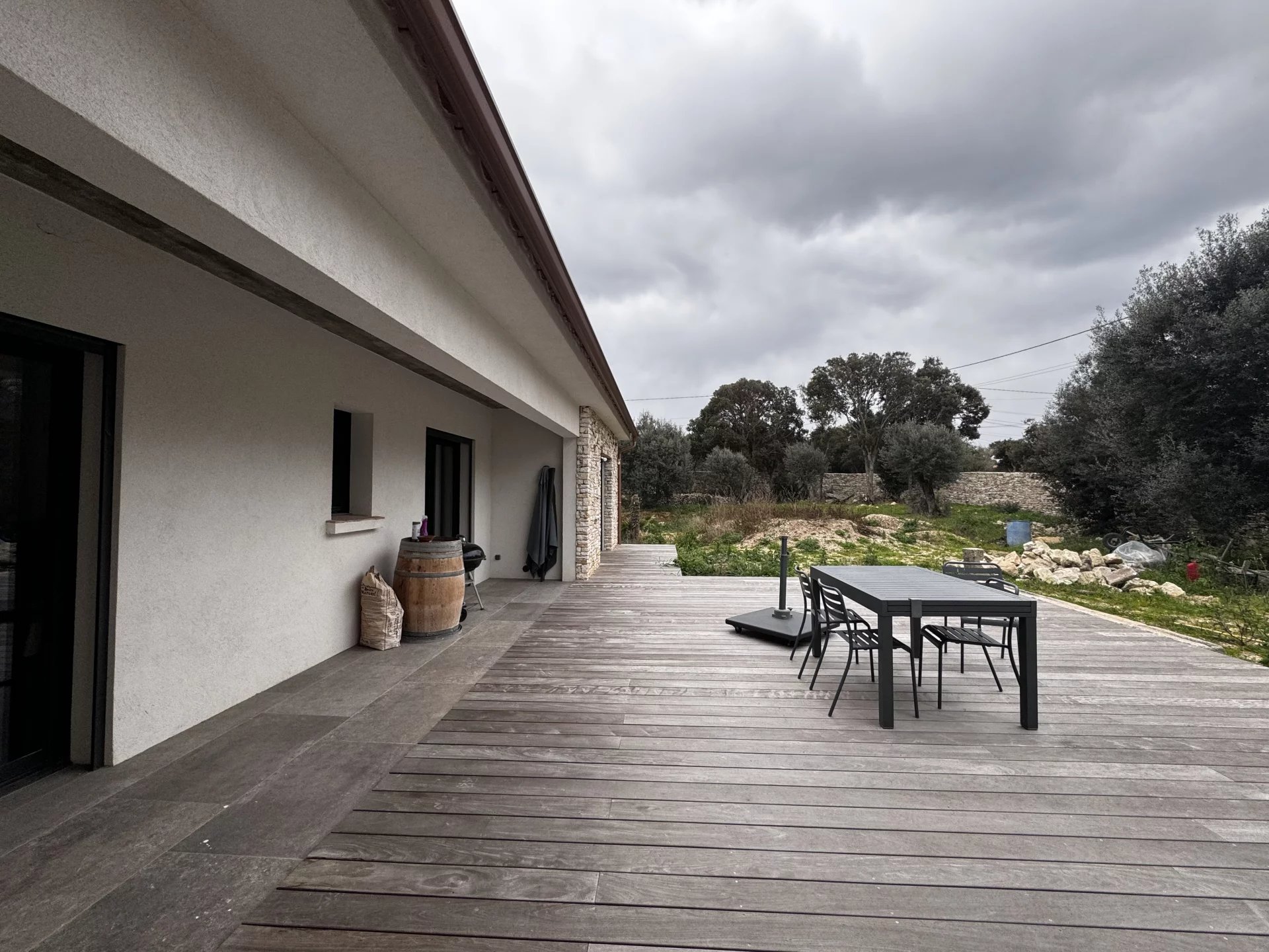 Située en pleine campagne Bonifacienne et proche centre, sur terrain clos de 1276m2, une villa récemment construite de 125m2 avec 70m2 de terrasse IP. Séjour avec cuisine équipée ouverte sur espace repas, salon coin TV et Poêle, le tout donnant accès aux terrasses extérieures. Une buanderie attenante. Une chambre parentale avec dressing, salle d’eau, WC et terrasse. Deux chambres avec salle de bain commune, WC. Terrasse IP Espace repas Terrain clos Place de parking privative PLancher chauffant Climatisation gainable Vendue non meublée Fibre