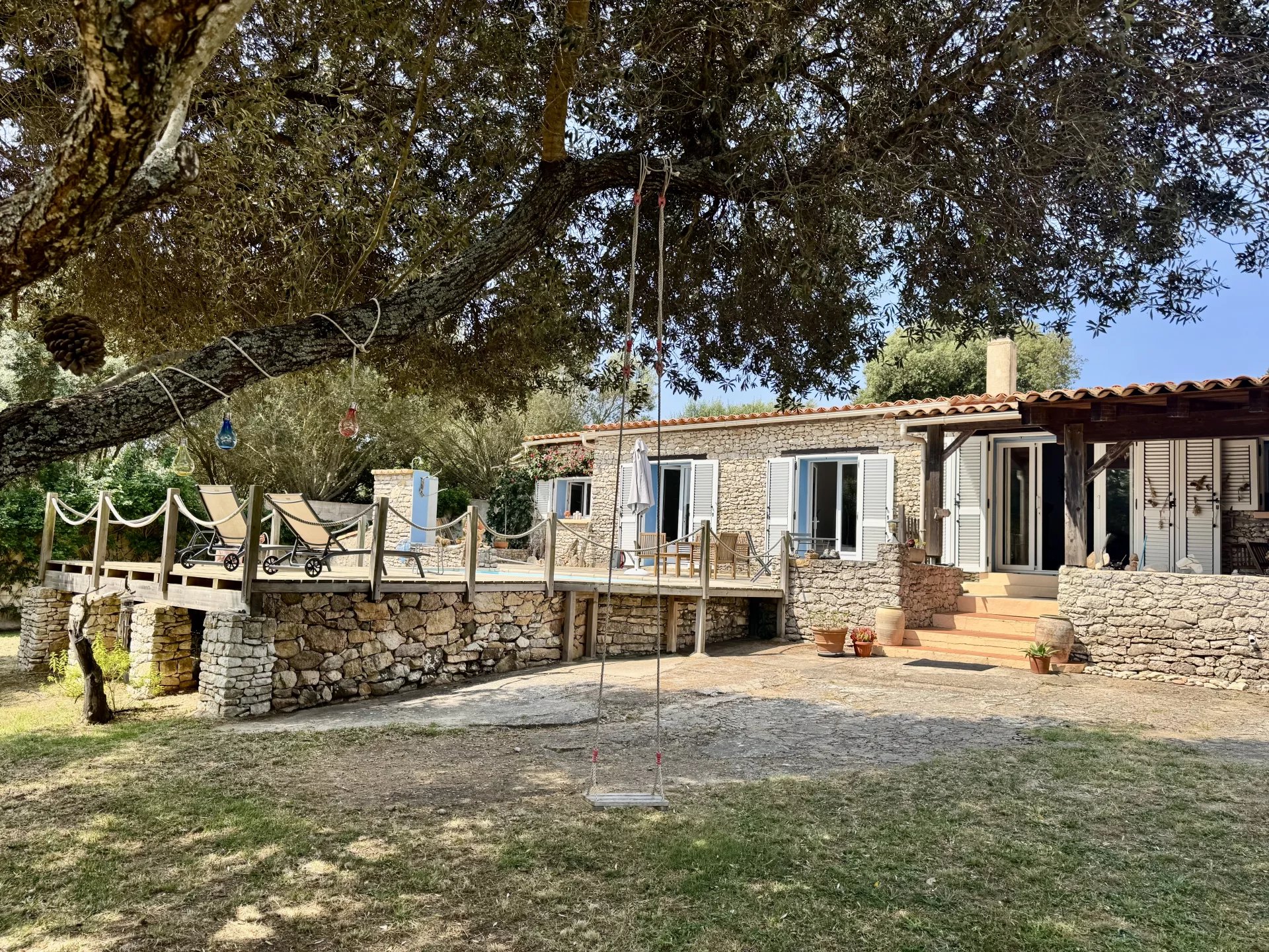 Cette villa est située à Bonifacio, à proximité du port de Bonifacio et de ses commerces. D'une surface de 91 m², elle bénéficie d’un emplacement idéal à proximité des plages et du centre historique. Elle se compose comme suit : Un espace de vie comprend une cuisine ouverte, salon/salle à manger agrémenté d’un coin cheminée, le tout donnant sur une terrasse couverte et aménagée avec piscine. Deux chambres, chacune avec un accès direct à une terrasse donnant sur la piscine, salle de bain commune. Édifiée sur un terrain d’environ 2 451 m², cette charmante villa est un véritable havre de paix abritant des oliviers centenaires. Terrain entièrement clôturé en pierres blanches de Bonifacio . Terrain de boules Piscine 2m30/5M Terrain 2451 m2 Surface habitable 91 m2 Vendue meublée . Travaux effectués : Toit 3 ans Fenêtres/volets en PVC 9 ans Fosse septique 10 ans Honoraires à la charge du vendeur.