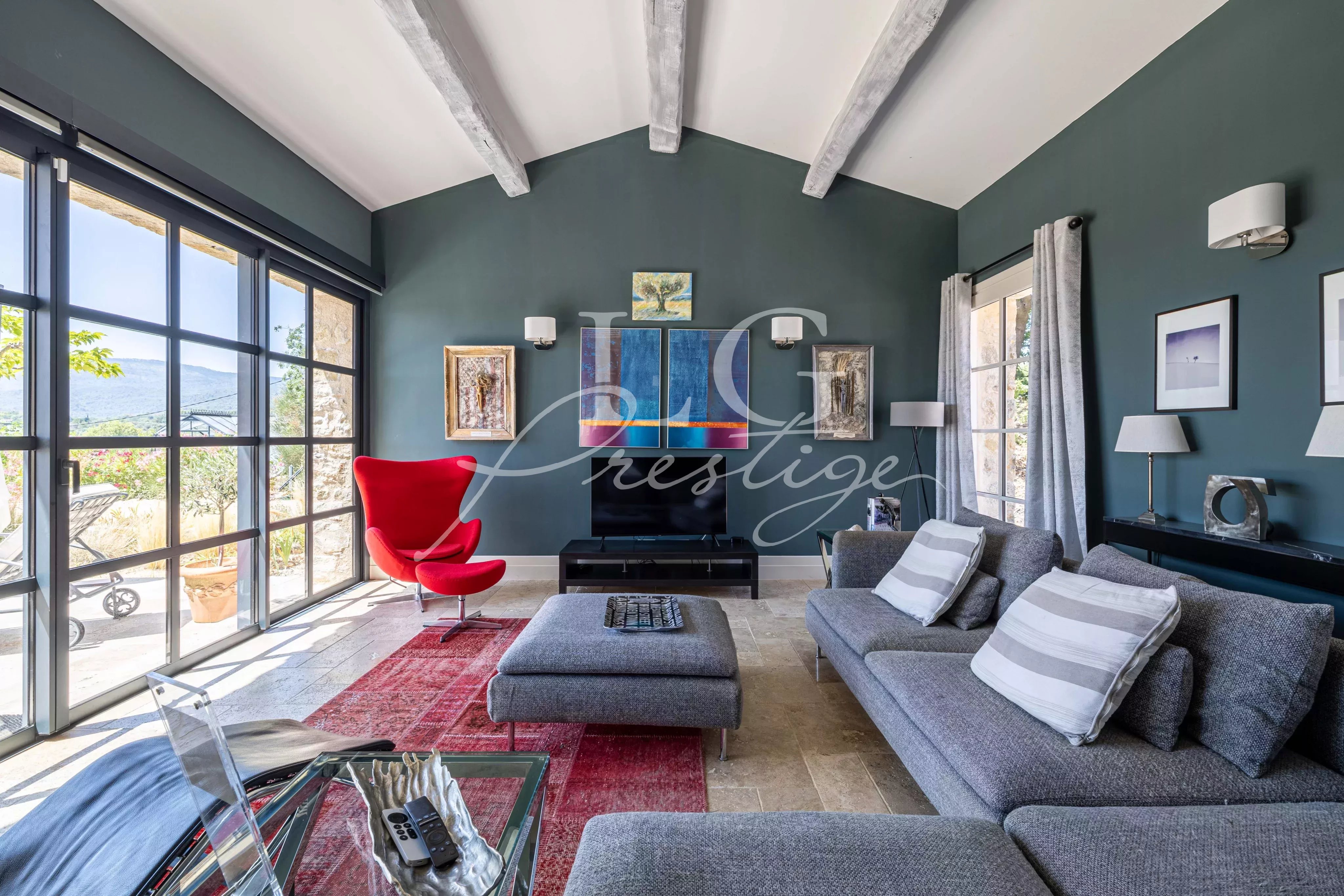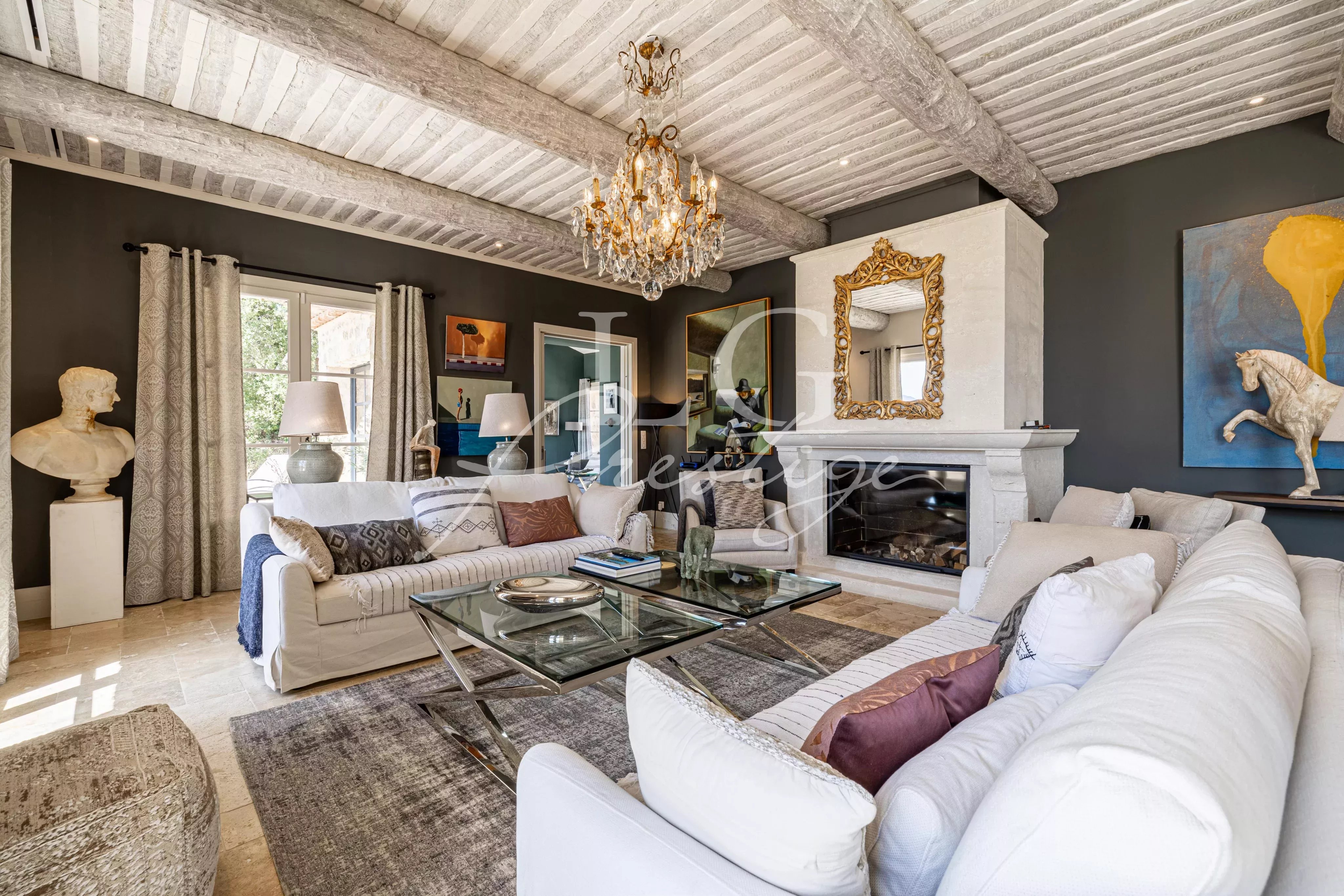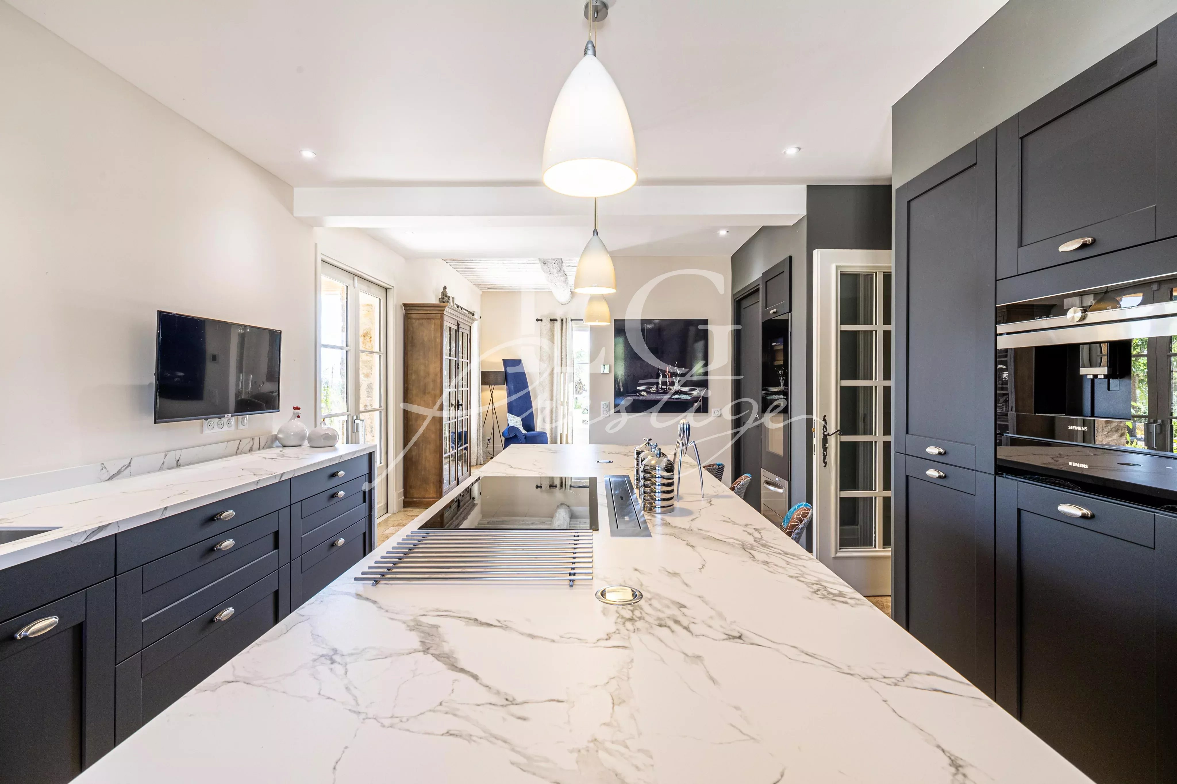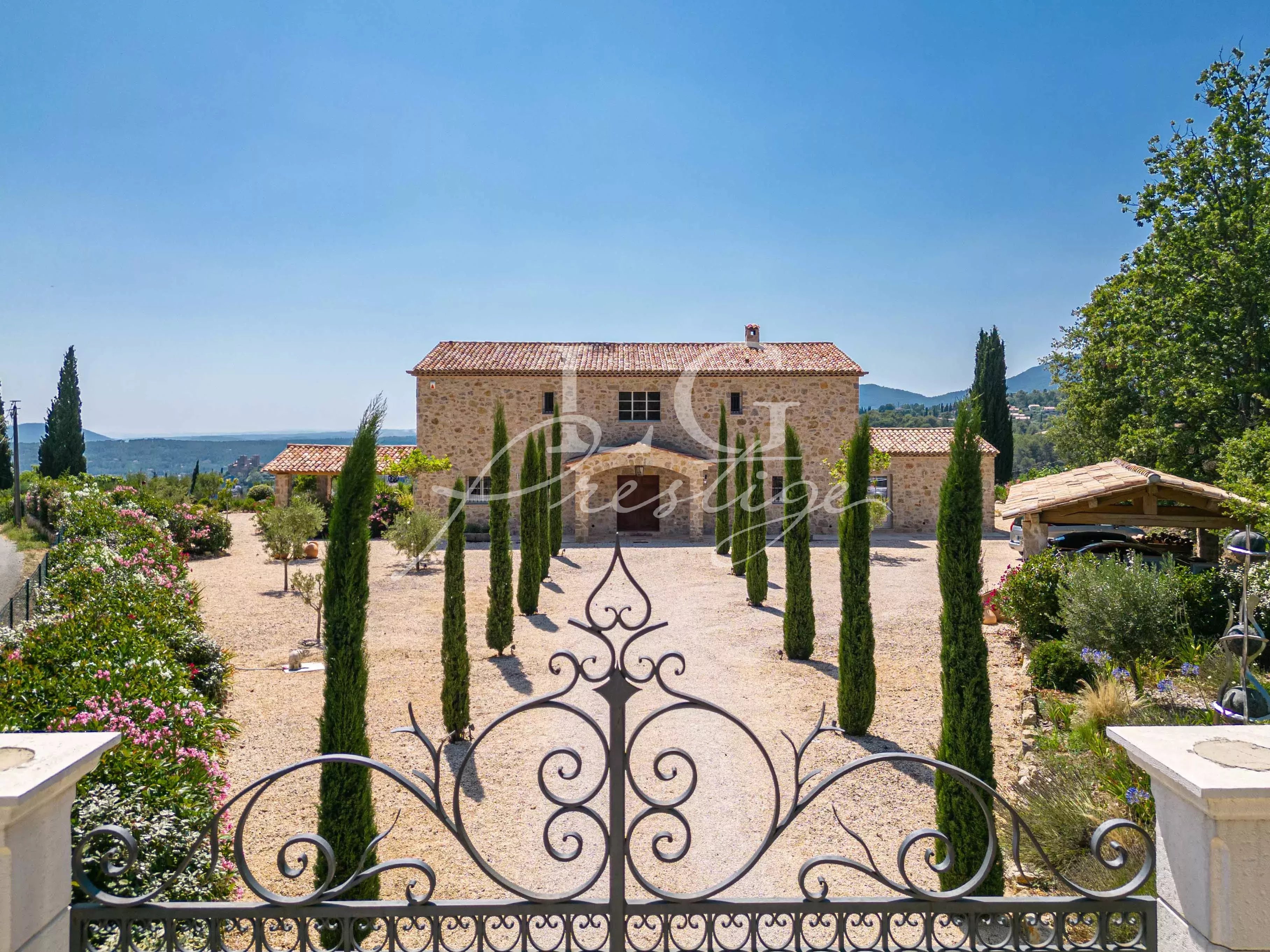 Superbe bastide en pierre de 350 m², construite avec des matériaux nobles, nichée sur un terrain paysager et clos de 7 700 m² en position dominante, offrant une vue panoramique sur la nature et les montagnes. Vous serez séduit par son calme absolu, sa piscine au sel chauffée 15x5 m, et sa proximité idéale : 5 min du Golf de Terre Blanche, 15 min du lac de Saint-Cassien et 40 min de la mer. La maison comprend : un vaste hall avec plafond cathédrale, salon avec cheminée, cuisine équipée ouvrant sur terrasse couverte et salon d’été, bureau, 5 chambres en suite dont une maître avec dressing et salle de bains complète. En sous-sol : cave à vin avec espace dégustation, salle de sport, lingerie et local technique.