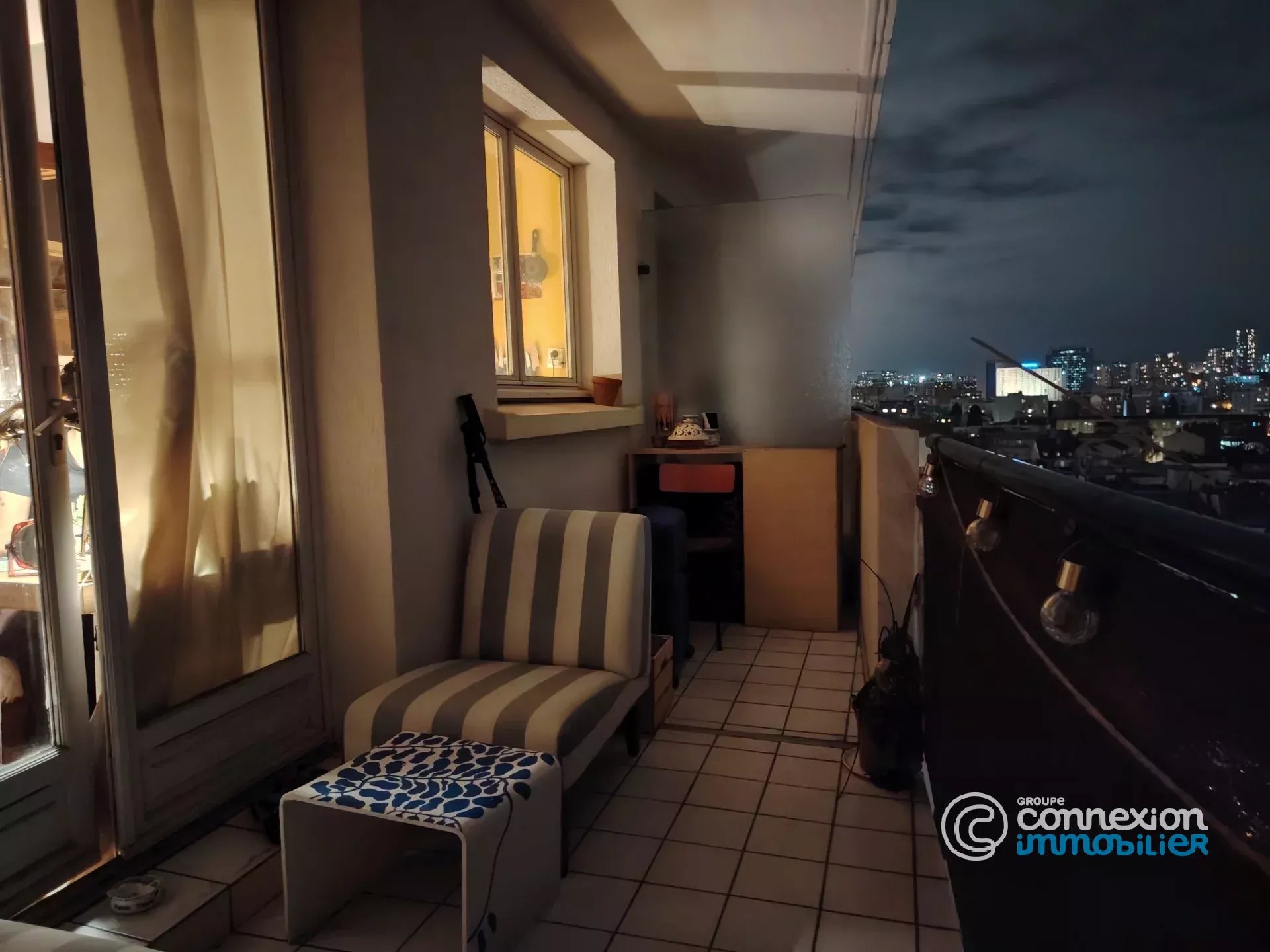 PÈRE LACHAISE-ALEXANDRE DUMAS Au dernier étage étage avec ascenseur d'un immeuble 1970 en très bon état. Studio de 25m2 carrez + une terrasse de 7m2 avec vue dégagée comprenant une entrée avec rangement, une belle pièce de vie donnant sur une terrasse de 7,60m2, une cuisine séparée et une salle de bain avec wc. L'appartement est lumineux sans vis à vis !