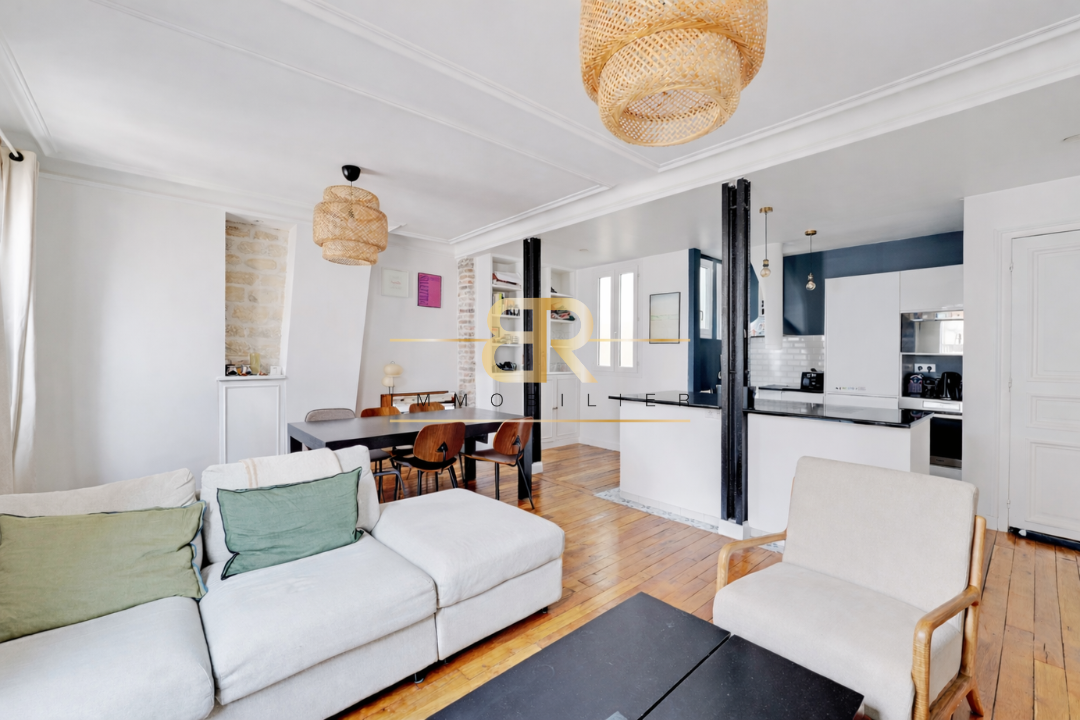 Ce bien plein de cachet se compose d'un vaste séjour lumineux de 33,46 m2 donnant SUR COUR, au CALME absolu, avec une cuisine OUVERTE ÉQUIPÉE et son îlot central. Dans un second temps, un dégagement avec RANGEMENTS dessert deux belles chambres, une salle d'eau et un WC séparé.