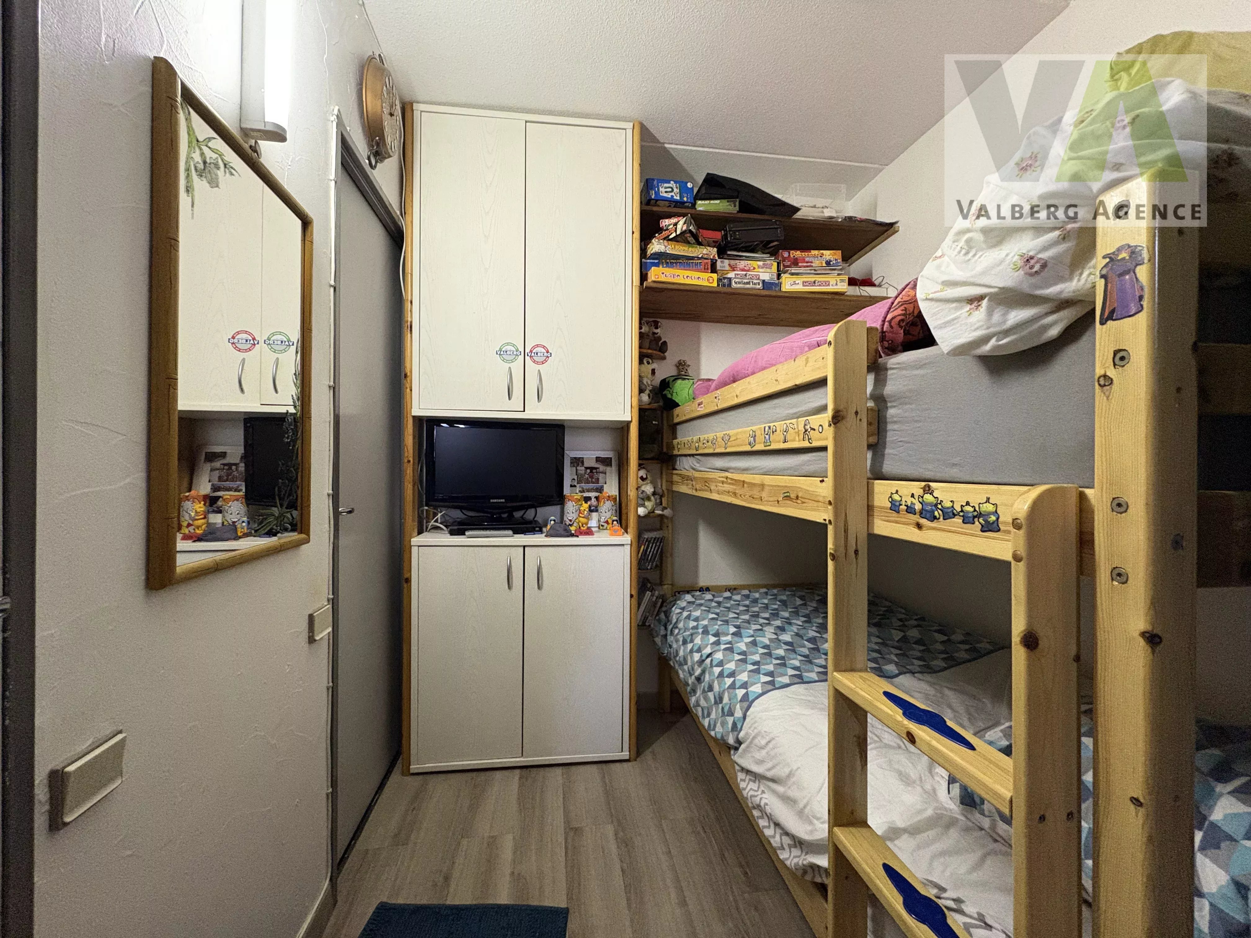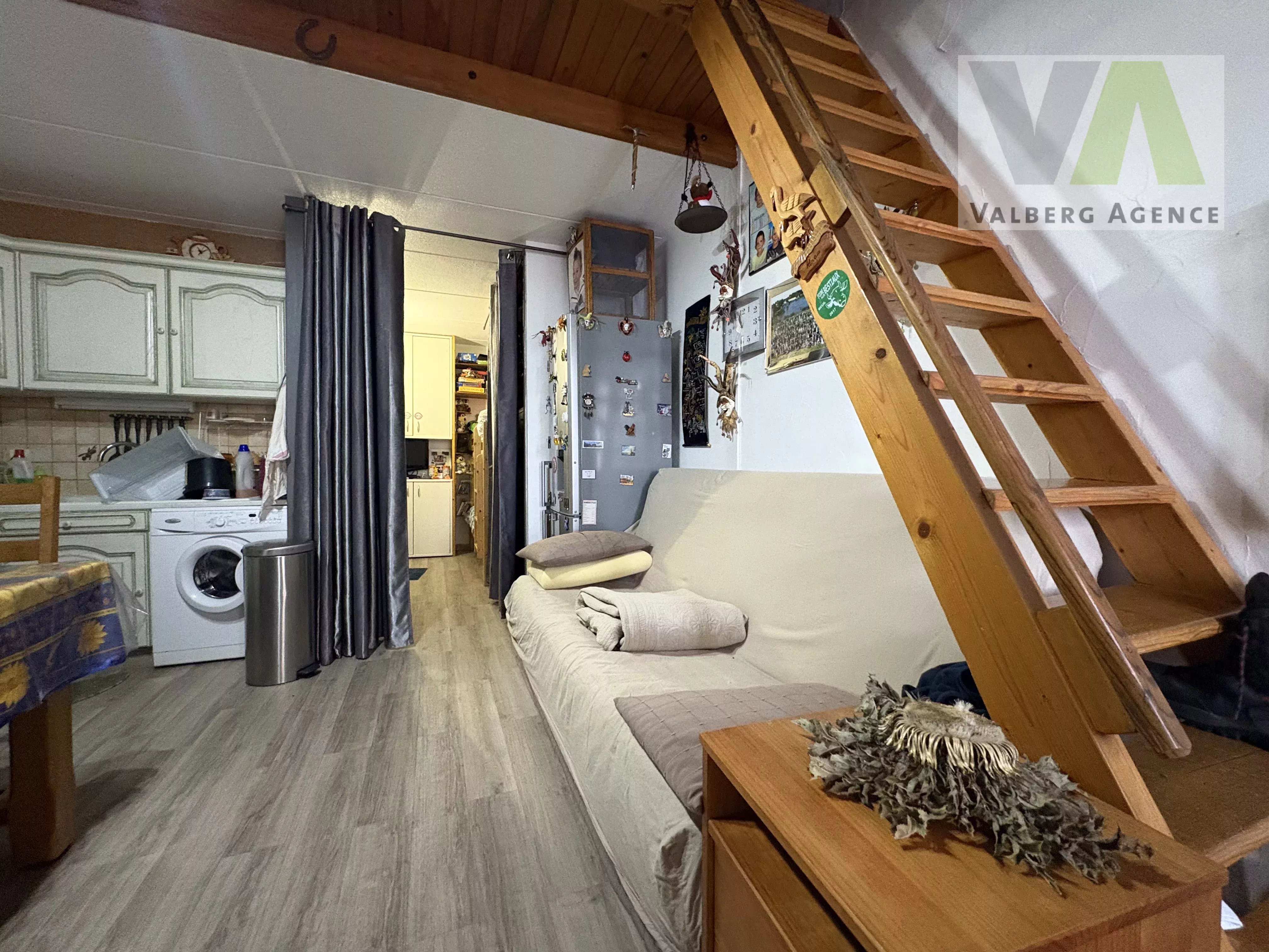 Ce studio se compose d’une salle de séjour avec une cuisine, d’un espace nuit, d’une salle de bains, d'un WC indépendant, d'une mezzanine et d'un balcon. Le bien dispose également d’un emplacement de parking et d’un casier à skis.