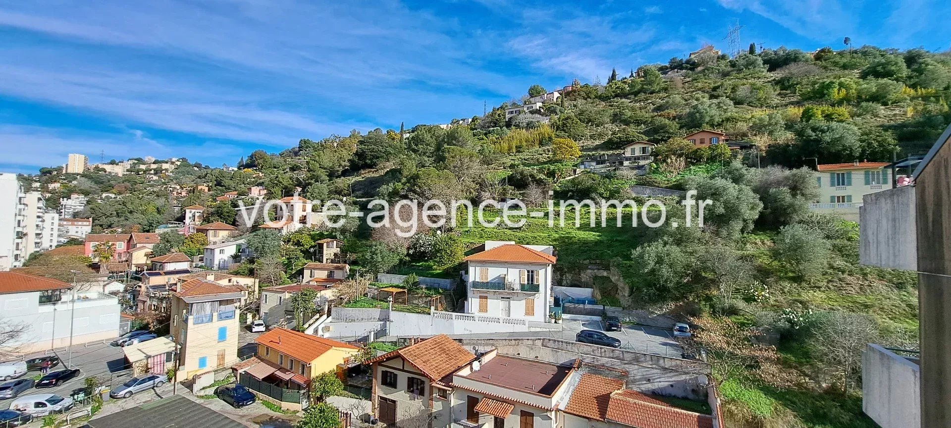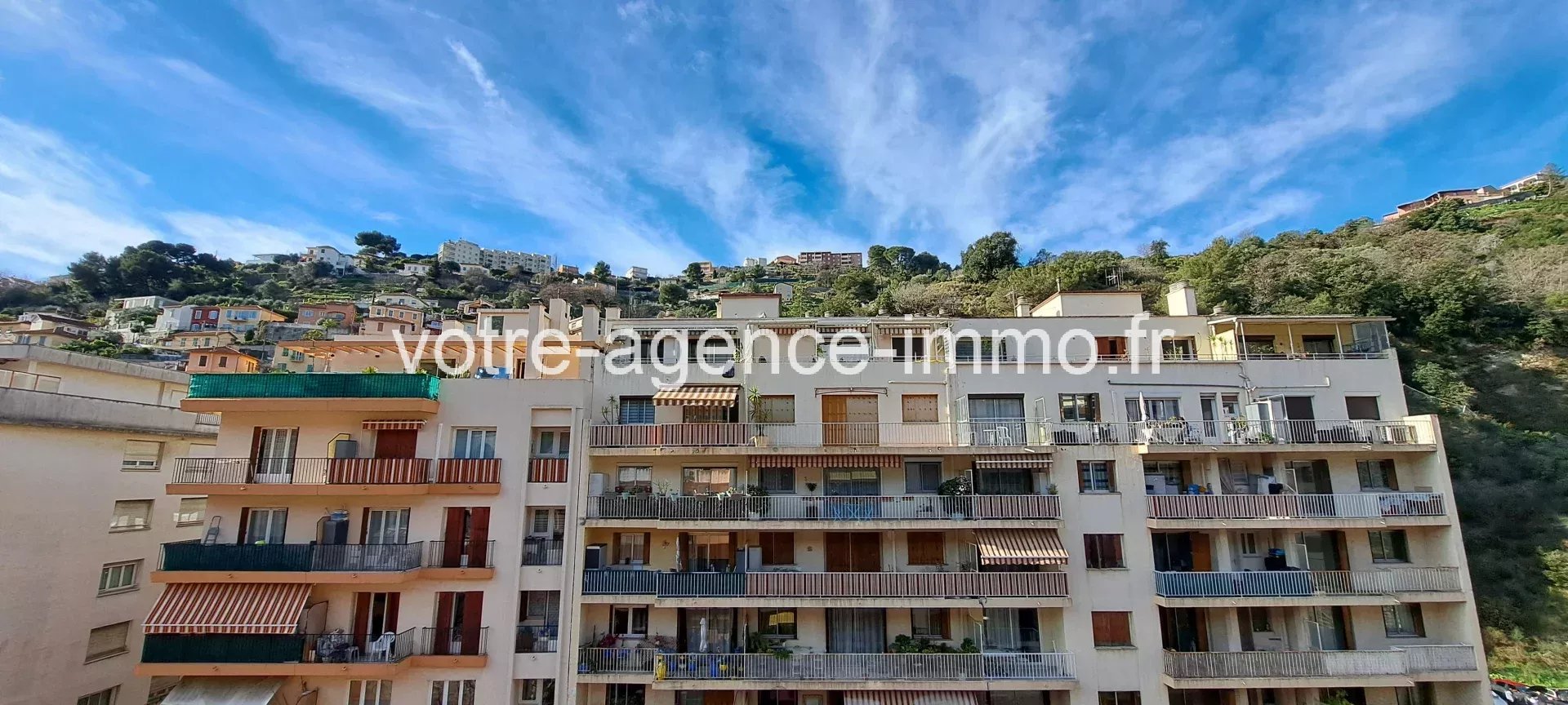 NICE la Madeleine : Exclusivité - Appartement trois pièces, en étage élevé avec ascenseur, traversant est-ouest, avec une disposition classique : entrée avec placard, séjour, cuisine indépendante, deux chambres dont une avec placard, salle de bains et WC indépendant. Terrasse et balcon (9,30m et 6,50m). Vue dégagée sur la corniche de Magnan. Grande cave en sous-sol et garage de presque 20m² de plain-pied. Charges de copropriété : 163 euros par mois Nombre de lots d'habitation : NC Visite en vidéo : https://youtu.be/PqAG2qxOOcM