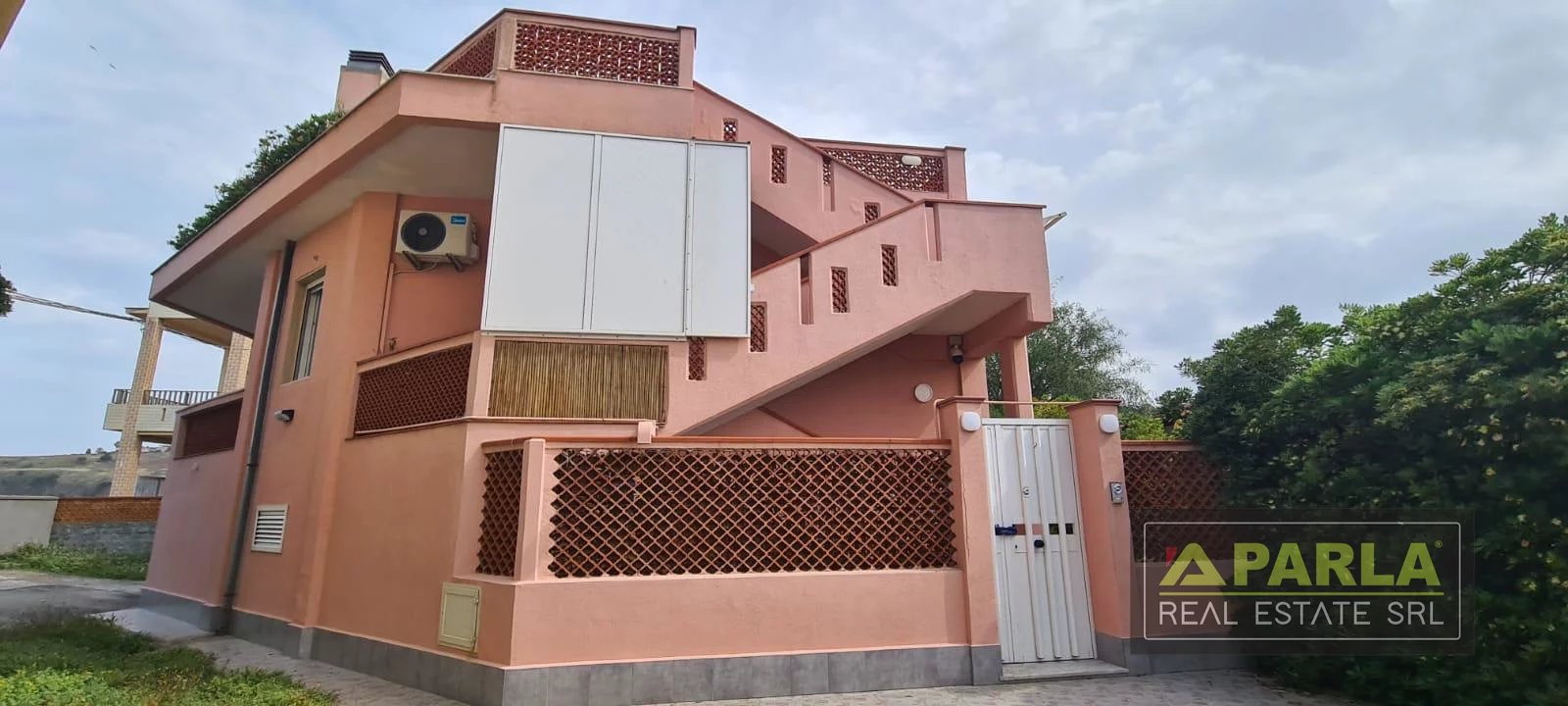 La splendida villetta si trova direttamente sul mare della costa di Agnone Bagni, una rinomata località balneare del comune di Augusta. Questa proprietà, distribuita su tre livelli, offre **comfort moderni** e **panorami mozzafiato**. Piano Terra - **Superficie**: Circa 40 mq - **Composizione**: - Camera da letto matrimoniale - Bagno - Vano con doccia esterna - Ripostiglio Il piano terra comprende anche un ampio garage di 43 mq che offre spazio sufficiente per più veicoli. Primo Piano - **Superficie**: Circa 80 mq - **Composizione**: - Zona living con camino - Cucina abitabile con accesso a un terrazzino fronte mare - Due camere da letto - Bagno La cucina abitabile e la zona living offrono uno spazio accogliente per il relax e la socializzazione, con una vista spettacolare sul mare. Secondo Piano - **Terrazza Panoramica**: Circa 75 mq - Arredata con piante - Dotata di sistema di irrigazione automatico Questa terrazza è il luogo ideale per ammirare l'intera costa catanese e il maestoso vulcano Etna. Area Esterna La proprietà dispone di un giardino ben curato con un angolo barbecue, tre posti auto e un sistema di irrigazione autonoma programmabile per le piante. Caratteristiche Tecniche - **Prospetti**: Ristrutturati con intonaco a cappotto - **Scarico dei reflui**: Fossa Ihmoff autorizzata - **Impianto elettrico e idrico**: Completamente rinnovati - Sistema di depurazione e filtraggio dell'acqua con lampada UV- Serbatoio interrato di 2000 litri - **Sicurezza e Domotica**: - Impianto di allarme e videosorveglianza - Gestione tramite app per smartphone - **Infissi esterni**: Vetro camera a taglio termico L'immobile è **pronto per essere abitato** e non necessita di ulteriori interventi. Grazie alla posizione privilegiata e alle dotazioni moderne, rappresenta un'opportunità unica per chi desidera vivere a contatto con la natura senza rinunciare ai comfort della vita moderna.