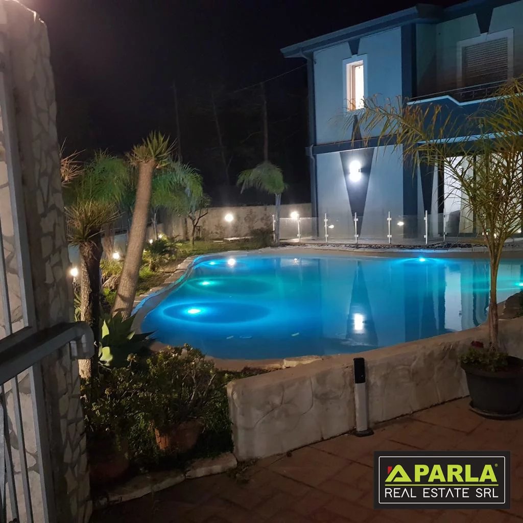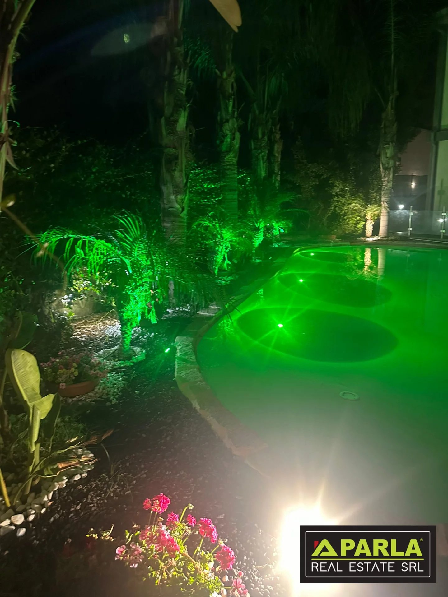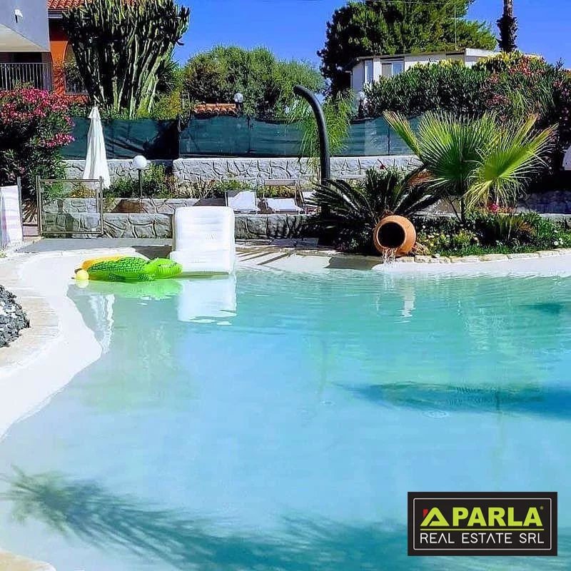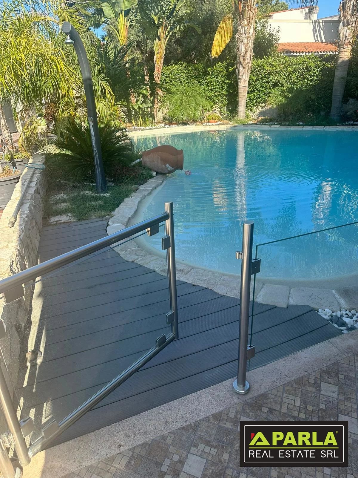 La villa rappresenta una perfetta fusione tra comfort moderno e bellezza naturale. All'interno, tre camere matrimoniali, ciascuna dotata di TV e aria condizionata per garantire un soggiorno rilassante in qualsiasi stagione. Sono inoltre presenti tre bagni completi con doccia, progettati per il massimo comfort e privacy. La villa dispone inoltre di due cucine con zona giorno, entrambe climatizzate e dotate di TV, ideali per trascorrere piacevoli momenti in compagnia. Queste aree sono perfette per cene in famiglia o con gli amici, offrendo uno spazio accogliente e funzionale. All'esterno, un ampio balcone panoramico offre una vista mozzafiato sul mare, creando l'atmosfera perfetta per momenti di relax e contemplazione. L'area esterna comprende anche un patio vetrato con divani letto matrimoniali, aria condizionata e dotato di TV, con vista sulla piscina, offrendo un rifugio tranquillo e lussuoso. La villa è circondata da un ampio giardino in stile caraibico meticolosamente curato, che, insieme al solarium, rappresenta un'oasi di pace e bellezza. L'area barbecue è perfetta per grigliate all'aperto, mentre l'ampio parcheggio interno garantisce comodità e sicurezza agli ospiti. La villa è stata recentemente ristrutturata con nuovi infissi e zanzariere, garantendo un ambiente privo di insetti e ben isolato. La facciata è stata ristrutturata con isolamento termico e dotata di pannelli solari e solare termico, consentendo una gestione efficiente dell'energia e un ridotto impatto ambientale. Con una superficie interna di 300 mq e 1.000 mq di spazio esterno, la villa offre ampi spazi sia per il relax che per l'intrattenimento. La sua posizione ideale, a soli due minuti a piedi dal mare e vicinissima a bar, ristoranti e pizzerie, permette di godere di tutti i comfort e i servizi che la zona ha da offrire. Questa villa rappresenta il perfetto connubio tra lusso, comfort e sostenibilità, ideale per chi cerca una casa vacanze di lusso o una residenza permanente in un contesto incantevole. Prezzo richiesto: € 2.300.000