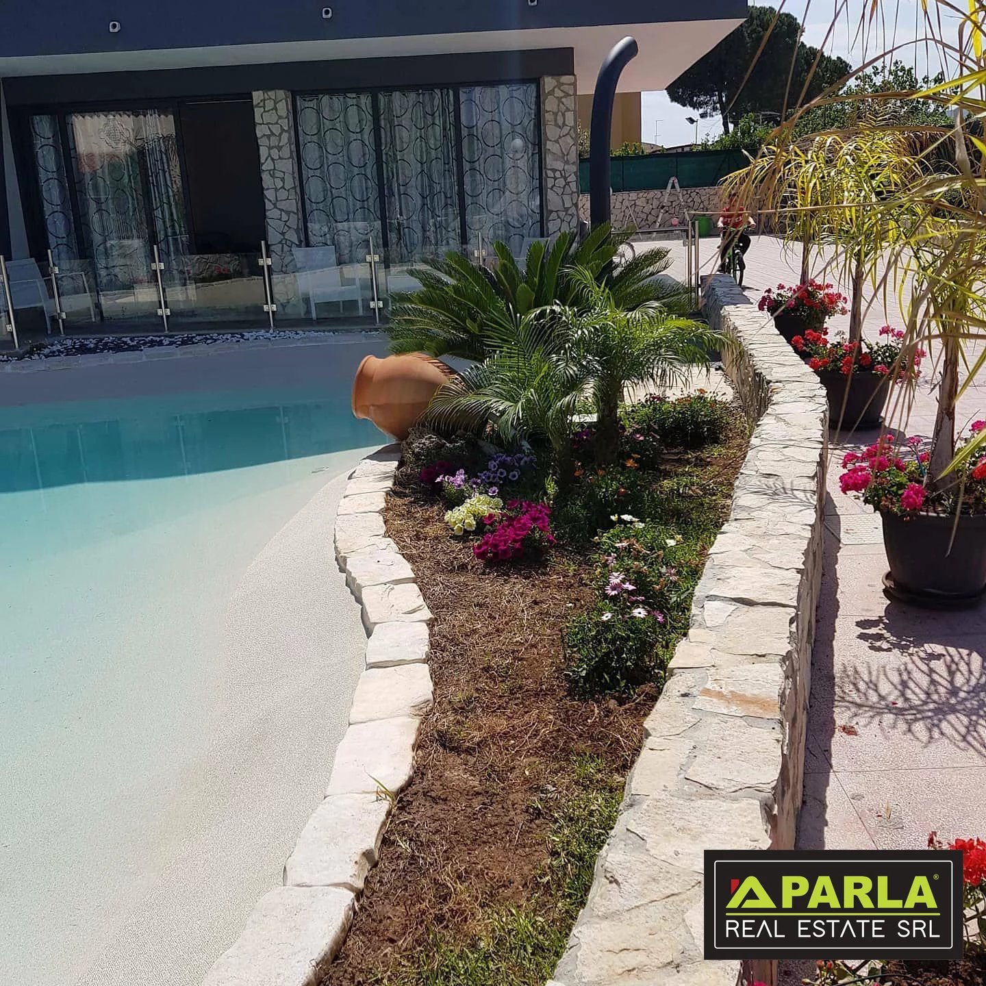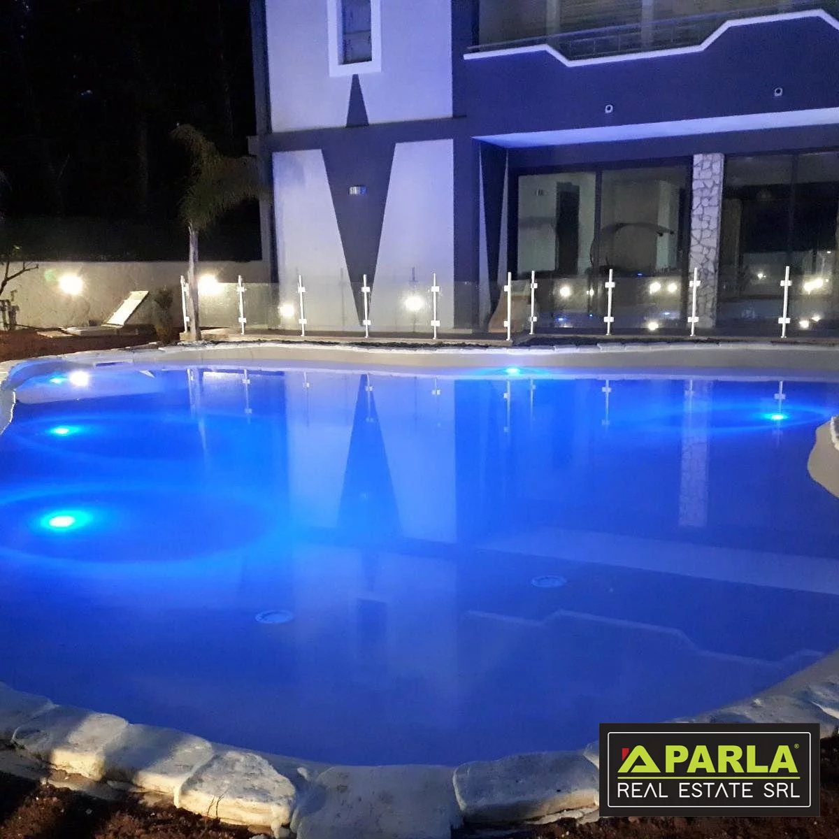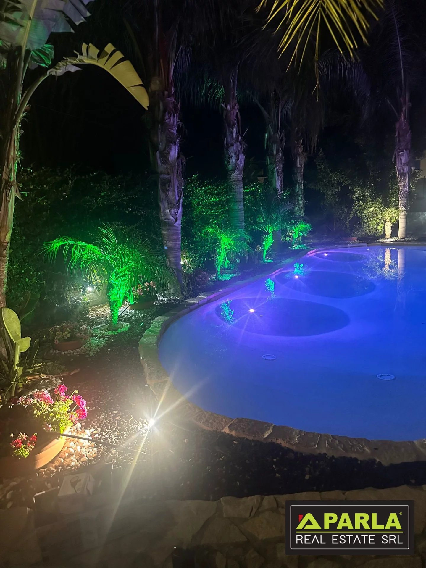 La villa rappresenta una perfetta fusione tra comfort moderno e bellezza naturale. All'interno, tre camere matrimoniali, ciascuna dotata di TV e aria condizionata per garantire un soggiorno rilassante in qualsiasi stagione. Sono inoltre presenti tre bagni completi con doccia, progettati per il massimo comfort e privacy. La villa dispone inoltre di due cucine con zona giorno, entrambe climatizzate e dotate di TV, ideali per trascorrere piacevoli momenti in compagnia. Queste aree sono perfette per cene in famiglia o con gli amici, offrendo uno spazio accogliente e funzionale. All'esterno, un ampio balcone panoramico offre una vista mozzafiato sul mare, creando l'atmosfera perfetta per momenti di relax e contemplazione. L'area esterna comprende anche un patio vetrato con divani letto matrimoniali, aria condizionata e dotato di TV, con vista sulla piscina, offrendo un rifugio tranquillo e lussuoso. La villa è circondata da un ampio giardino in stile caraibico meticolosamente curato, che, insieme al solarium, rappresenta un'oasi di pace e bellezza. L'area barbecue è perfetta per grigliate all'aperto, mentre l'ampio parcheggio interno garantisce comodità e sicurezza agli ospiti. La villa è stata recentemente ristrutturata con nuovi infissi e zanzariere, garantendo un ambiente privo di insetti e ben isolato. La facciata è stata ristrutturata con isolamento termico e dotata di pannelli solari e solare termico, consentendo una gestione efficiente dell'energia e un ridotto impatto ambientale. Con una superficie interna di 300 mq e 1.000 mq di spazio esterno, la villa offre ampi spazi sia per il relax che per l'intrattenimento. La sua posizione ideale, a soli due minuti a piedi dal mare e vicinissima a bar, ristoranti e pizzerie, permette di godere di tutti i comfort e i servizi che la zona ha da offrire. Questa villa rappresenta il perfetto connubio tra lusso, comfort e sostenibilità, ideale per chi cerca una casa vacanze di lusso o una residenza permanente in un contesto incantevole. Prezzo richiesto: € 2.300.000