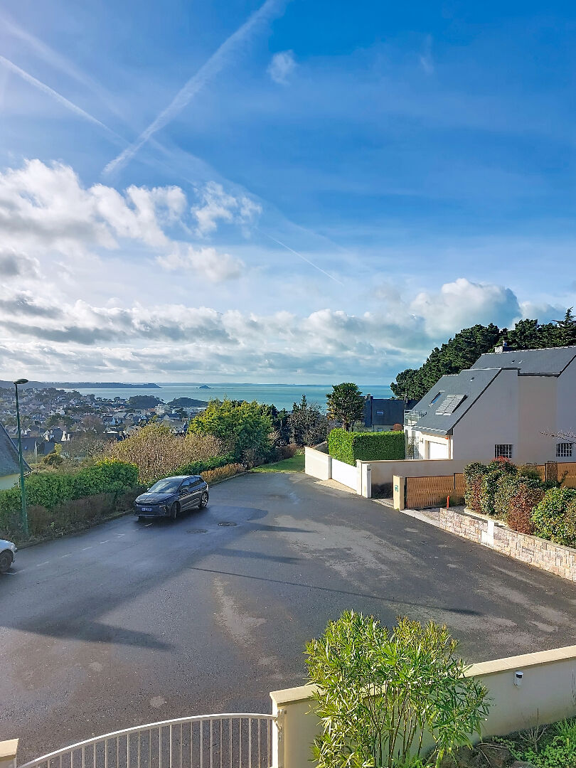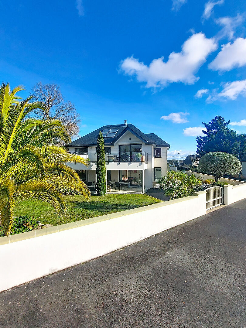 Située au calme d'une impasse, offrant une vue sur l'Îlot du Verdelet et à la baie de Saint-Brieuc, cette magnifique maison d'architecte contemporaine offre un cadre de vie rare et privilégié. Baignée de lumière grâce à sa double exposition et bénéficiant d'une orientation premium sud-ouest, elle vous promet chaque soir de somptueux couchers de soleil sur la mer. Édifiée au coeur d'un terrain arboré aux essences méditerranéennes, cette propriété séduit par ses volumes, sa modularité et son confort haut de gamme, idéale aussi bien en résidence principale qu'en maison de villégiature ou projet locatif d'exception. En rez-de-jardin, une entrée privative dessert un appartement indépendant parfaitement aménagé comprenant une belle pièce de vie avec salon, deux chambres avec placards, une salle d'eau, WC, une cuisine aménagée et équipée, ainsi qu'une terrasse intime, idéale pour recevoir ou développer une activité locative. En demi-palier, l'entrée principale avec placard ouvre sur des espaces élégants et lumineux. Au premier niveau, les volumes s'expriment sous de superbes plafonds cathédraux : Côté Est, une grande pièce à vivre pouvant être aménagée en studio indépendant, avec lavabo, WC et balcon. Côté Ouest, une vaste pièce de vie réunissant salle à manger et salon, ouverte sur une cuisine aménagée et équipée, prolongée par une terrasse offrant une vue panoramique sur la mer. Une arrière-cuisine complète cet espace. Ce niveau accueille également une chambre avec accès privative à la terrasse, un dressing, un WC indépendant et une salle de bains avec douche à l'italienne. Au second étage, vous découvrirez : Un bureau idéal pour le télétravail ou un espace lecture. Un grand espace sous rampant, modulable à souhait, pouvant être utilisé comme dortoir, salle de jeux ou espace détente. En rez-de-jardin, la maison dispose d'un garage aisé, d'une cave, ainsi que d'un espace bien-être avec sauna, parfait pour des moments de relaxation après une journée en bord de mer. Une propriété rare à Erquy, alliant calme, lumière, vue mer et prestations de qualité, dans un environnement privilégié et sécurisé. Les prestations techniques sont à la hauteur du standing, avec un DPE classé A, garantissant une excellente performance énergétique et un confort optimal en toute saison. Cette maison d'architecte contemporaine avec vue mer à Erquy s'adresse à une clientèle en quête d'un bien rare, lumineux, modulable et résolument tourné vers la mer, dans l'un des secteurs les plus prisés de la côte. N'hésitez -pas a effectuer la visite virtuelle pour prolonger le plaisir ! Pour plus de renseignements ou pour organiser une visite, contactez-nous ! Prix FAI : 945 000 euros dont 5.00 % honoraires TTC à la charge de l'acquéreur.
