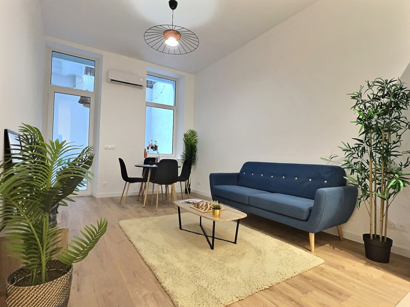 Era Immobilier Marseille Centre vous propose en exclusivité d'acheter un appartement de type 3 dans un immeuble ancien très bien entretenu du secteur Thiers / Réformés, Marseille 1er arrondissement. Il se compose d'une entrée, d'un séjour donnant sur une terrasse d'environ 15m2, d'une cuisine ouverte, de deux chambres, d'une salle d'eau, d'un wc indépendant et d'une cave en sous sol. Traversant, entièrement rénové et équipé de la climatisation dans chaque pièce, ce bien est situé à proximité immédiate des transports en communs, des commerces et de l'Église des réformés. Copropriété de 10 lots - dont 5 lots habitation. Charges annuelles : 1264 euros.