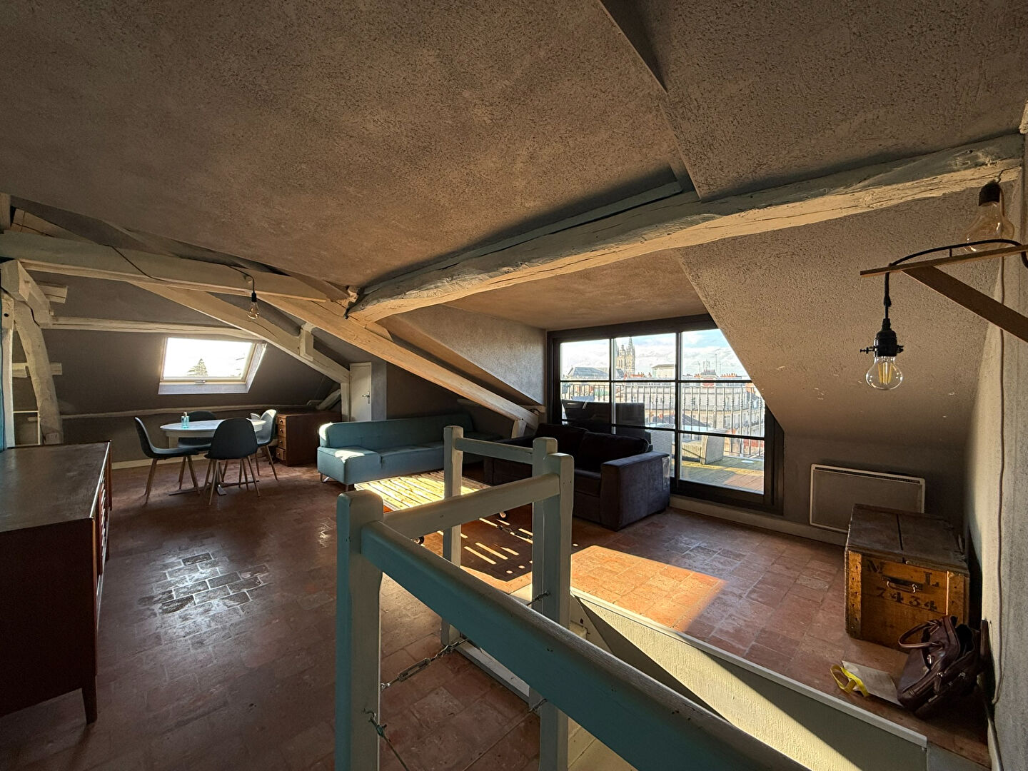 ANGERS HYPER-CENTRE ? DUPLEX D'EXCEPTION AVEC TERRASSE ET VUE PANORAMIQUE Situé au dernier étage avec ascenseur d'un très bel immeuble haussmannien, en plein coeur d'Angers, ce duplex de charme est un véritable coup de coeur. Une belle pièce de vie lumineuse, aux volumes agréables, comprenant une cuisine ouverte parfaitement intégrée, idéale pour les moments de convivialité, donne sur la terrasse. Atout rare et précieux : lamagnifique terrasse, surplombant les hauteurs d'Angers, offrant une vue exceptionnelle sur la ville. Un véritable havre de paix en plein hyper-centre. L'appartement propose deux chambres, dont une avec douche privative, offrant confort et fonctionnalité. Un bien unique, alliant cachet de l'ancien, dernier étage et extérieur avec vue, idéal pour les amateurs de lieux de caractère. (5.53 % honoraires TTC à la charge de l'acquéreur.) Copropriété de 15 lots - dont 9 lots habitation. Charges annuelles : 1719 euros.