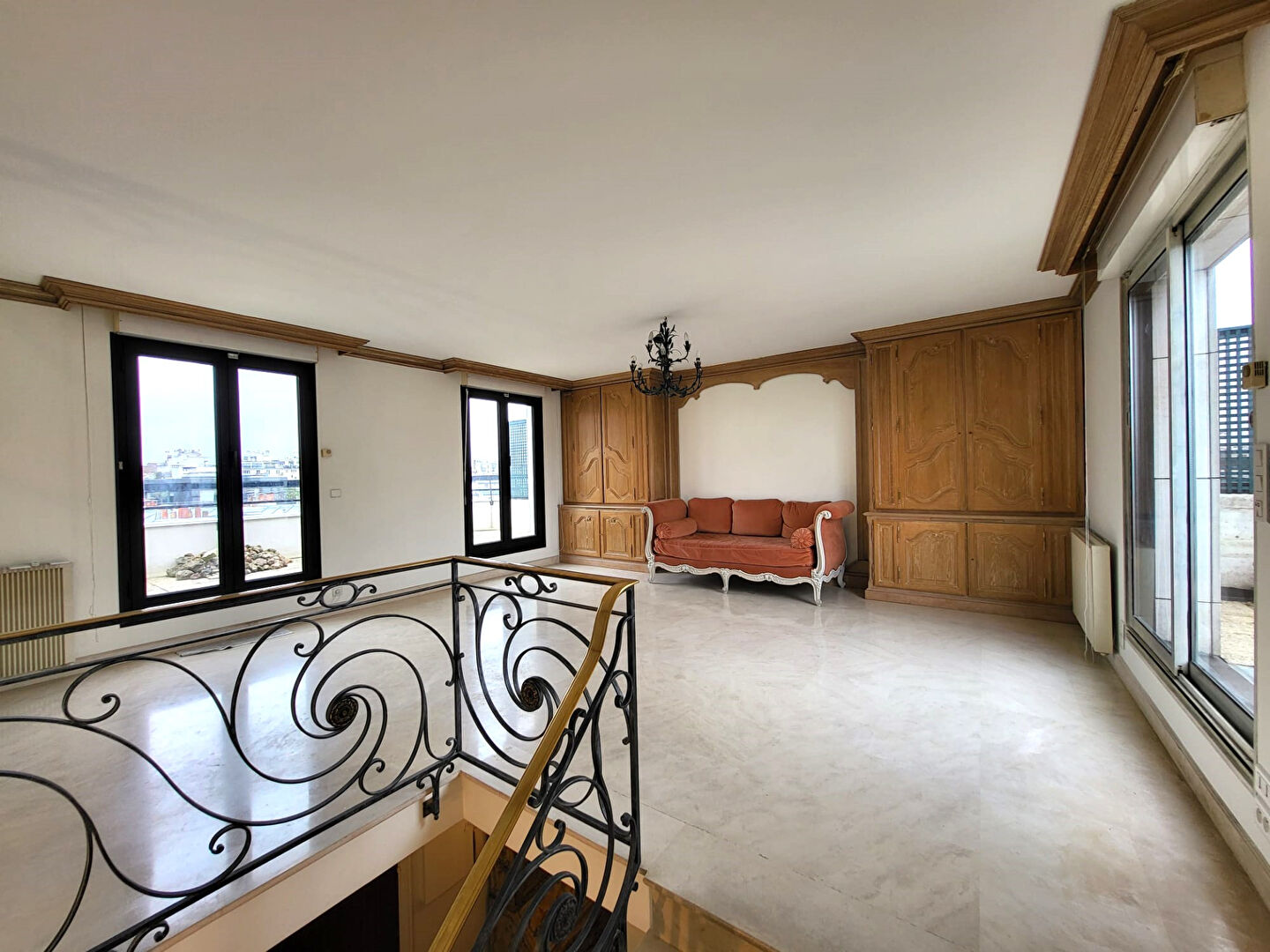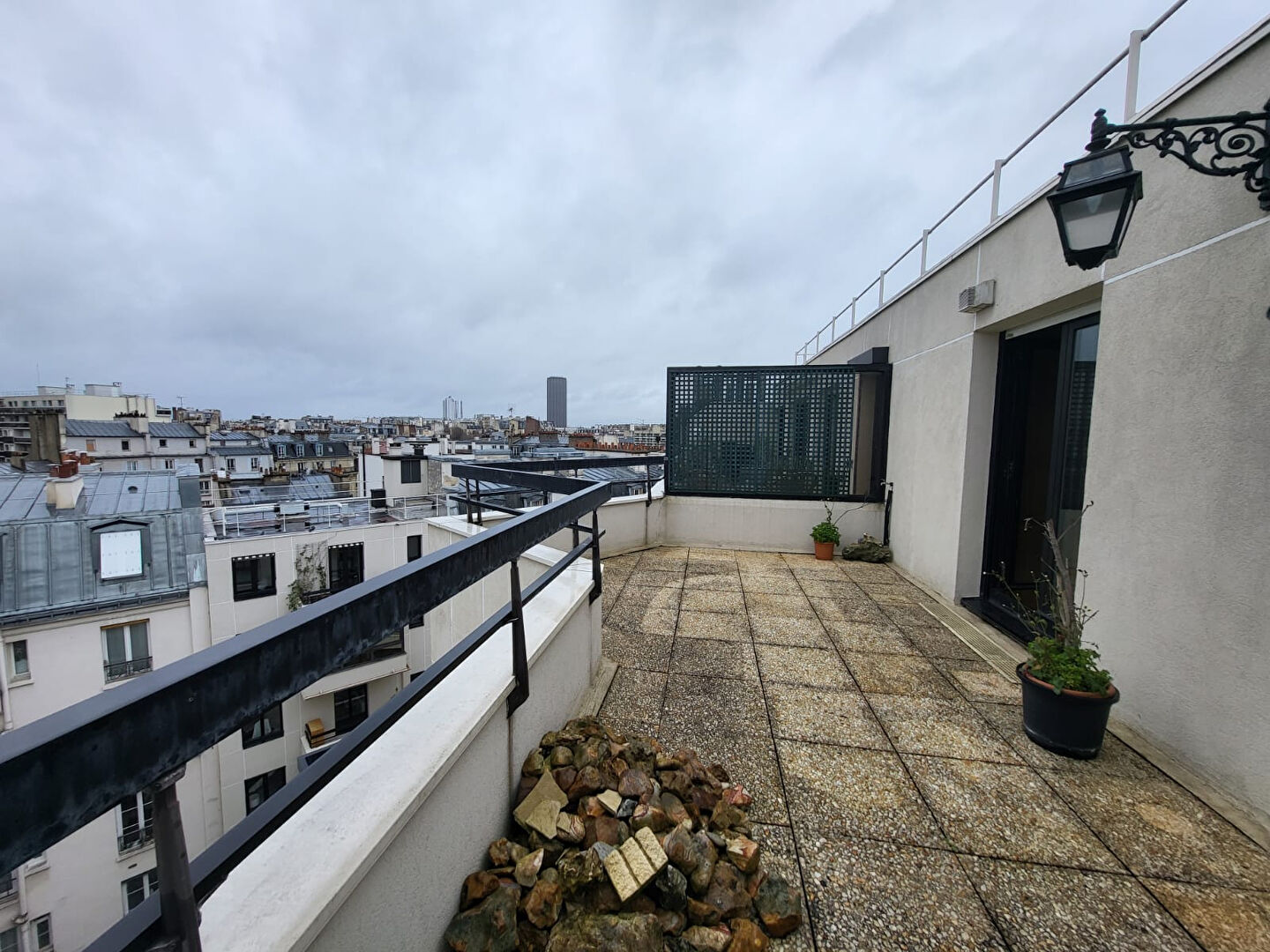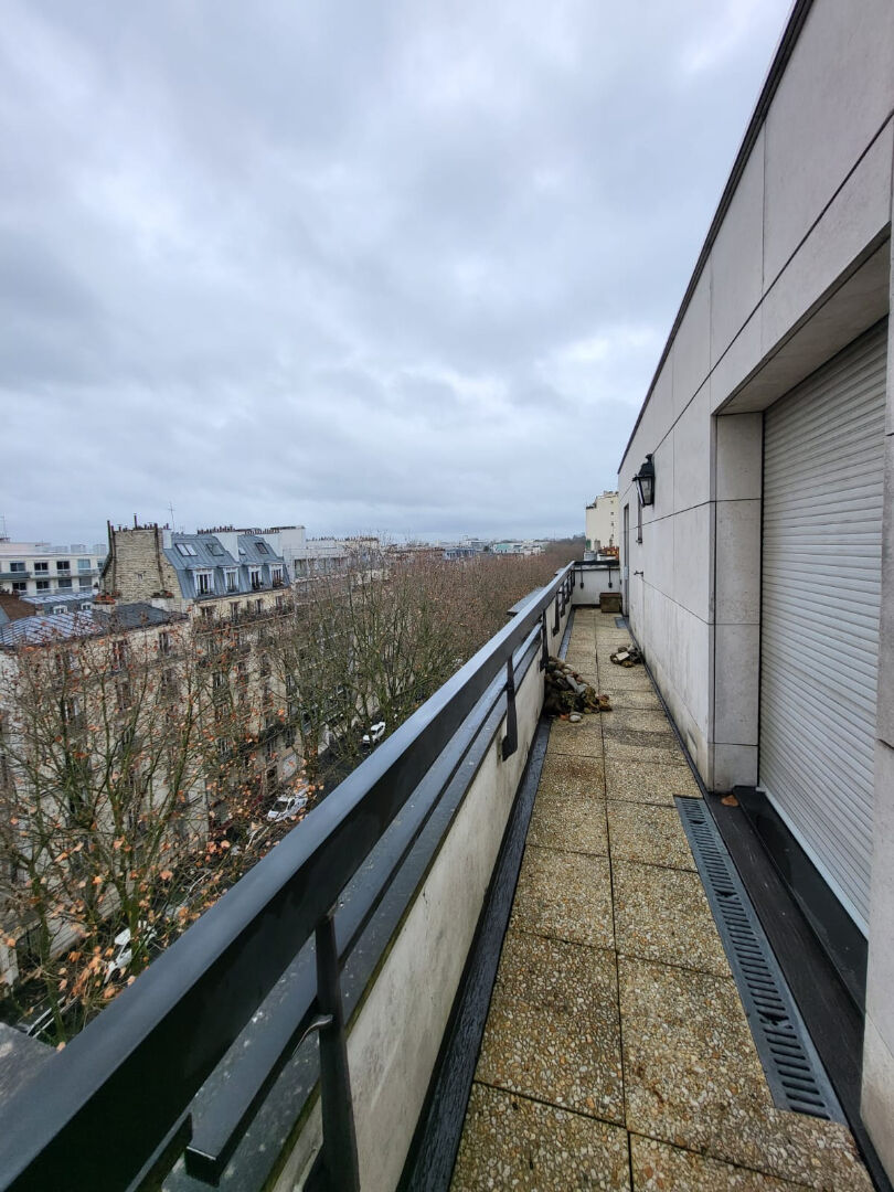 Métro Denfert Rochereau, dans un immeuble des années 1990, un appartement type duplex au 6eme -7ème et dernier étage avec ascenseur, composé au 6eme étage une entrée, 2 chambres, une salle de bain, un WC et de nombreux rangements, au 7eme étage un séjour donnant sur la terrasse et un balcon filant, une chambre, une salle d'eau douche, un WC, une véranda. Une cave complète ce bien. Possibilité de parking en sous-sol en sus. A SAISIR! Copropriété de 150 lots - dont 150 lots habitation. (Pas de procédure en cours). Charges annuelles : 2547 euros.