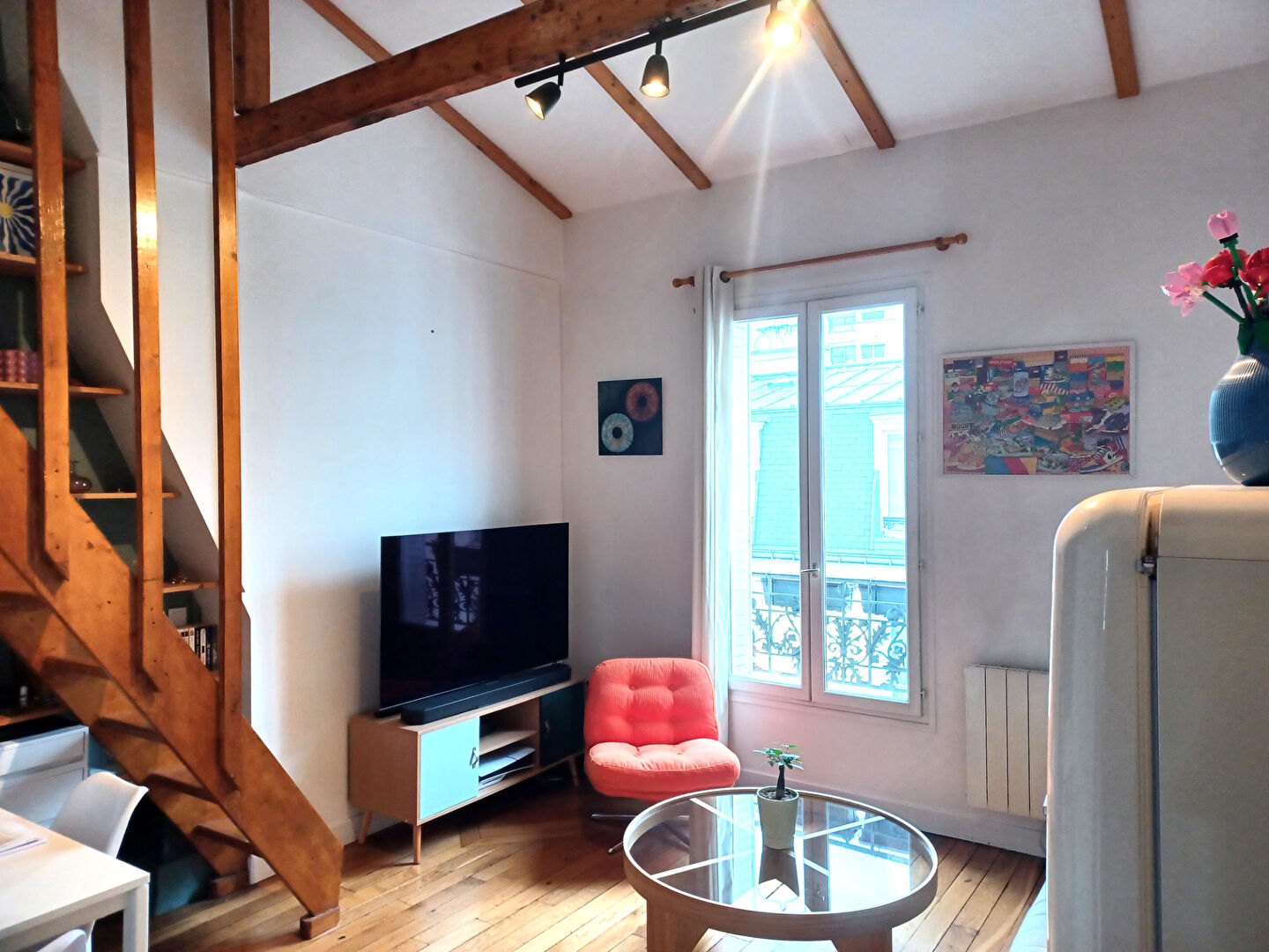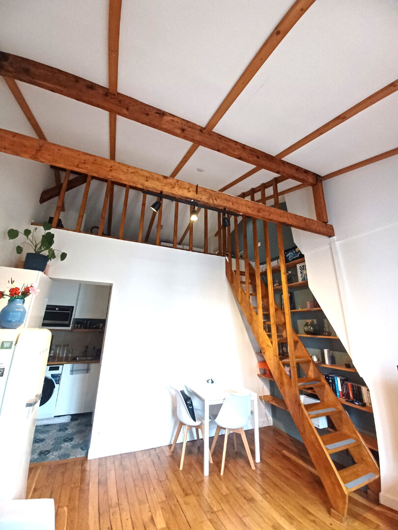 PARIS XIVème arrondissement, à 2 minutes du métro Mouton Duvernet (L/4) et 8 minutes de la Place Denfert-Rochereau, rue Rémy Dumoncel, au 5ème et dernier étage sans ascenseur d'une petite copropriété datant de 1900, ce très beau 2 Pièces atypique avec combles aménagés en mezzanine, d'une surface utile de 30m² , 35m² au sol (27,10met loi carrez), traversant et lumineux rénové par architecte. Il se compose d'une entrée cuisine aménagée et équipée, un beau séjour cathédrale avec 4,10m de hauteur sous plafond , baigné de lumière grâce à son exposition plein Sud et vue ciel, une belle chambre avec placard intégré au calme sur cour, une salle d'eau contemporaine avec fenêtre double vitrage, des combles aménagés et isolés en mezzanine pouvant être un couchage d'appoint ou espace détente directement accessible du séjour par une escalier intérieur. Une cave complète ce magnifique bien, ou le moindre m² a été exploité. Vous serez séduit pas son parquet chêne, ses poutres apparentes et sa hauteur sous plafond. Coup de coeur assuré (3.87 % honoraires TTC à la charge de l'acquéreur.) Copropriété de 25 lots (Pas de procédure en cours). Charges annuelles : 1560 euros.