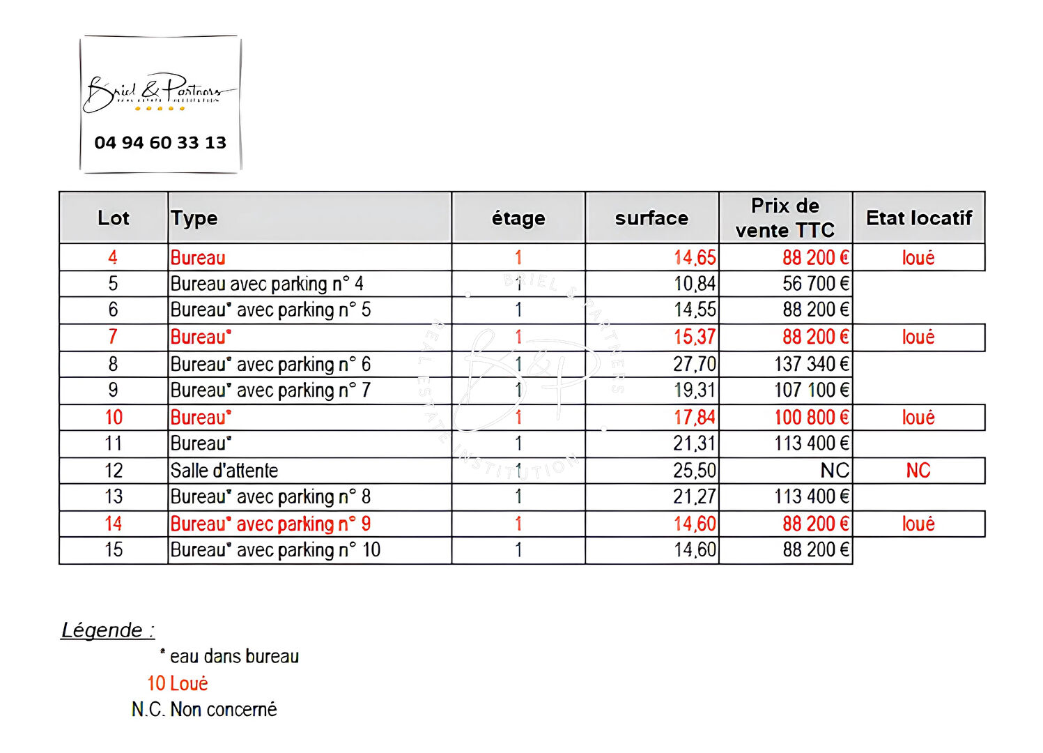Au coeur du pôle pluridisciplinaire Soléia Soins et Santé des locaux de 10m² à 27m² neufs disponibles à partir de 56.700 euros jusqu'à 137.340 euros (voir grille de prix en images). Bénéficiez d'un cadre verdoyant à deux minutes du centre d'un environnement lumineux et dynamique. Conforme ERP et PMR, ces locaux disposent d'une place privative en sous-sol ainsi qu'un grand parking gratuit pour la clientèle. C'est l'idéal pour exercer une activité de bien-être, soins esthétiques, espace santé, ou bureau de téléconsultation. Les charges comprennent : L'eau, l'internet, l'entretien des parties communes, la minuterie, l'ascenseur, la salle d'attente, le chauffage par climatisation réversible. Les informations sur les risques auxquels ce bien est exposé sont disponibles sur le site Géorisques : www.georisques.gouv.fr