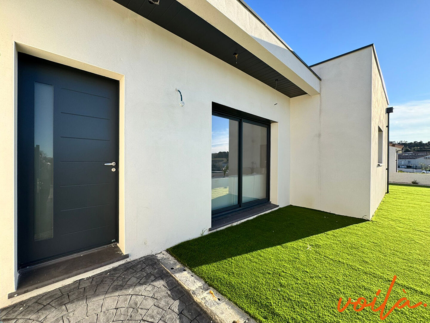 REF : COLLECTOR - 5 MN CARCASSONNE - Maison plain pied de 102 m2 hab. neuve, comprenant 3 chambres dont une suite parentale, SDB indépendante, WC, séjour / cuisine équipée et garage. Le tout sur une parcelle de 400 m2 entièrement fermée et paysagée. Piscine en cours de finition. Les plus : RT 2020, garanties décennales, double vitrage, volets roulants électriques, proche de toutes les commodités ! Produit neuf !